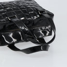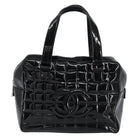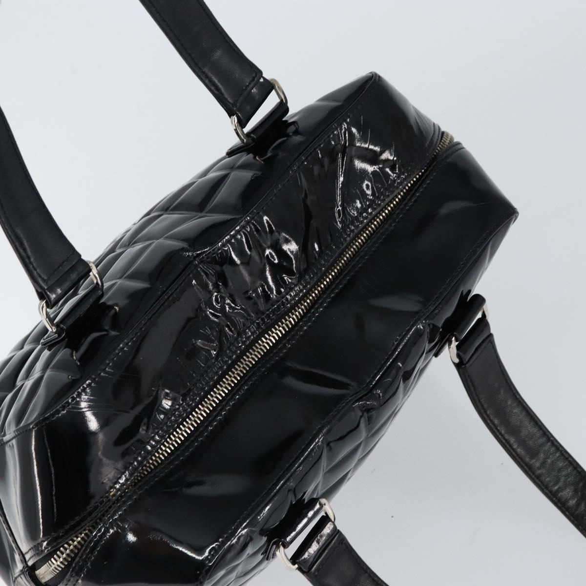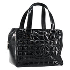 CHANEL Choco Bar Hand Bag Enamel Black Silver CC Auth BA7748