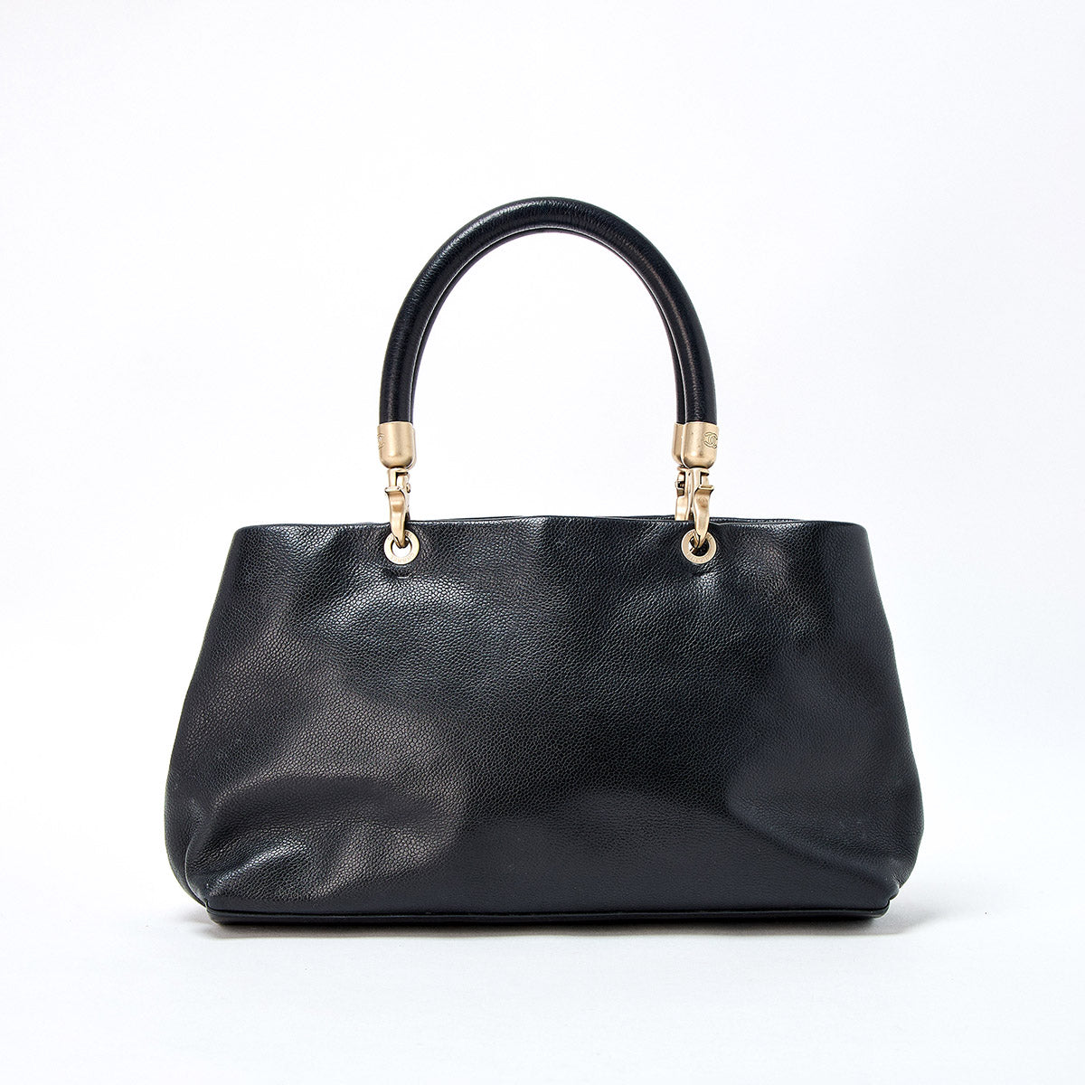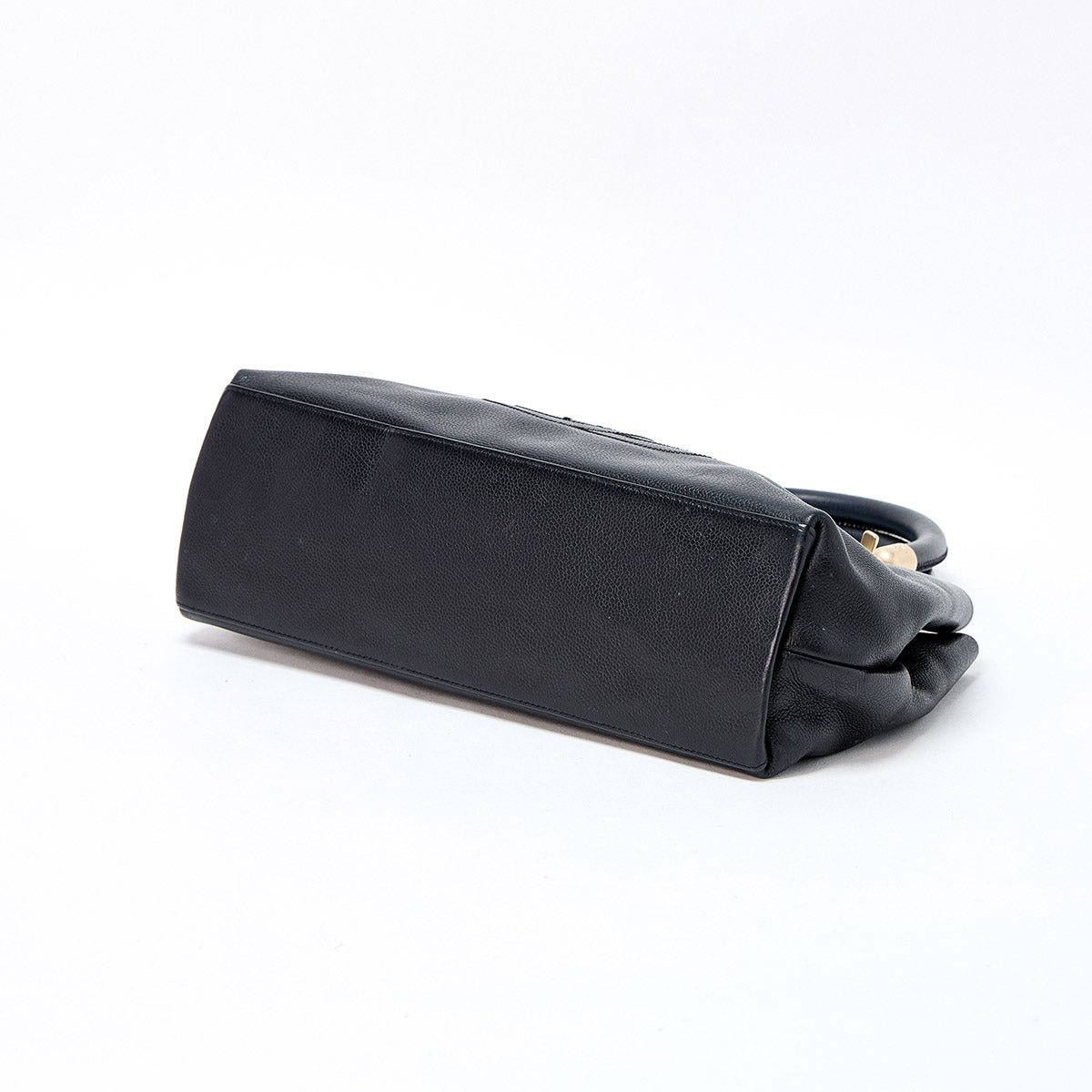 CHANEL COCO Mark Hand Bag Black Matte Gold Caviar Skin Auth