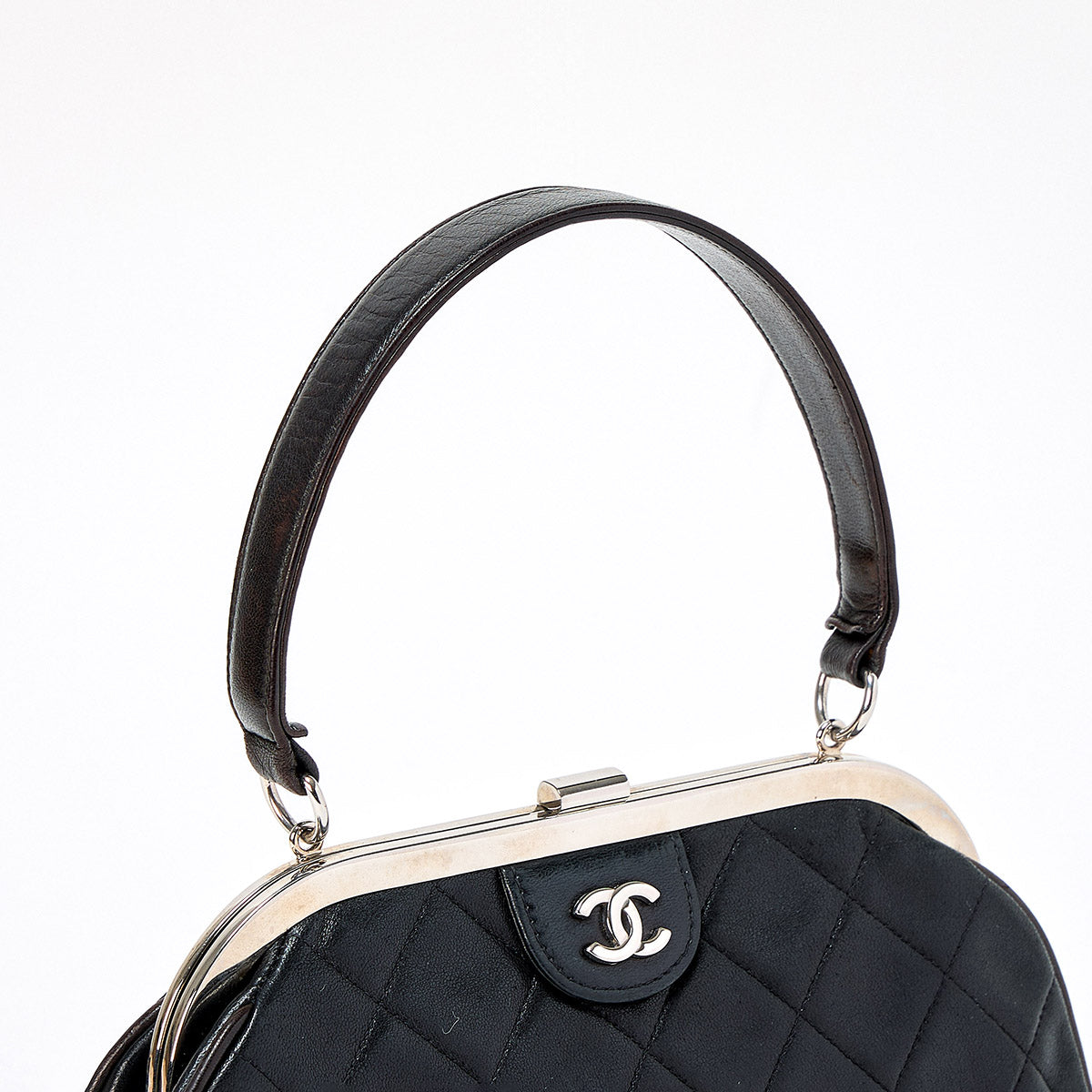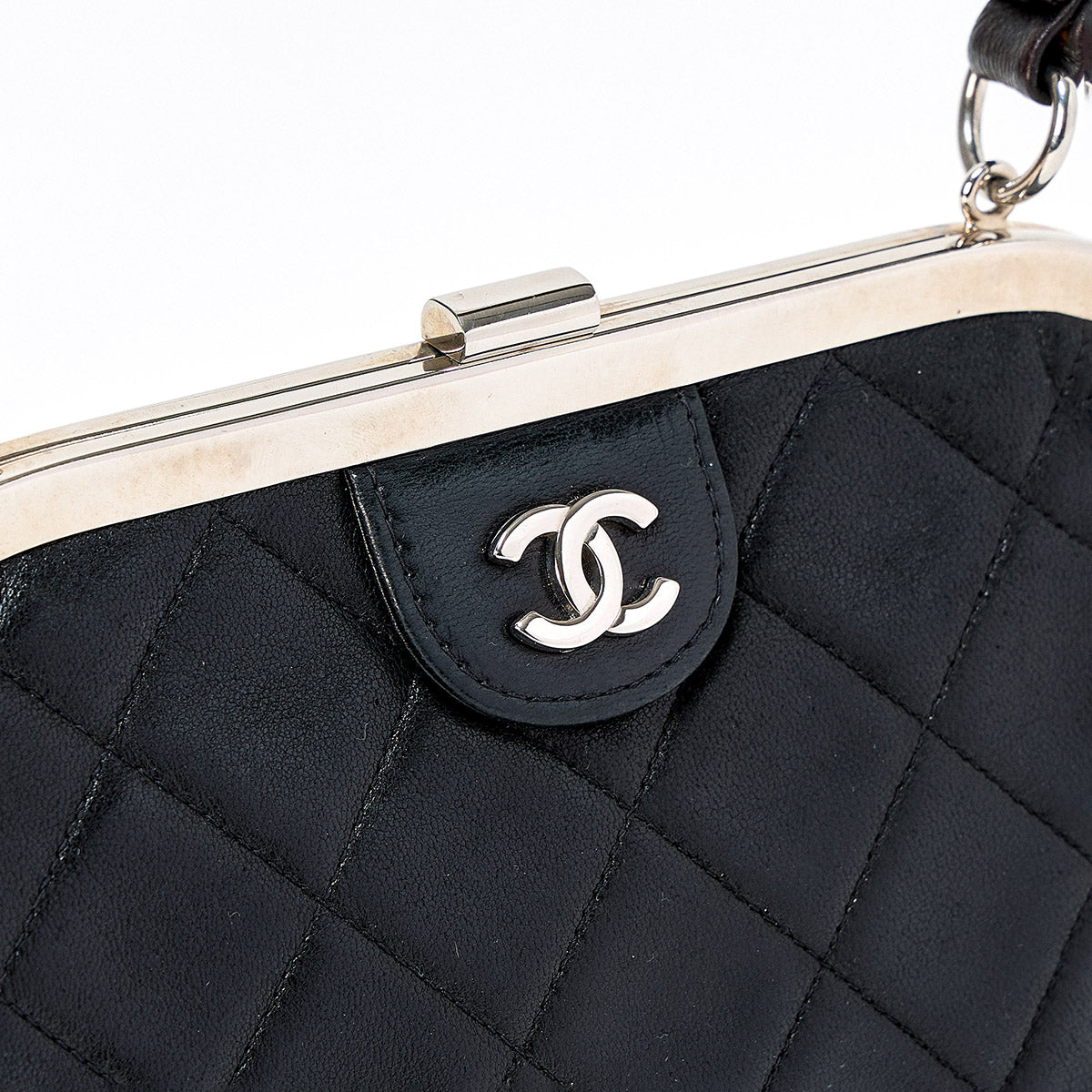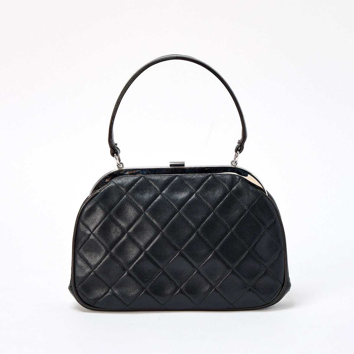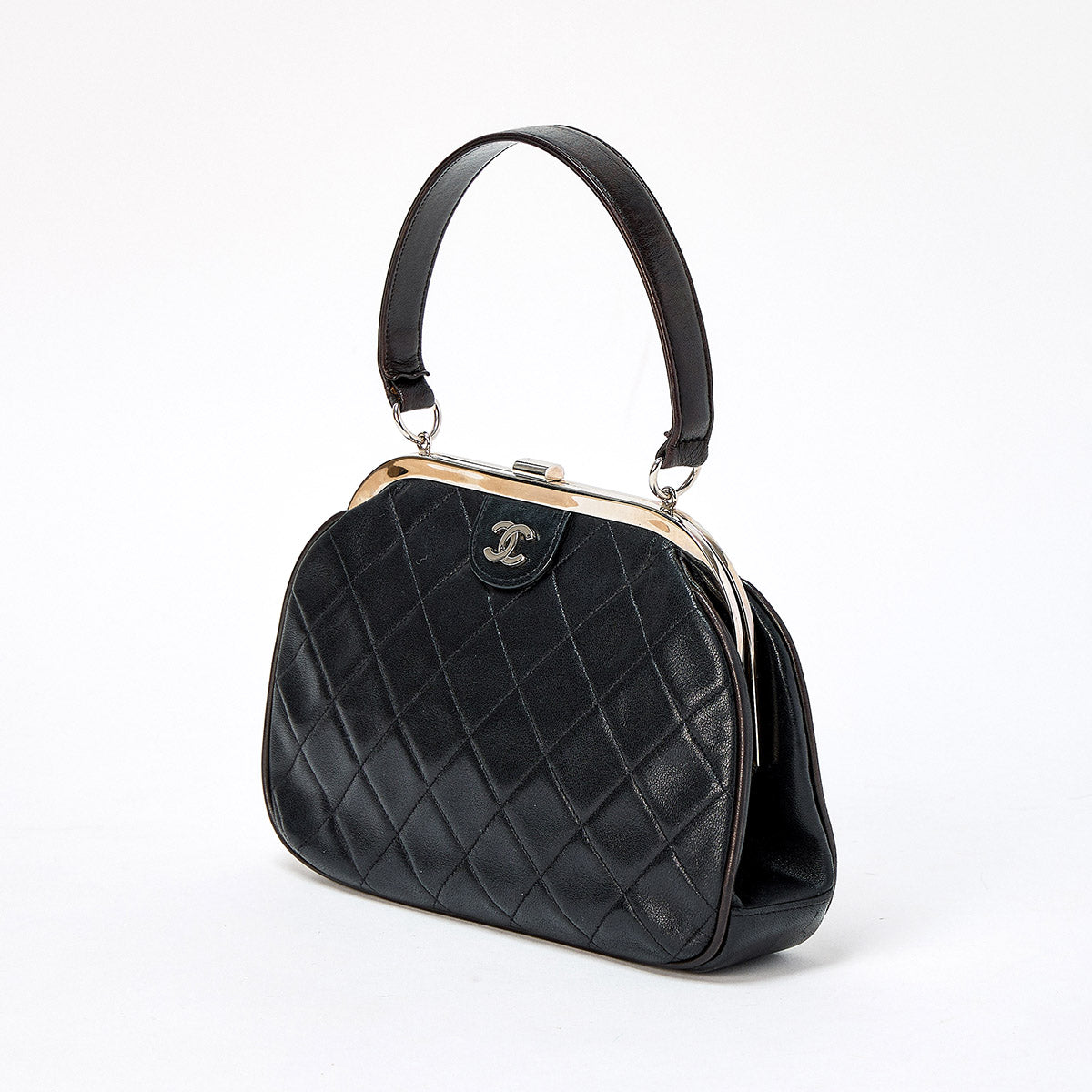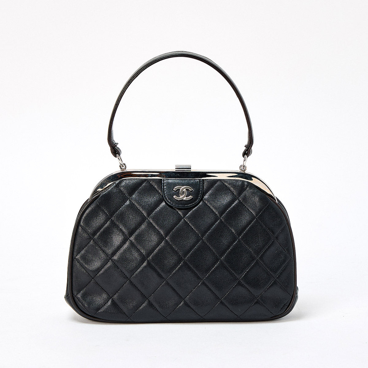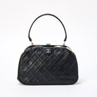 CHANEL Matelasse COCO Mark 1997 Hand Bag Black Silver Lamb Skin Auth