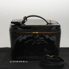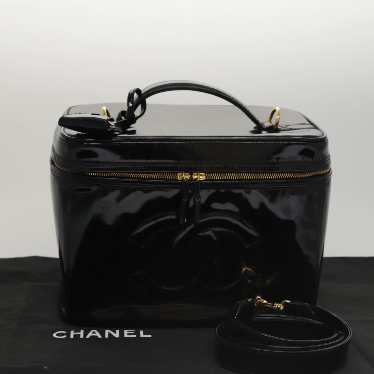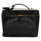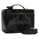 CHANEL Vanity Hand Bag Patent leather 2way Black Gold CC Auth bs21681V