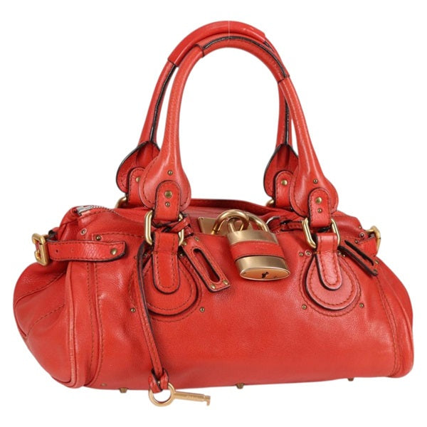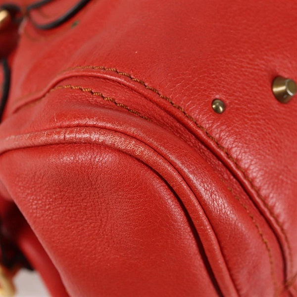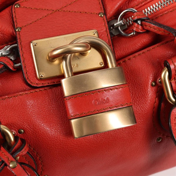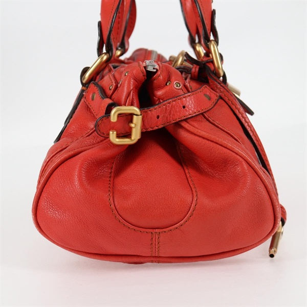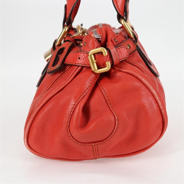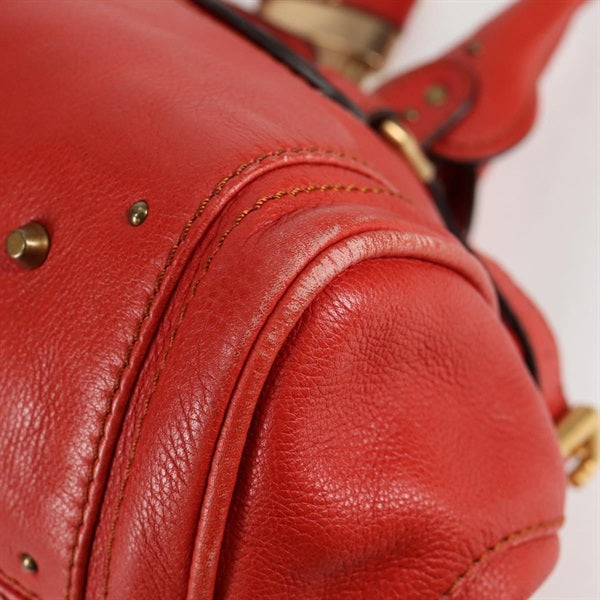 Chloe Paddington Hand Bag Red Gold Leather Auth