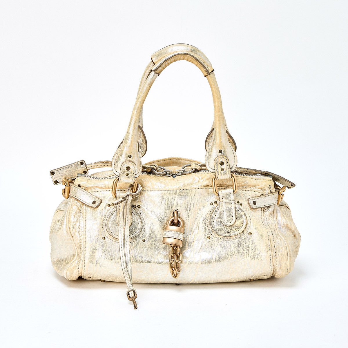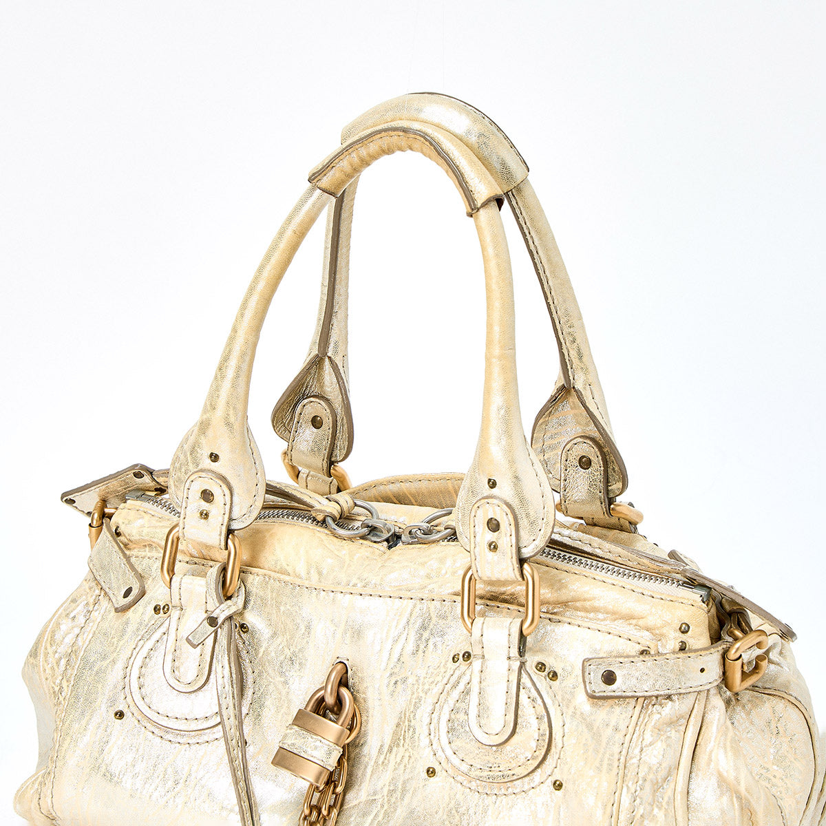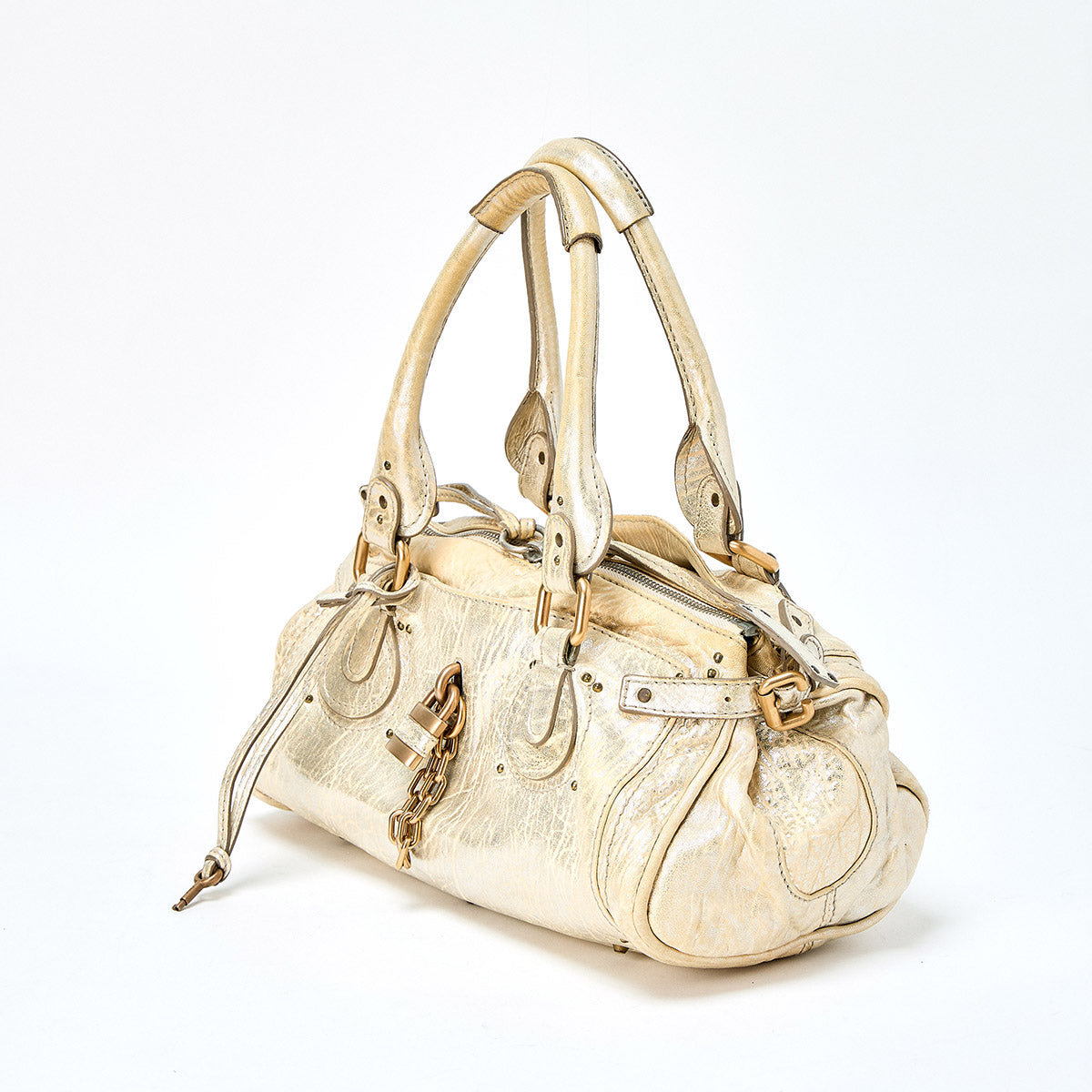 Chloe Paddington Medium Handbag Gold Gold Leather Auth