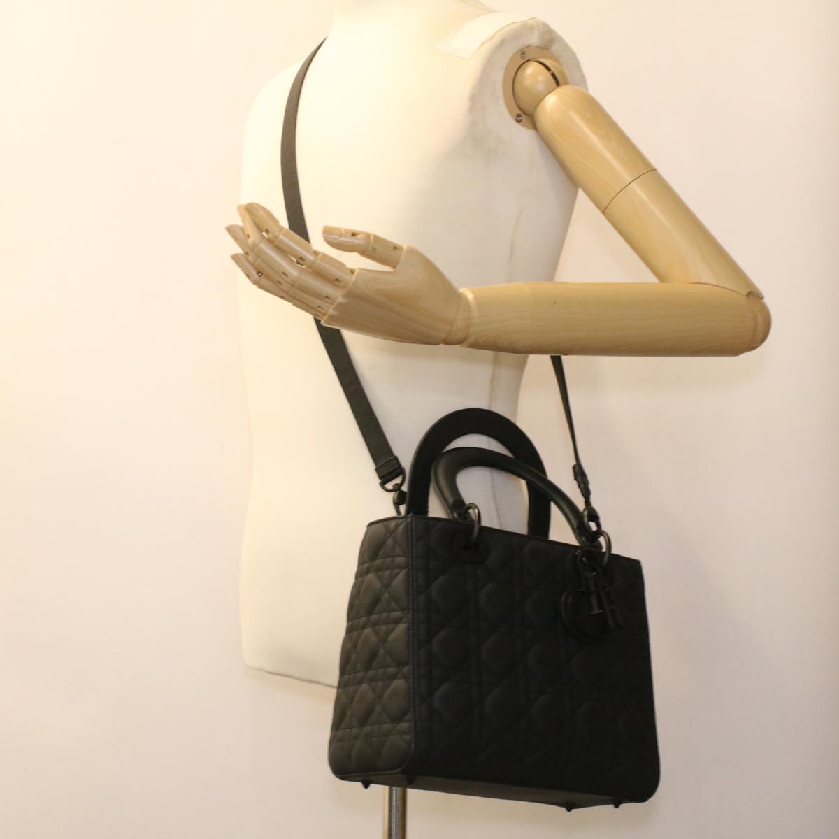 Christian Dior Canage Lady Dior Hand Bag Calfskin Black M0566SLOI Auth 36776SM