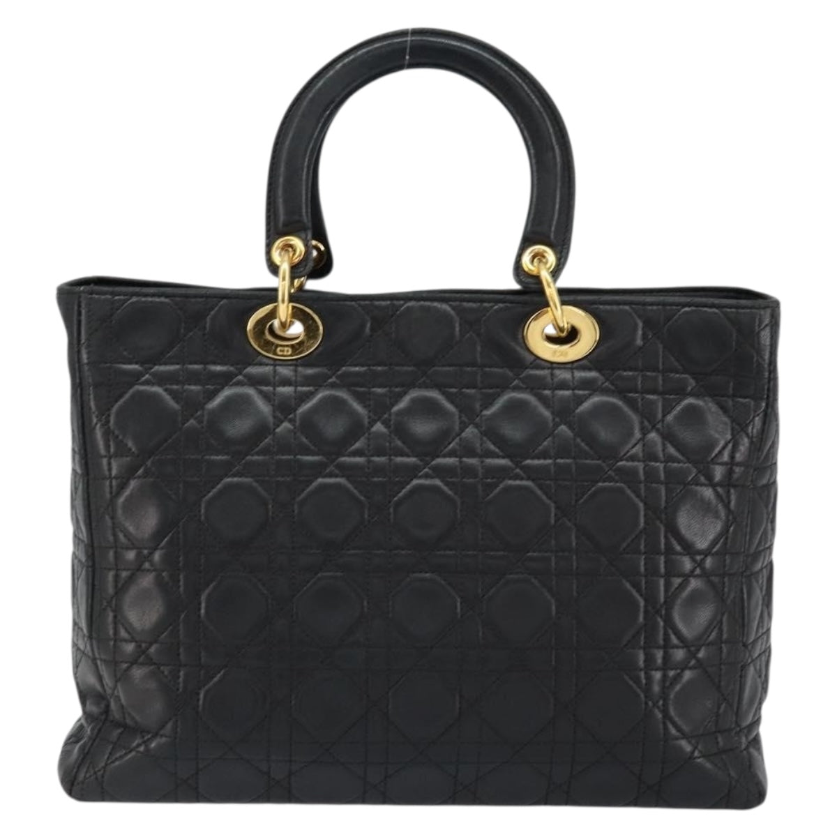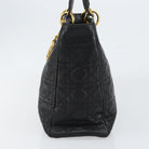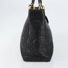 Christian Dior Canage Lady Dior Hand Bag Lamb Skin Black Gold Auth yk19533