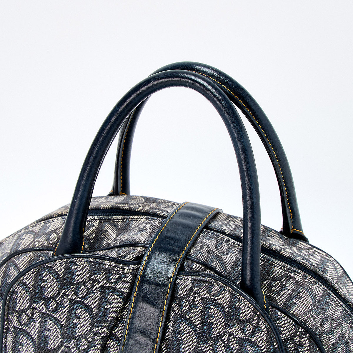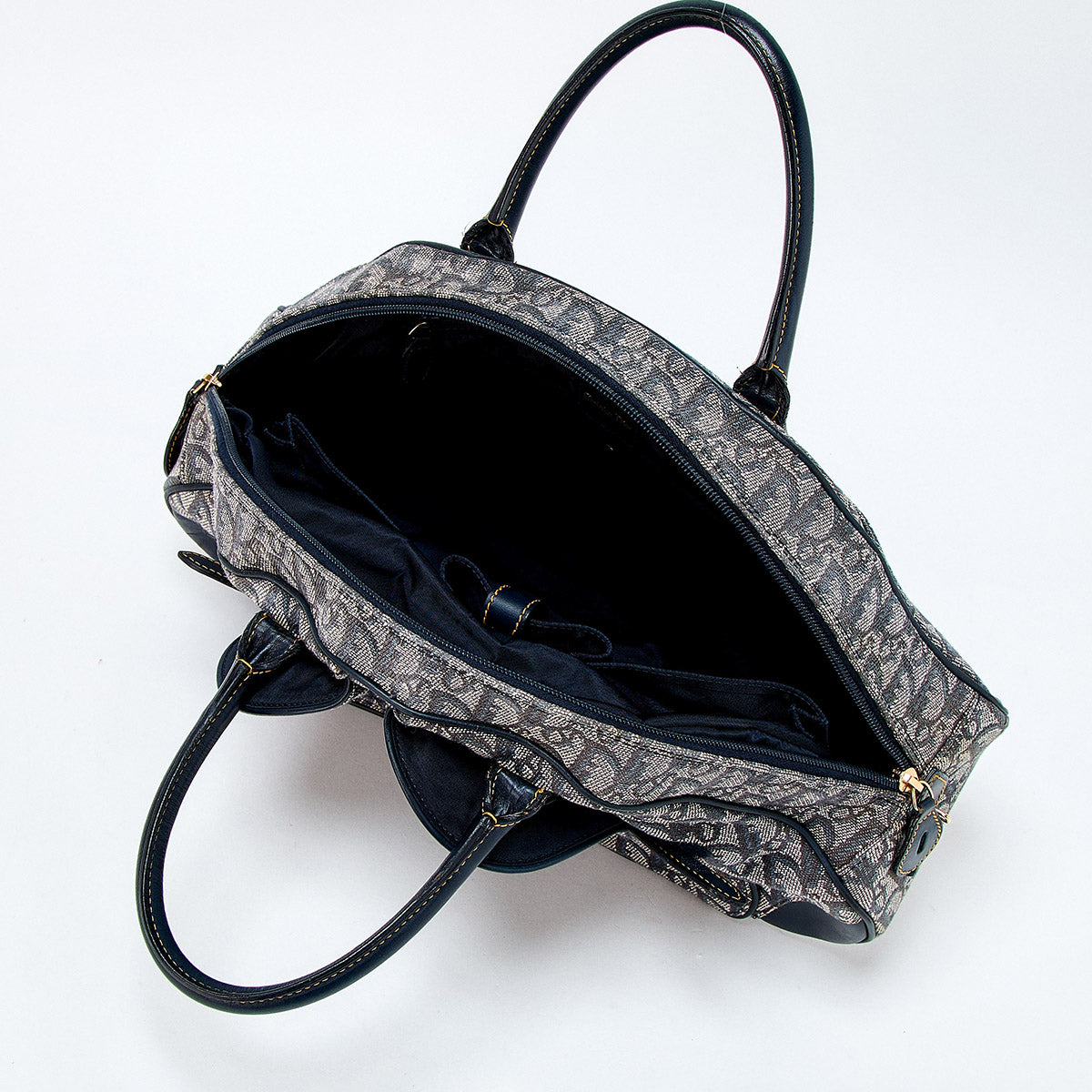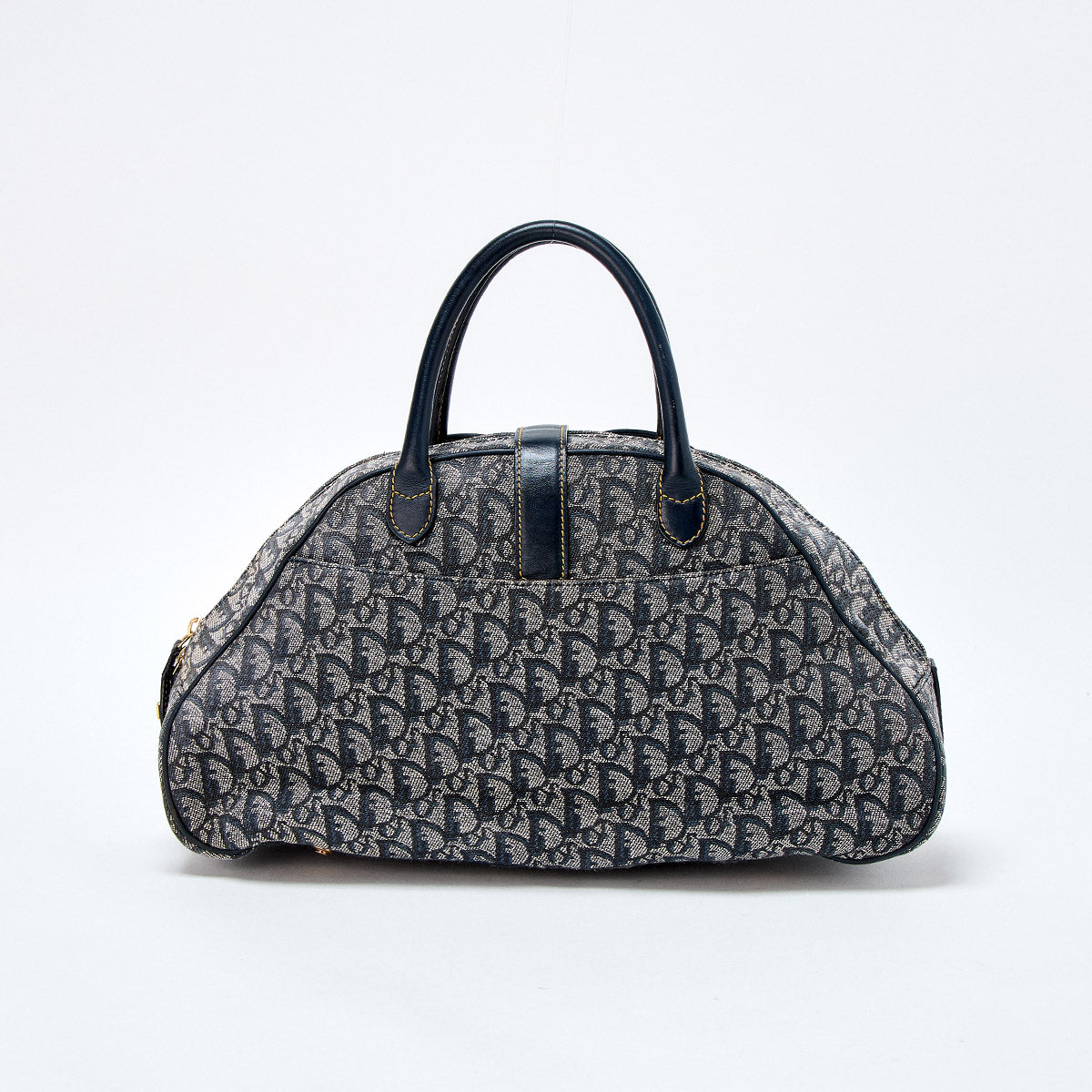 Christian Dior Double Saddle Hand Bag Navy Gold Canvas Auth