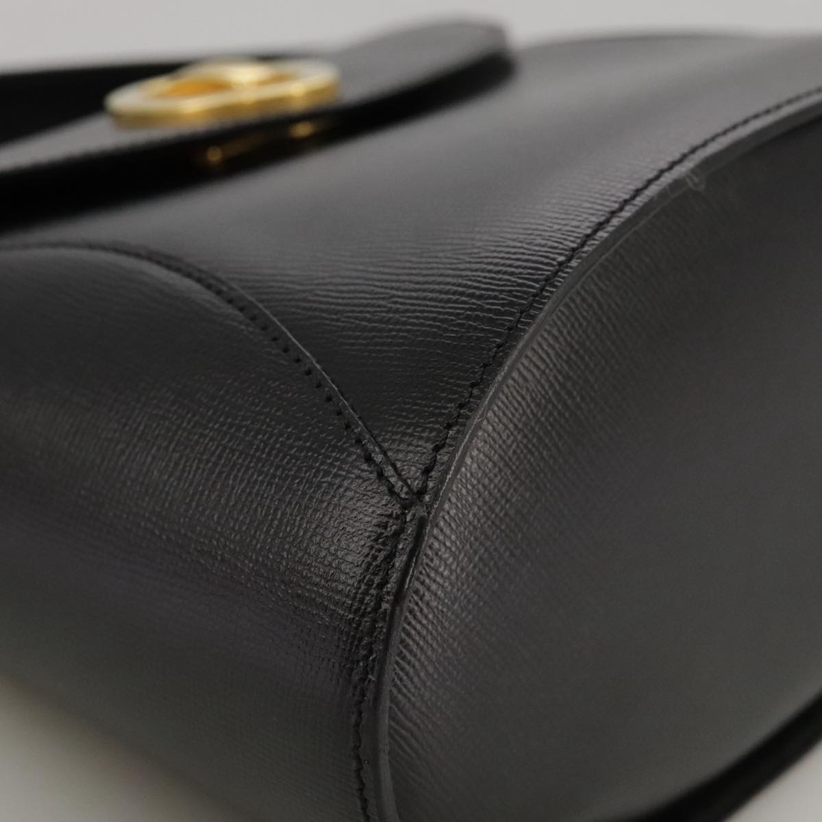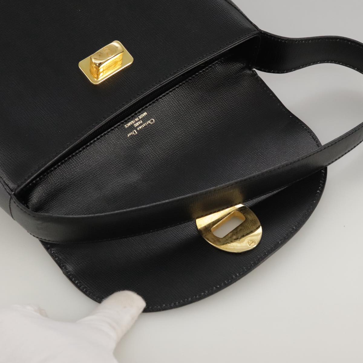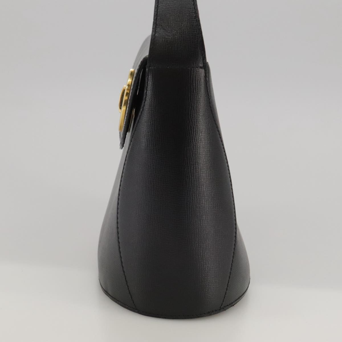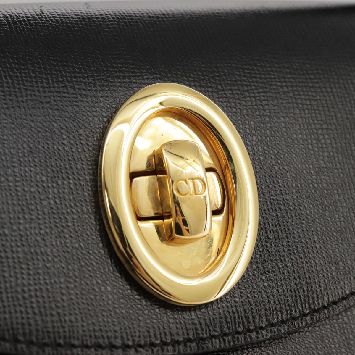 Christian Dior Hand Bag Leather Black Gold Auth 102769V