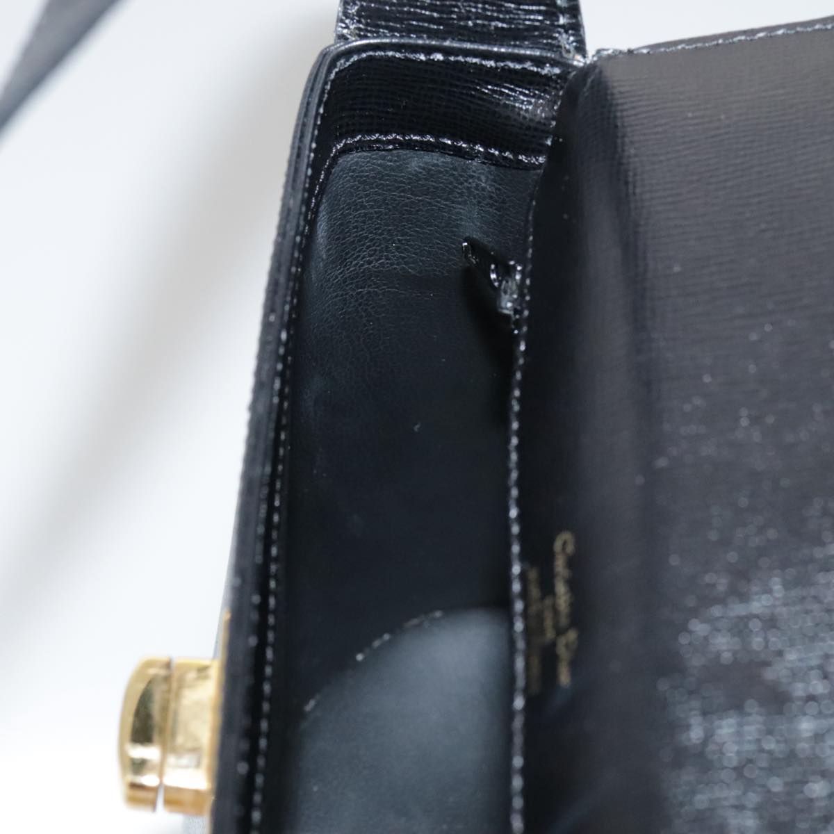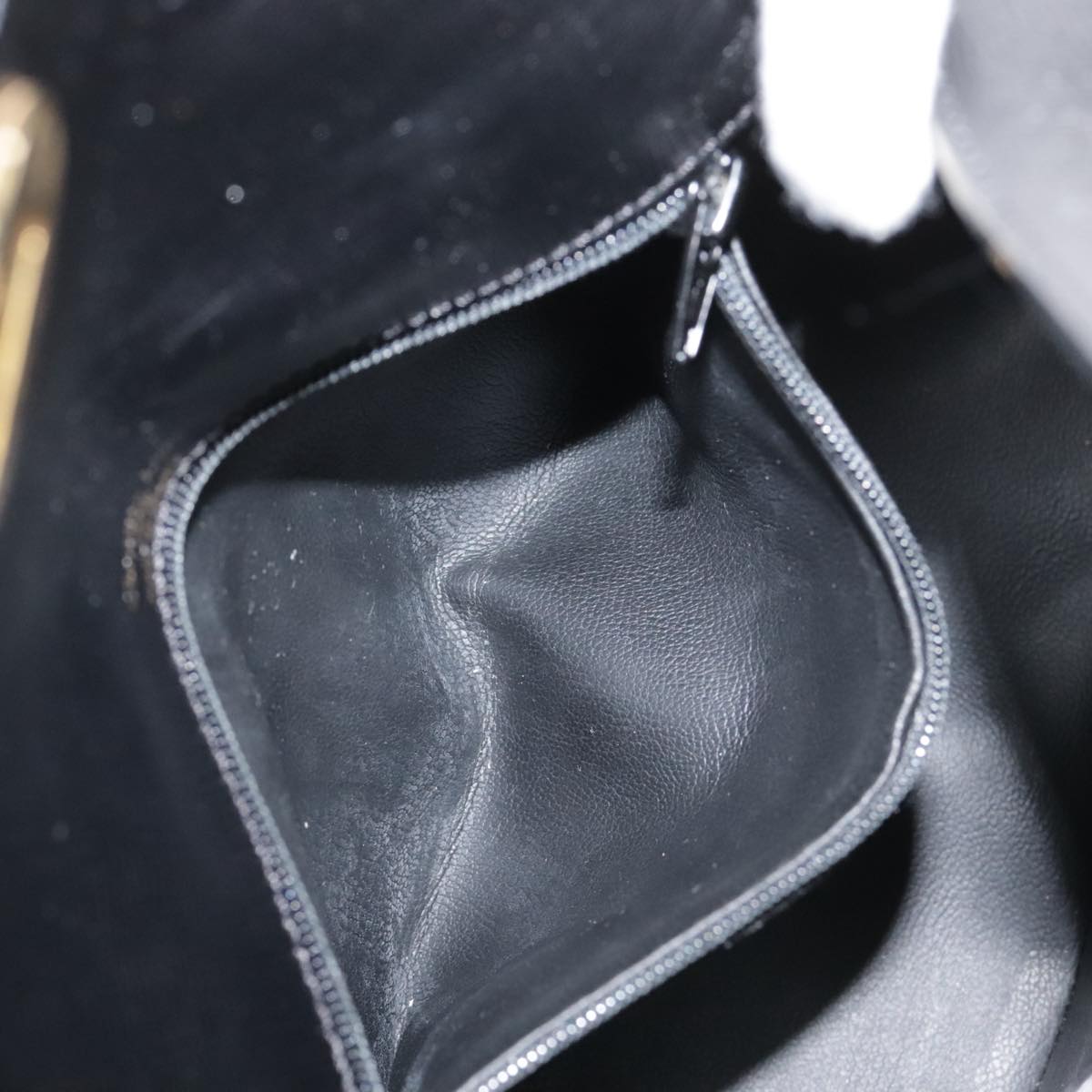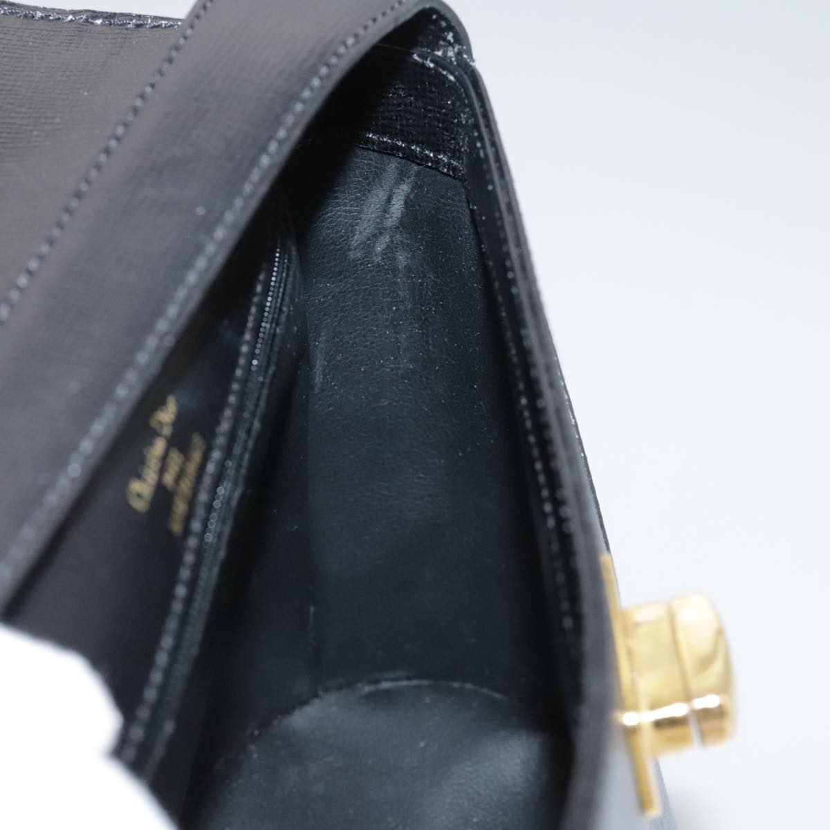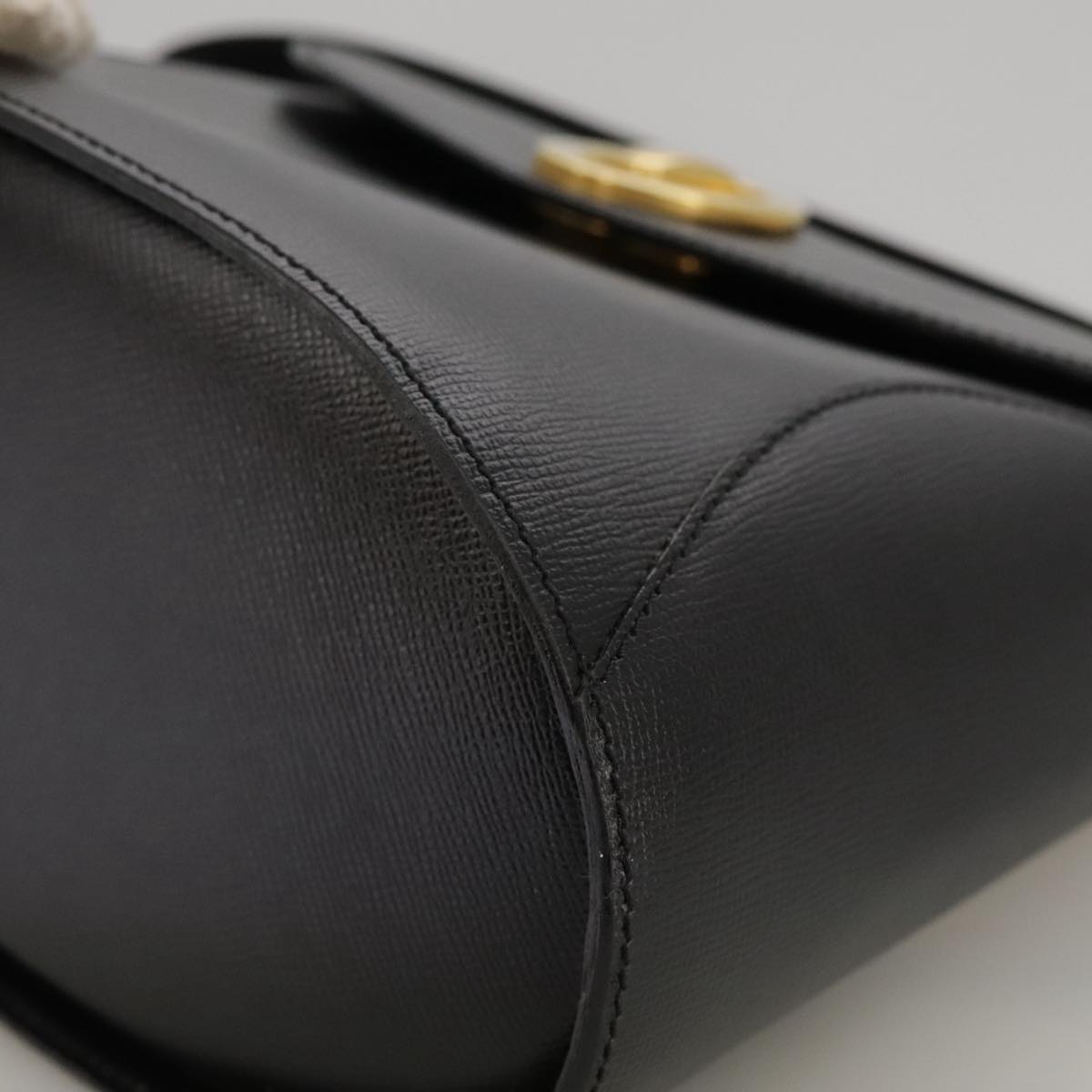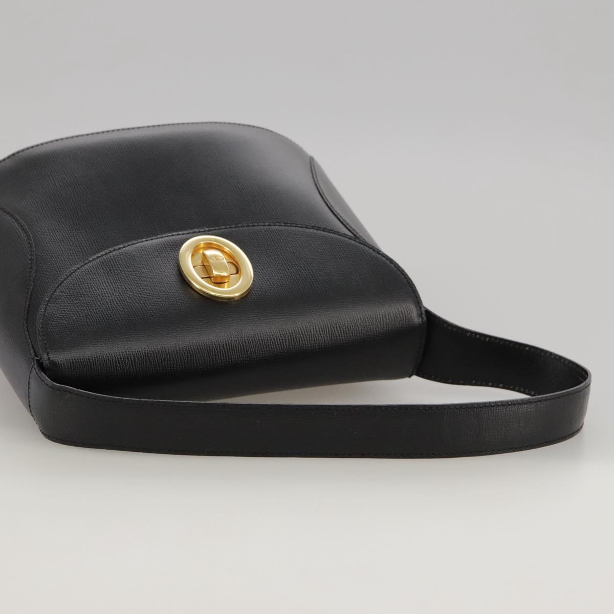 Christian Dior Hand Bag Leather Black Gold Auth 102769V