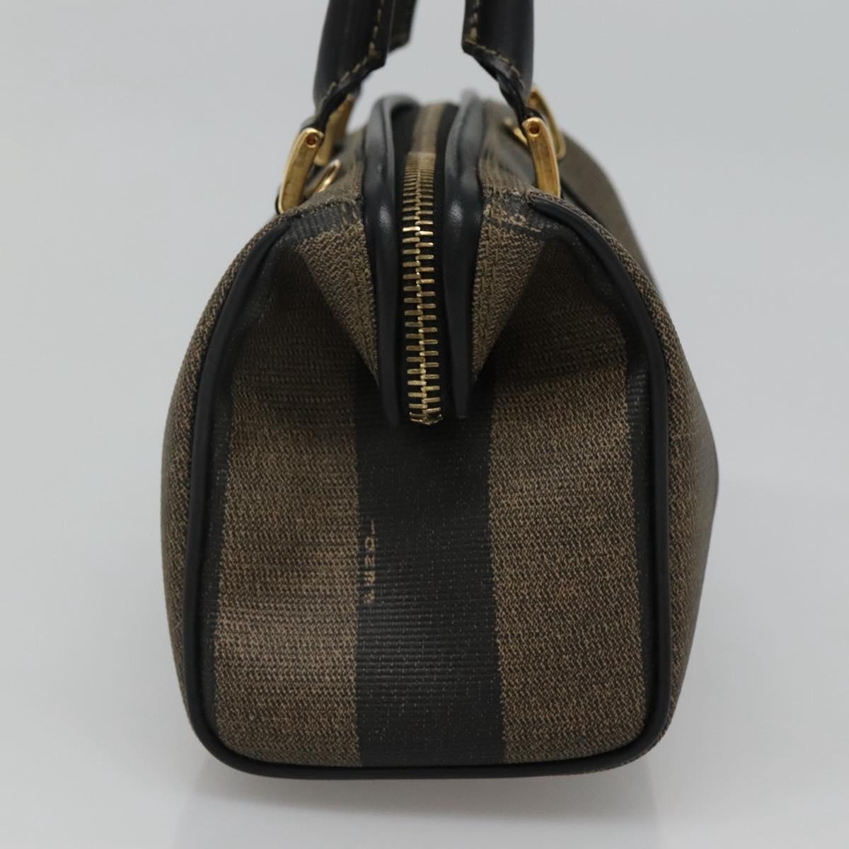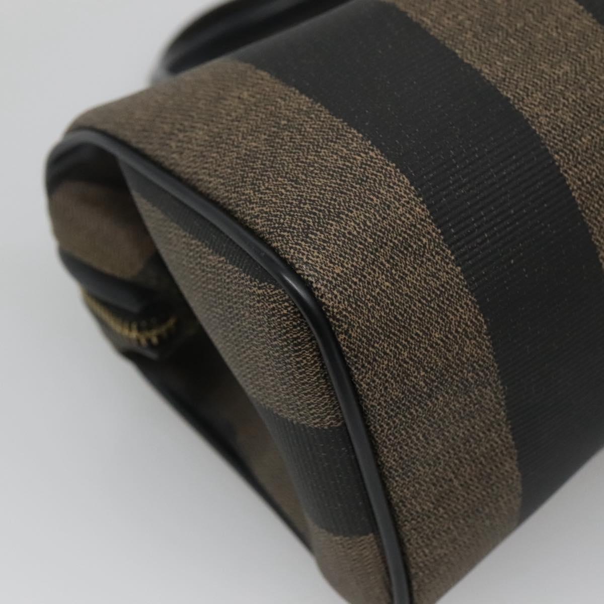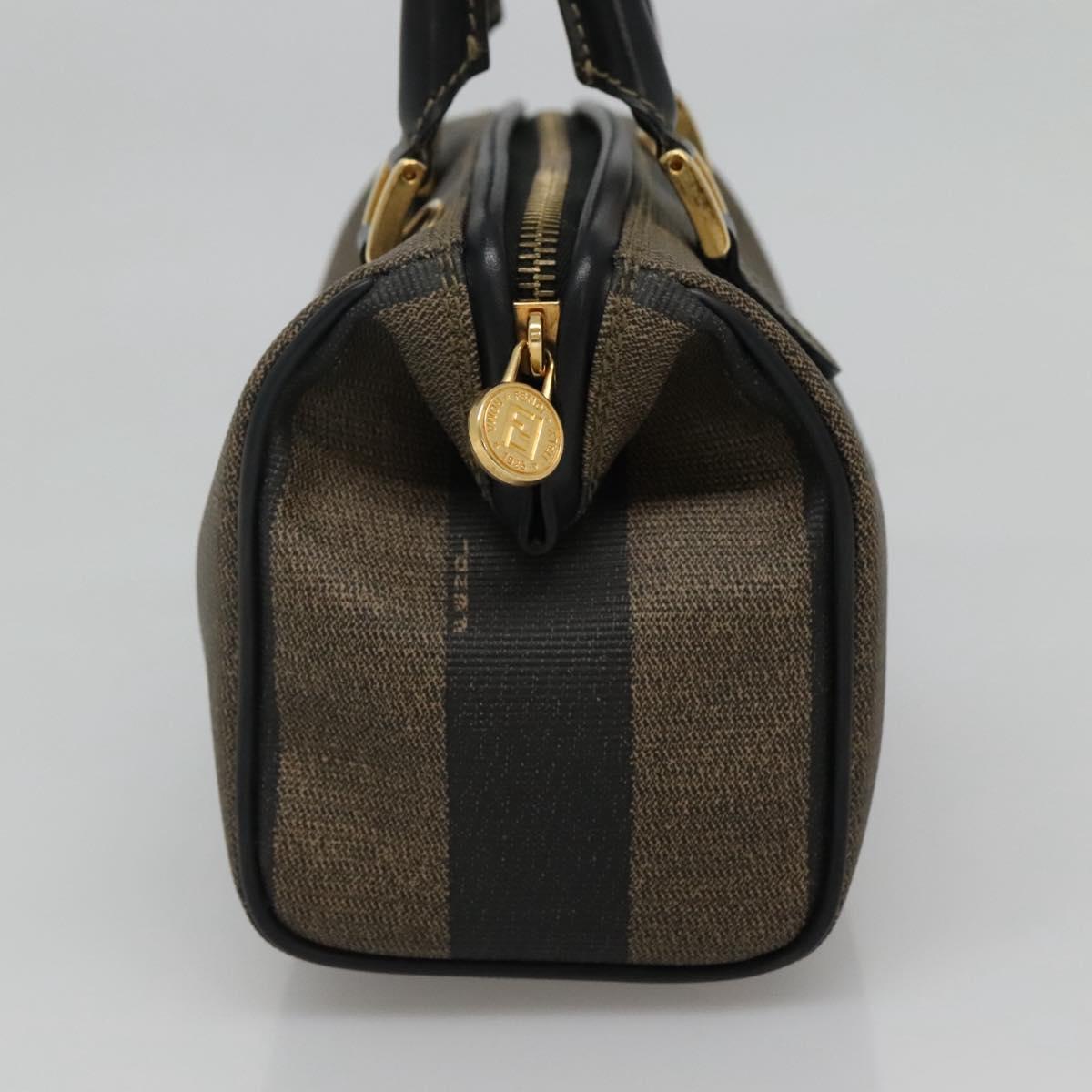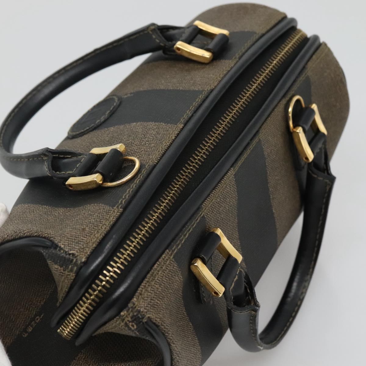 FENDI Pecan Canvas Mini Hand Bag Brown Black gold Auth yk17471V