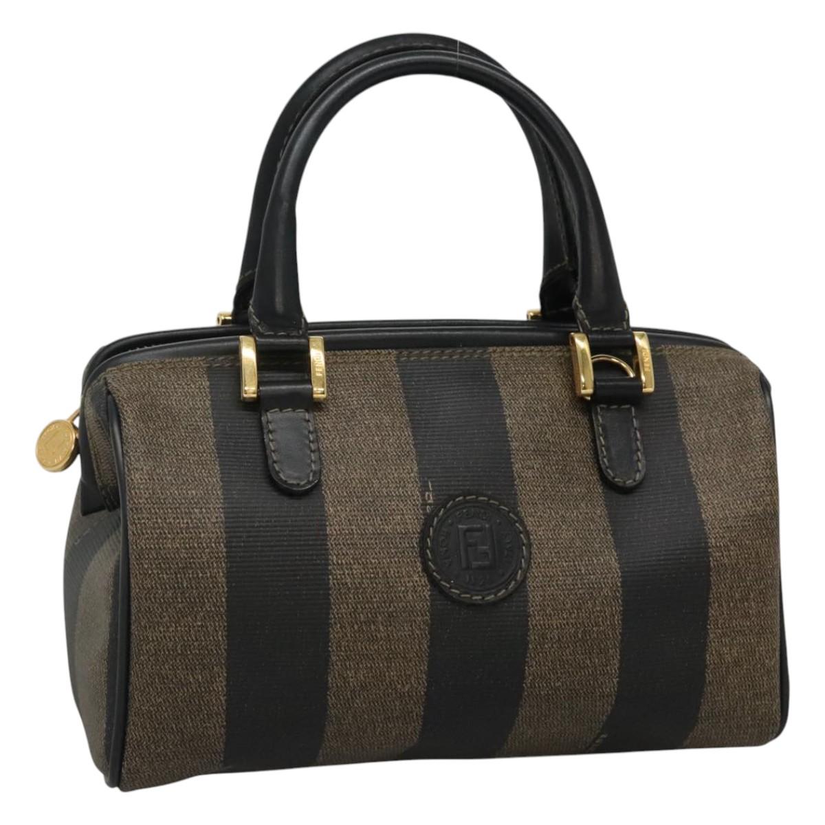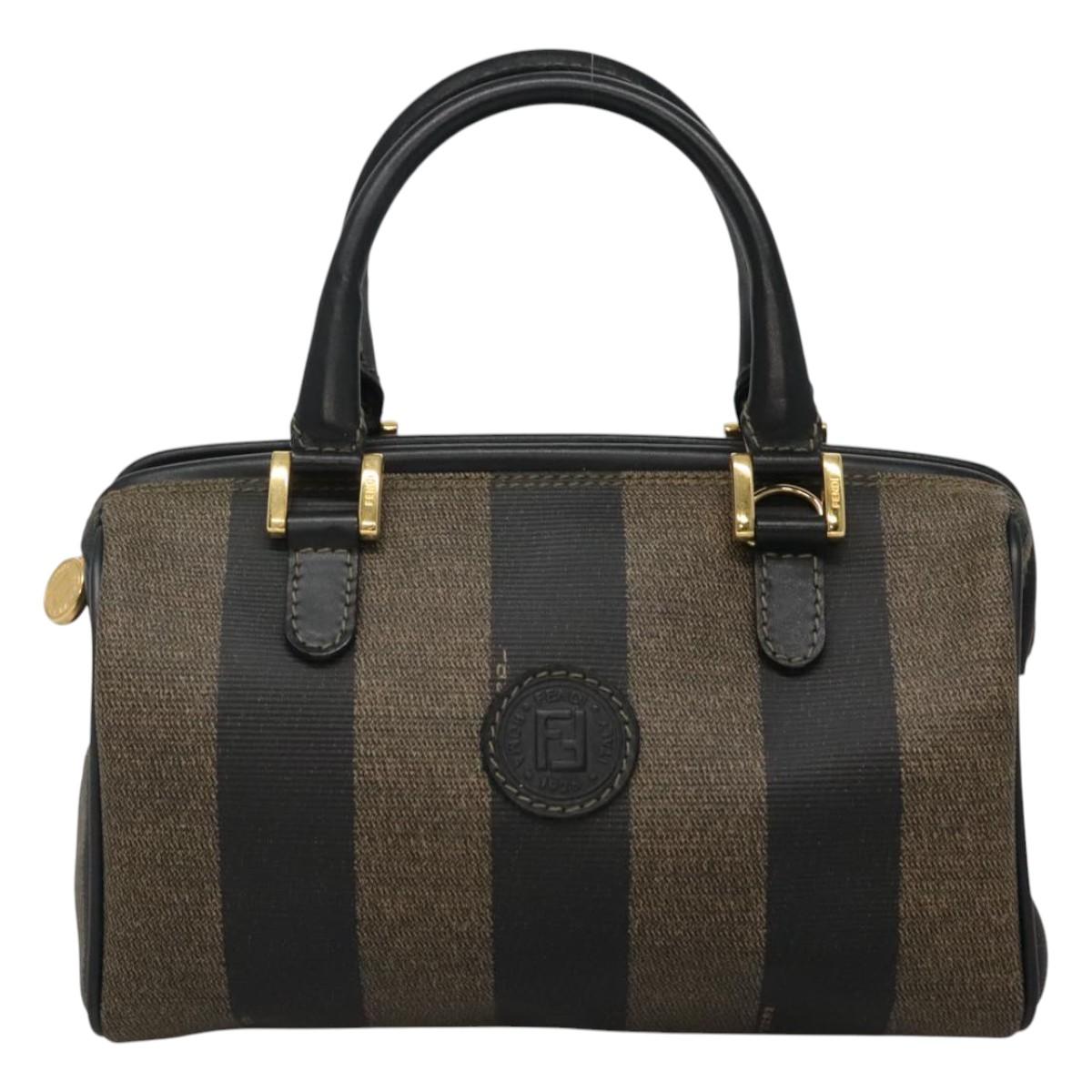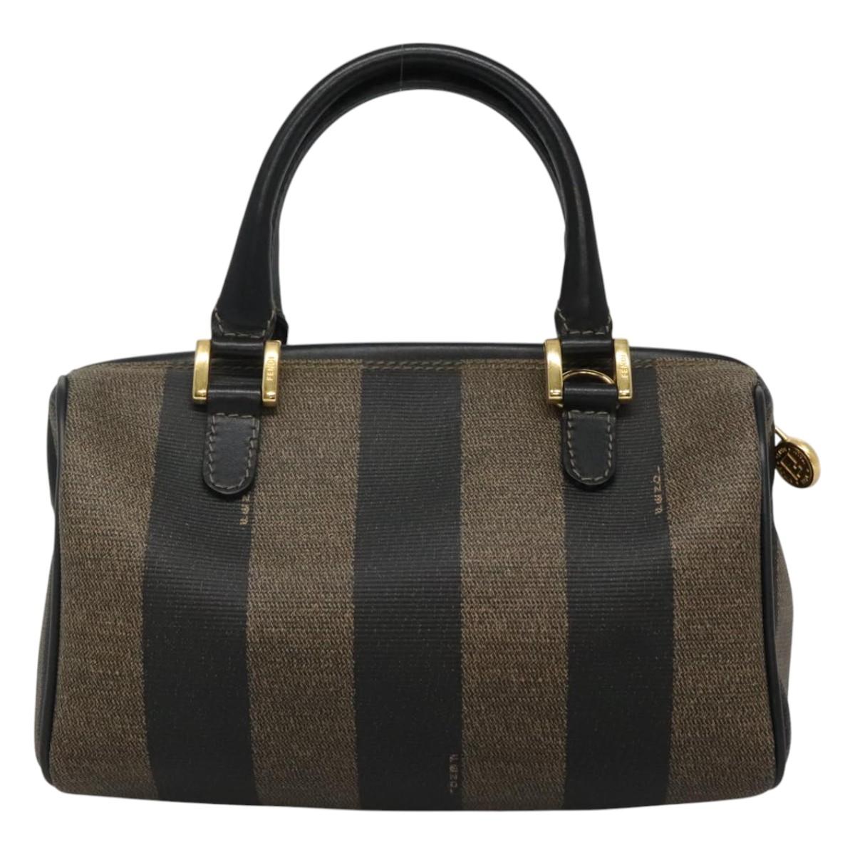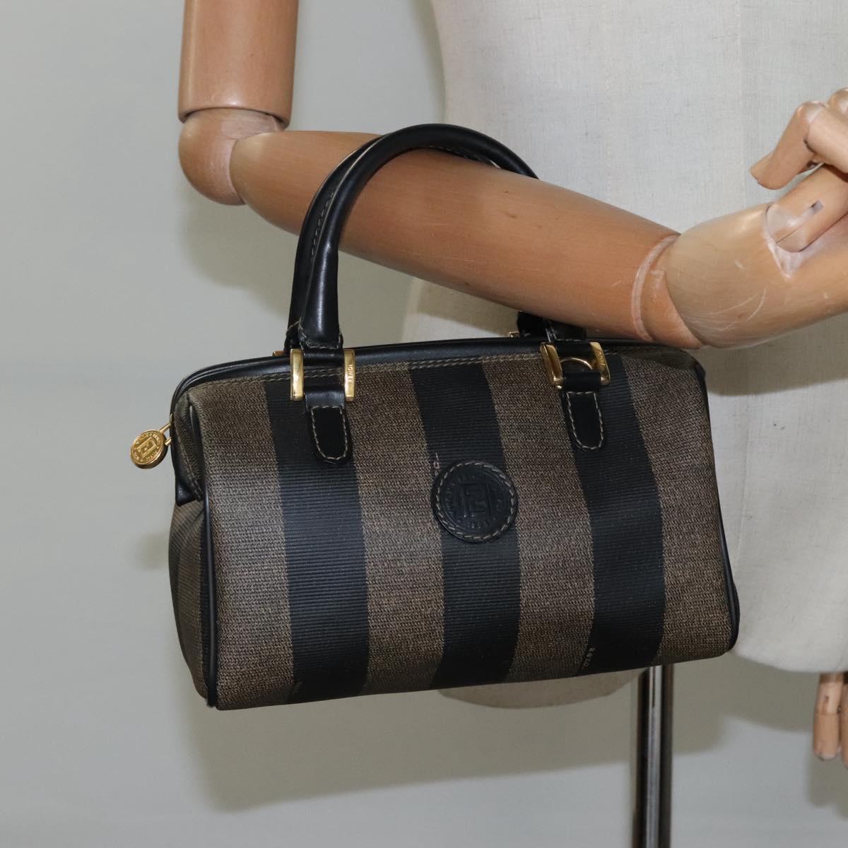 FENDI Pecan Canvas Mini Hand Bag Brown Black gold Auth yk17471V