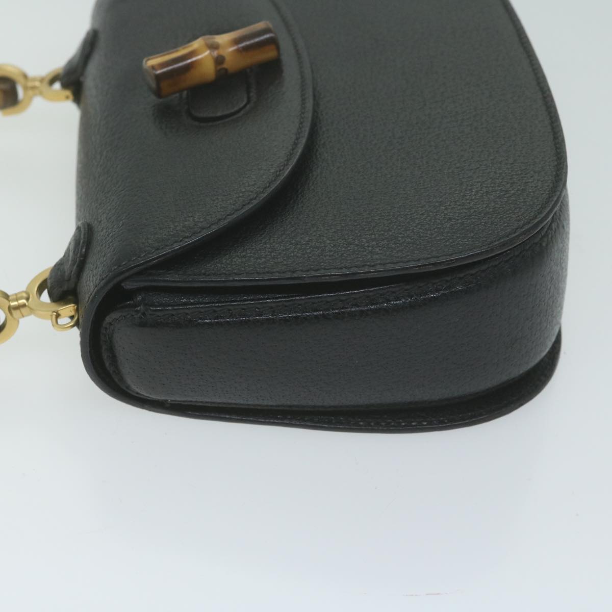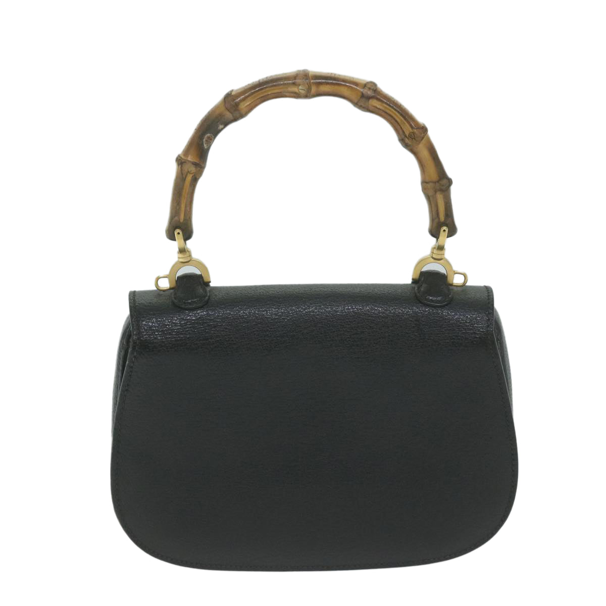 GUCCI Bamboo Hand Bag Leather Black 002 1186 Auth am5765V
