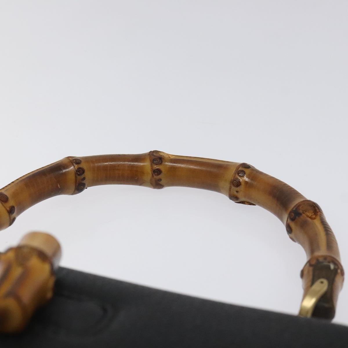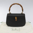 GUCCI Bamboo Hand Bag Leather Black Gold 000 2113 0188 Auth yk17496A