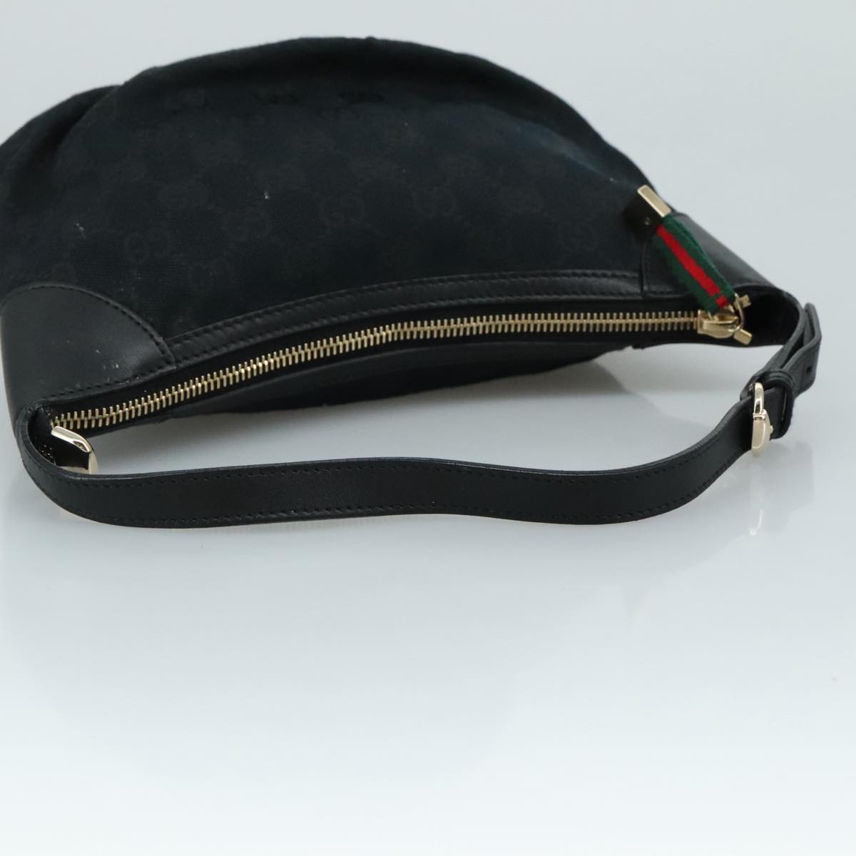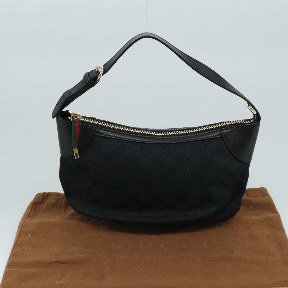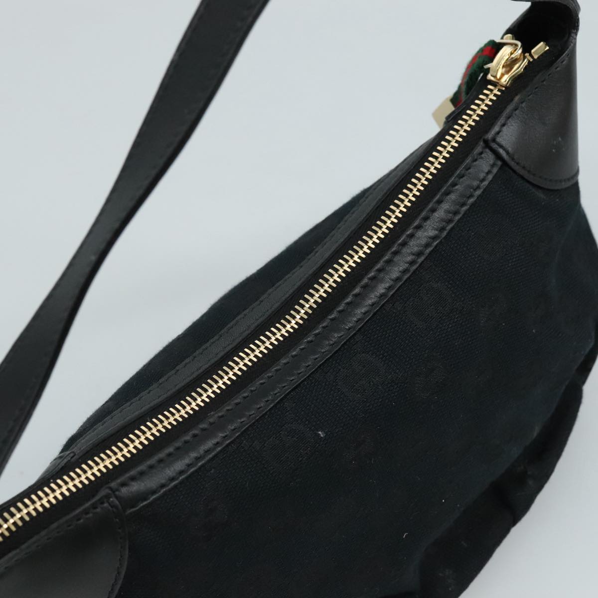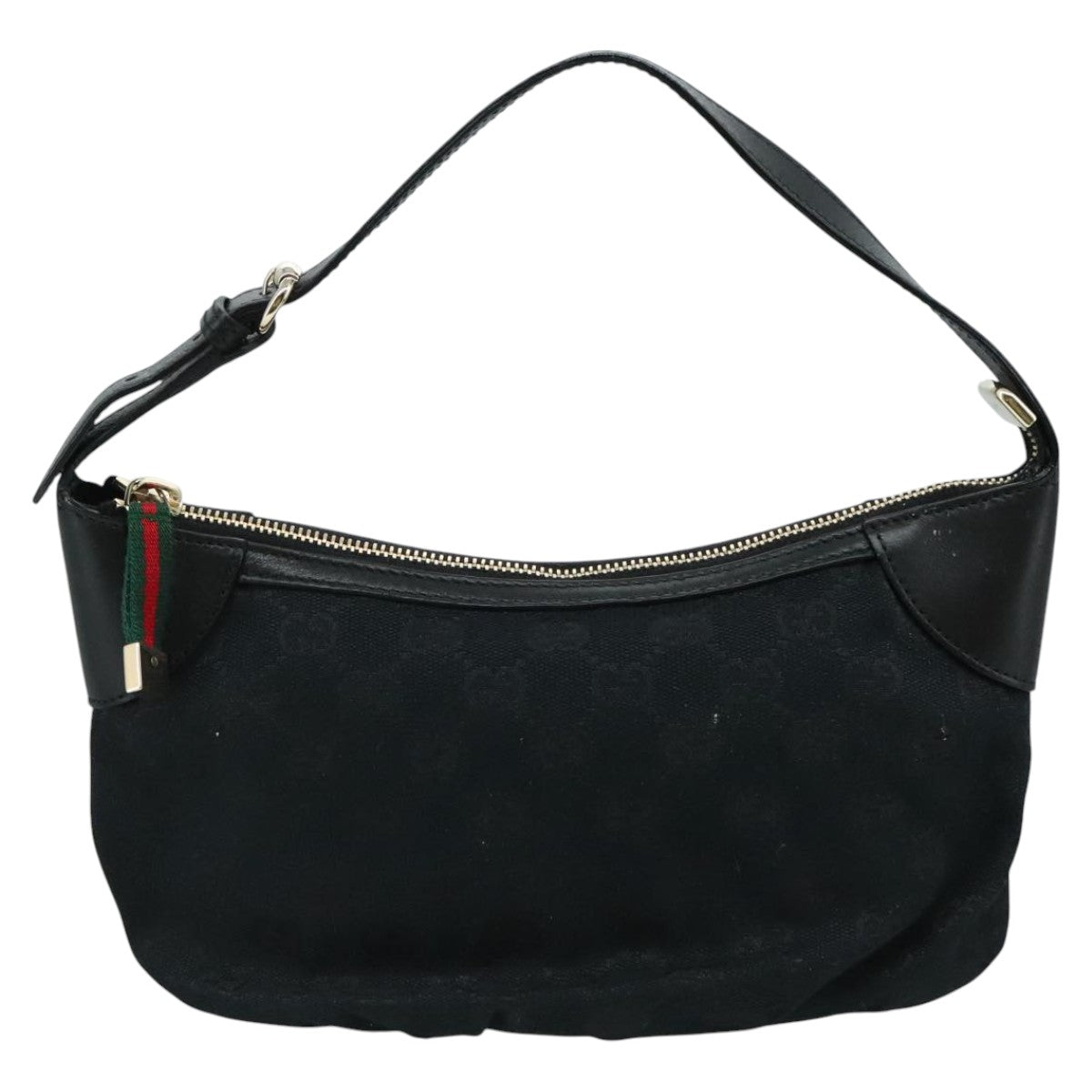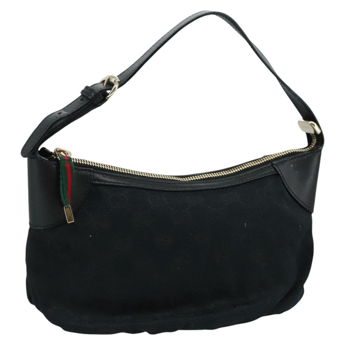 GUCCI GG Canvas Web Sherry Line Hand Bag Black Red Green 224093 Auth yk17168AV