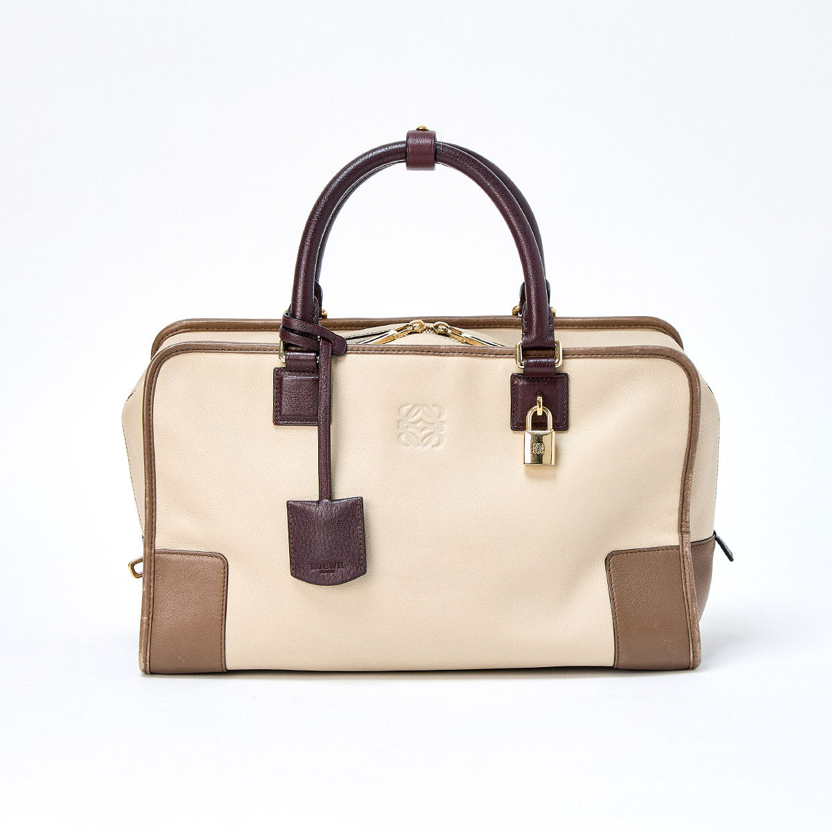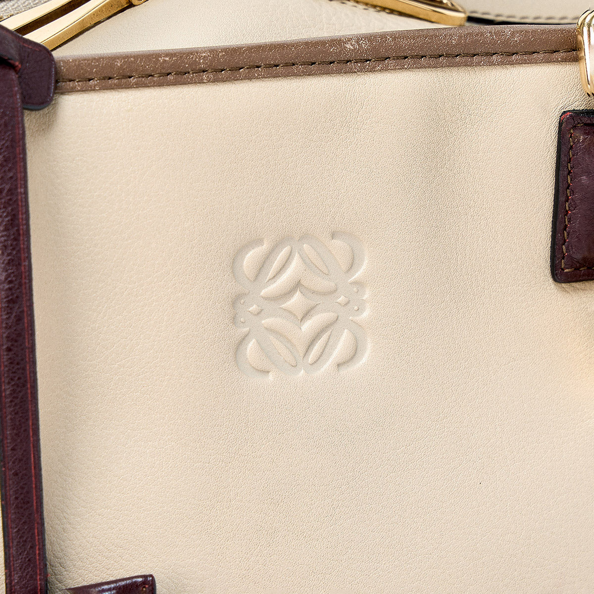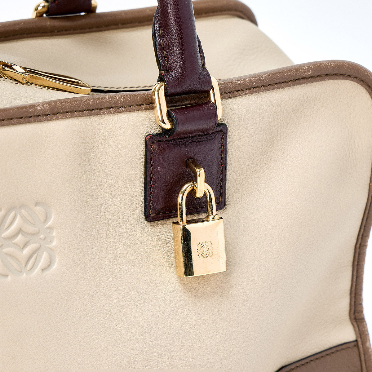 LOEWE Amazona 36 Hand Bag Beige Brown Gold Leather Auth