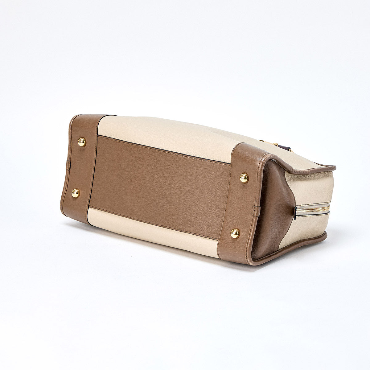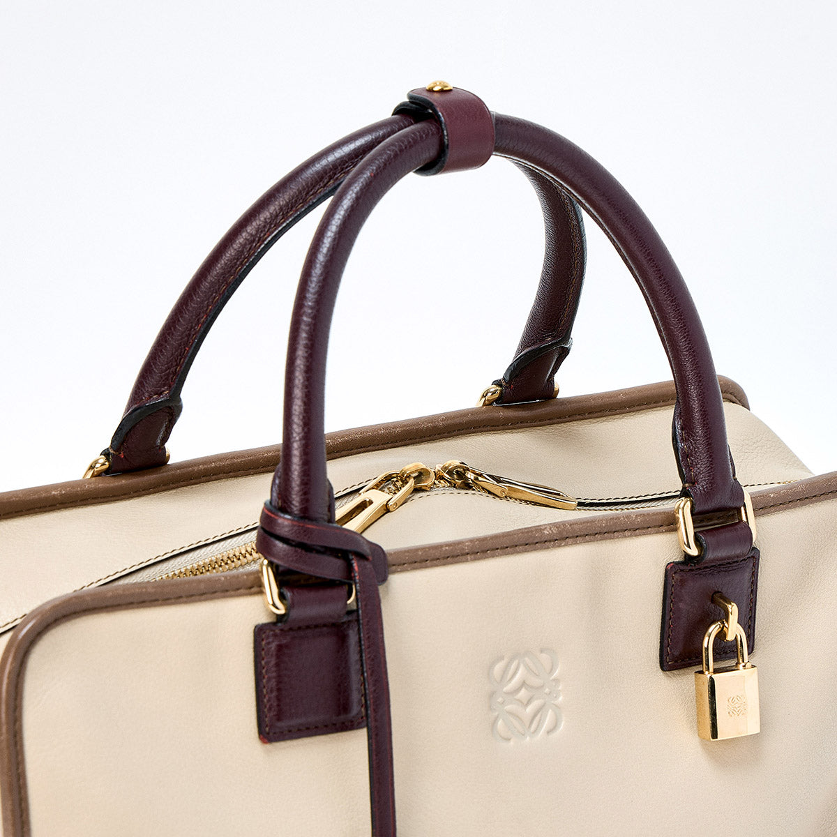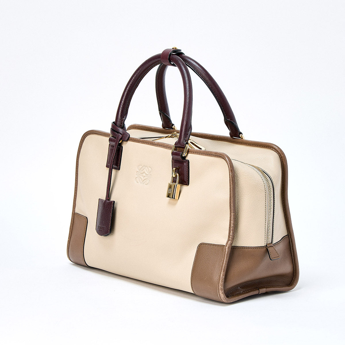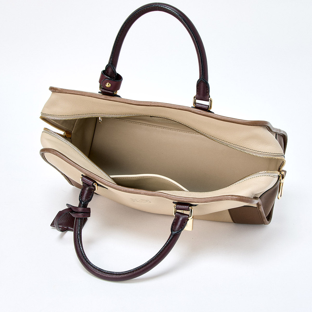 LOEWE Amazona 36 Hand Bag Beige Brown Gold Leather Auth