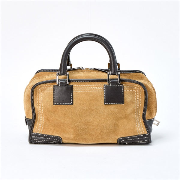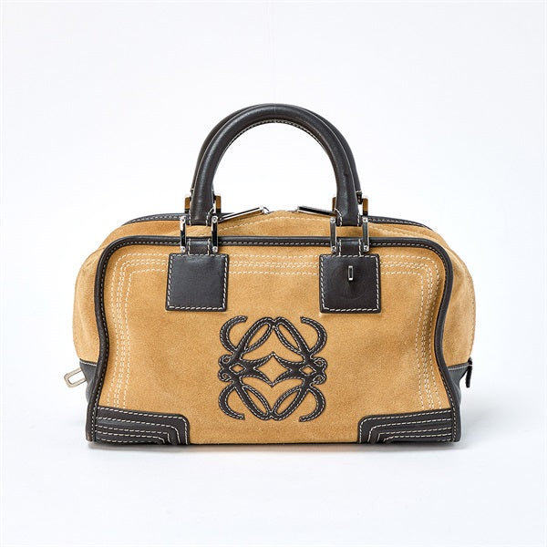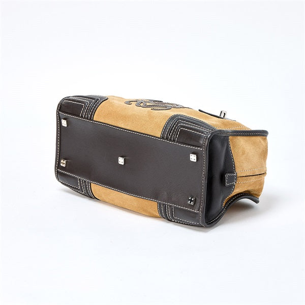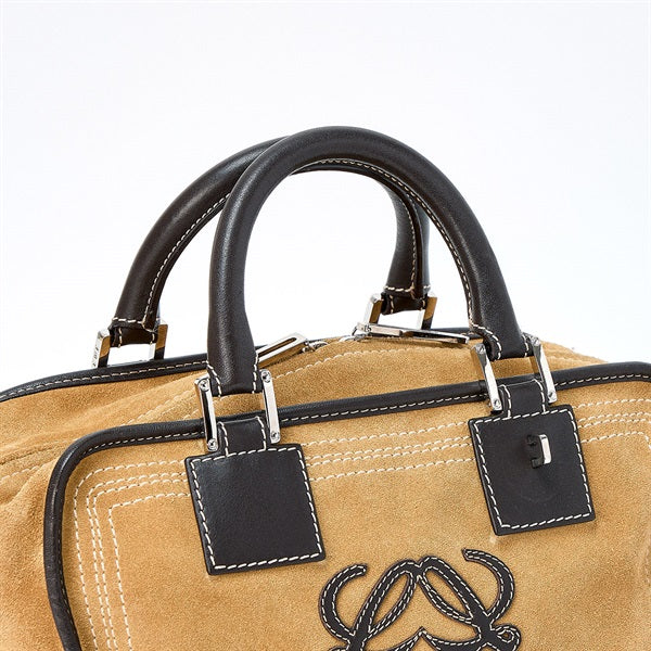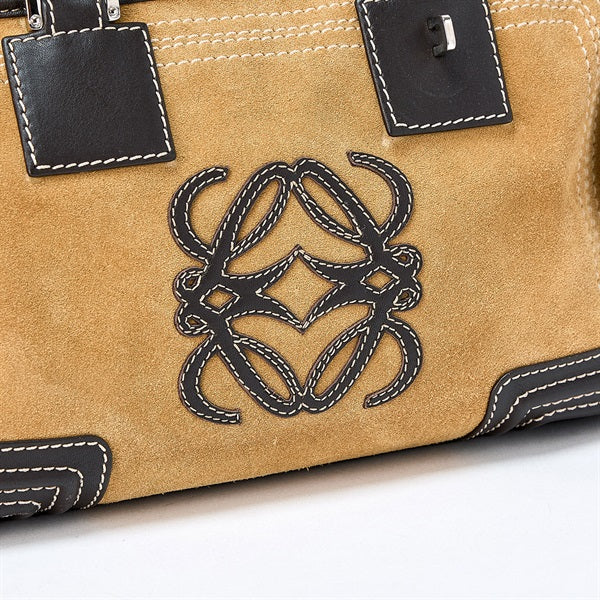 LOEWE Amazona Hand Bag Beige Brown Silver Suede Auth