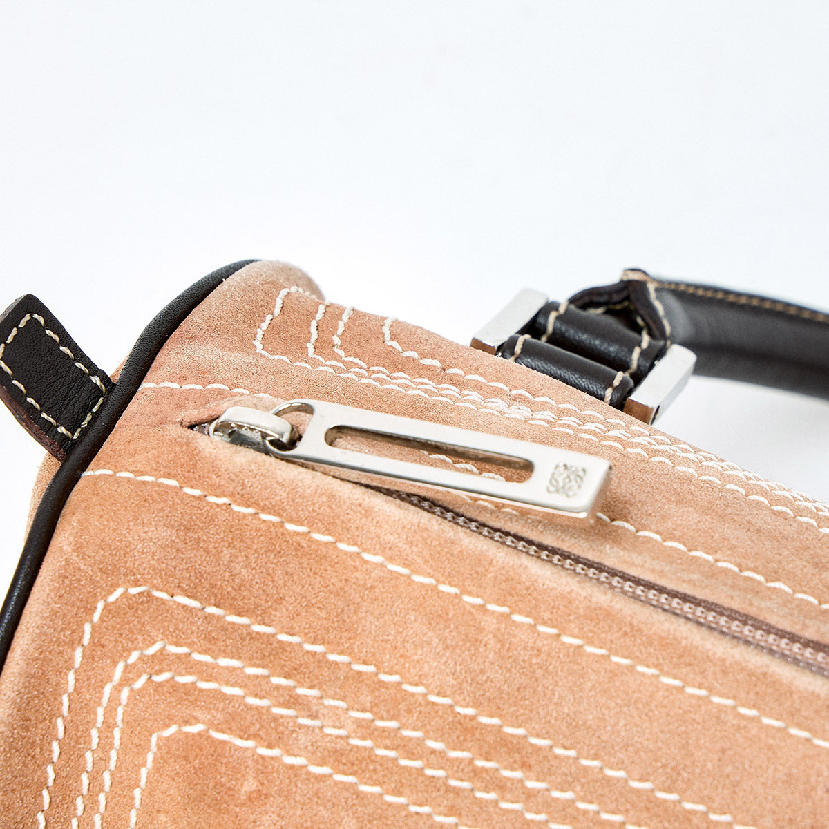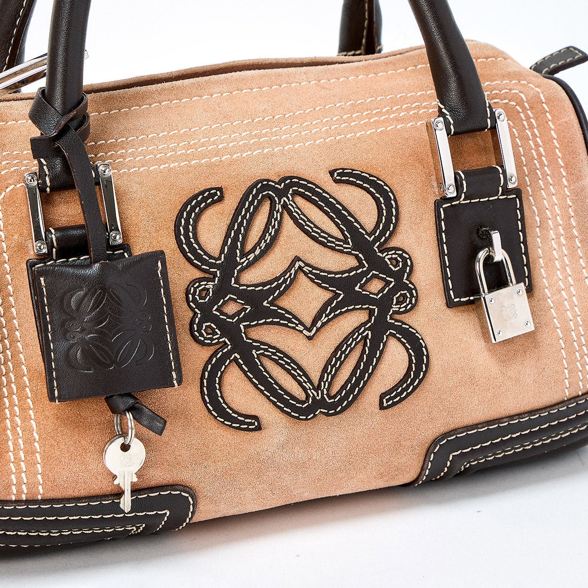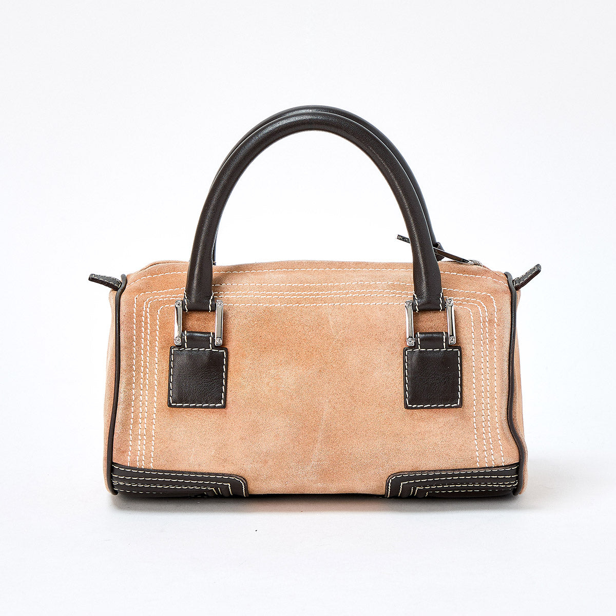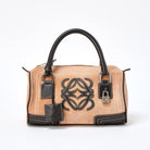 LOEWE Amazona Hand Bag Beige Brown Silver Suede Auth