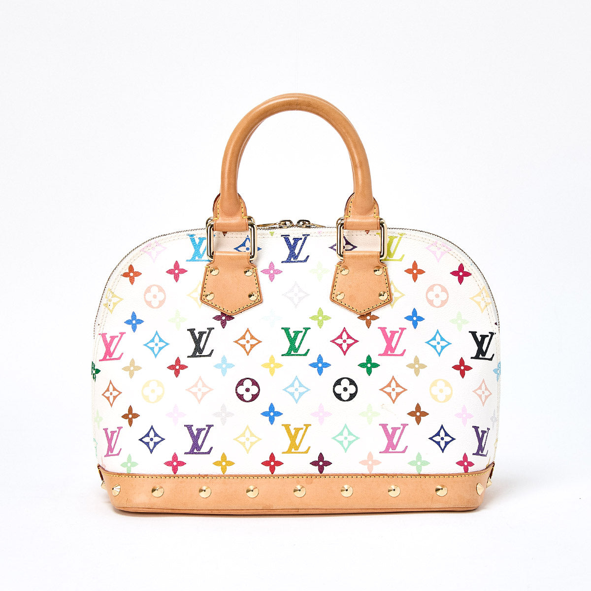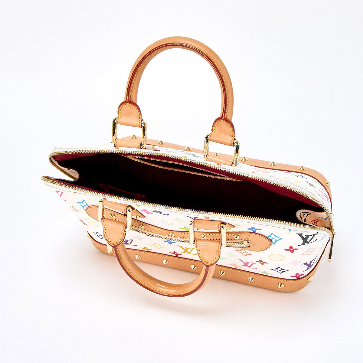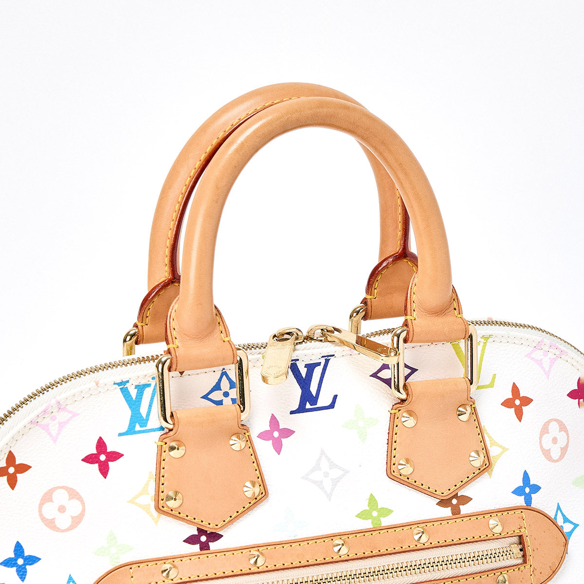 LOUIS VUITTON Alma Monogram Multicolor Hand Bag Multicolor Blanc Beige Gold PVC Auth