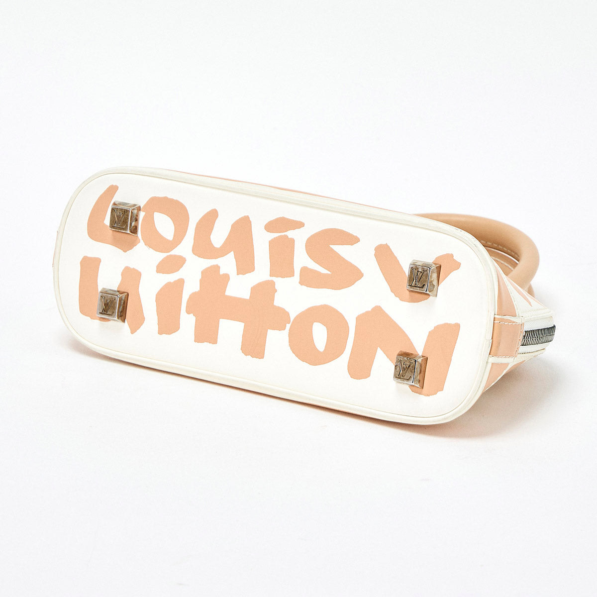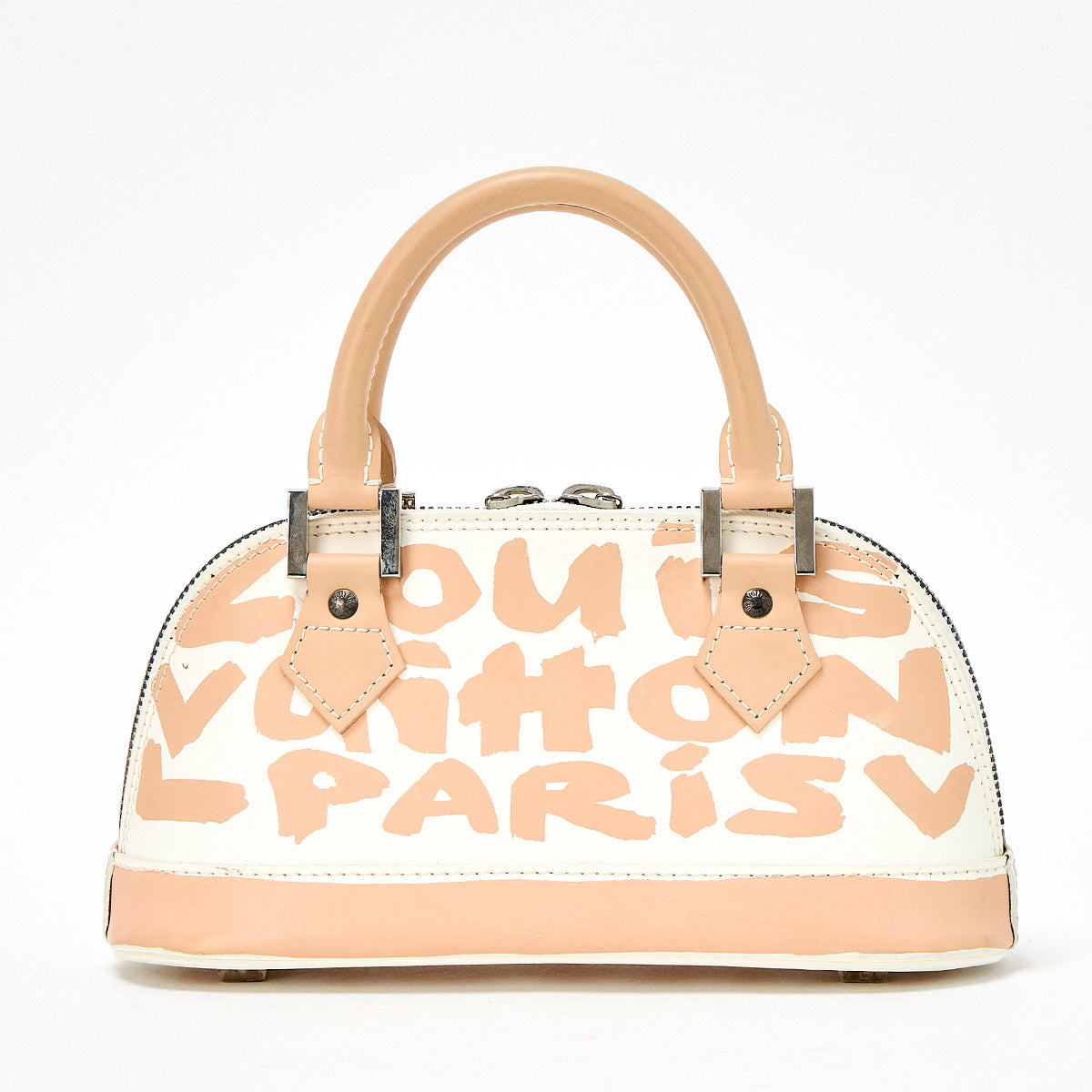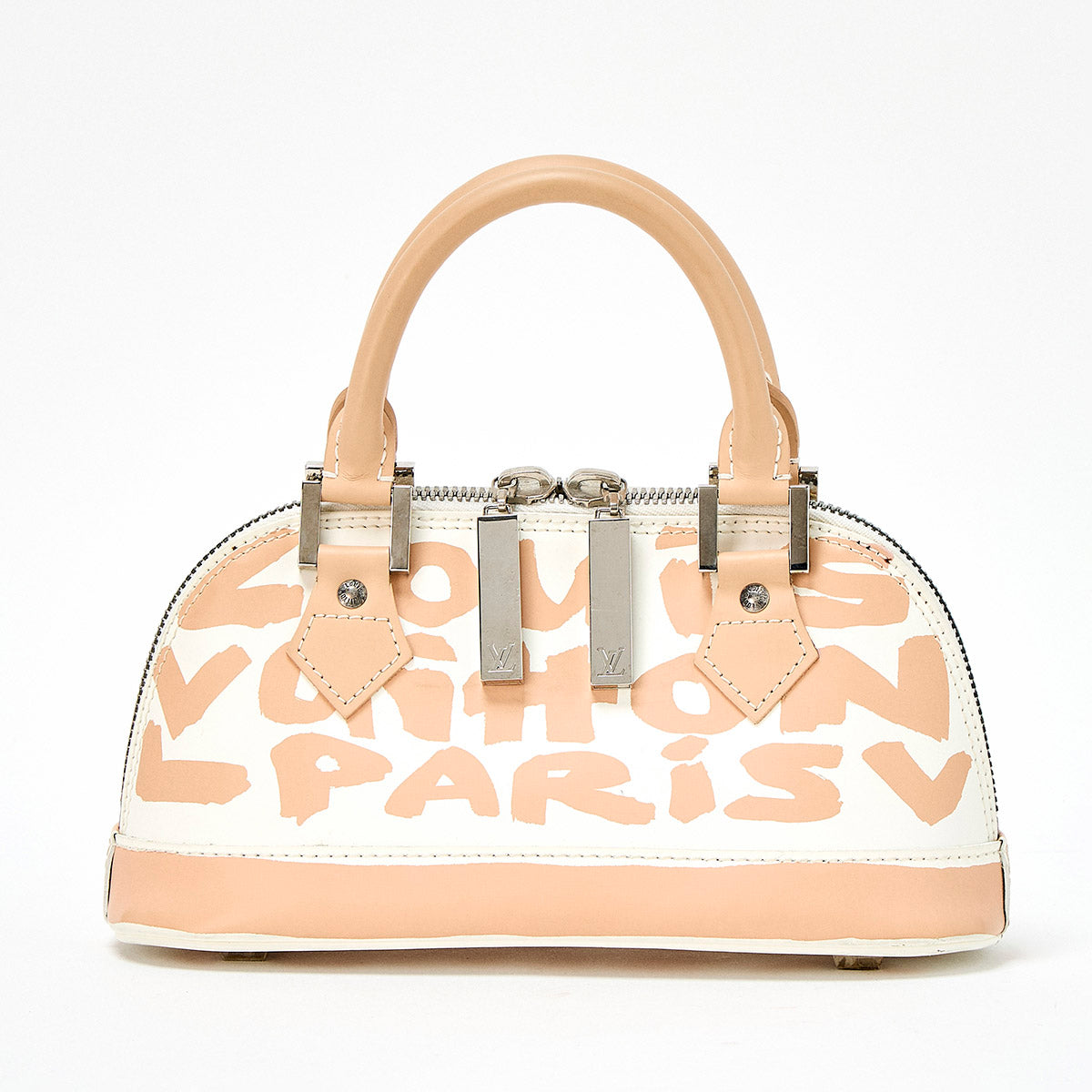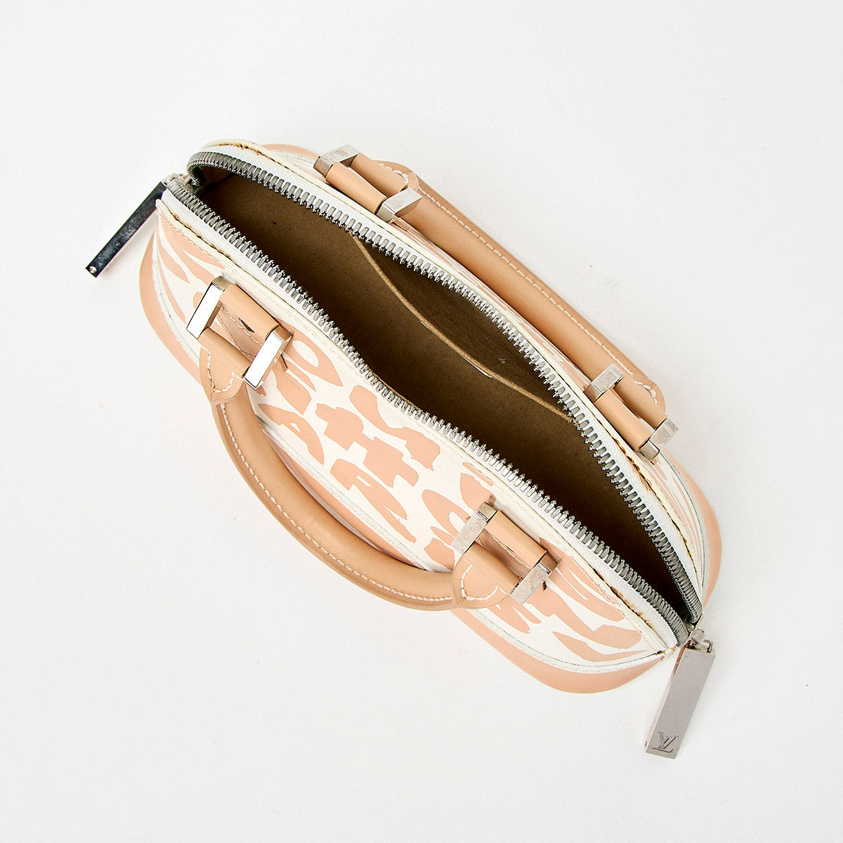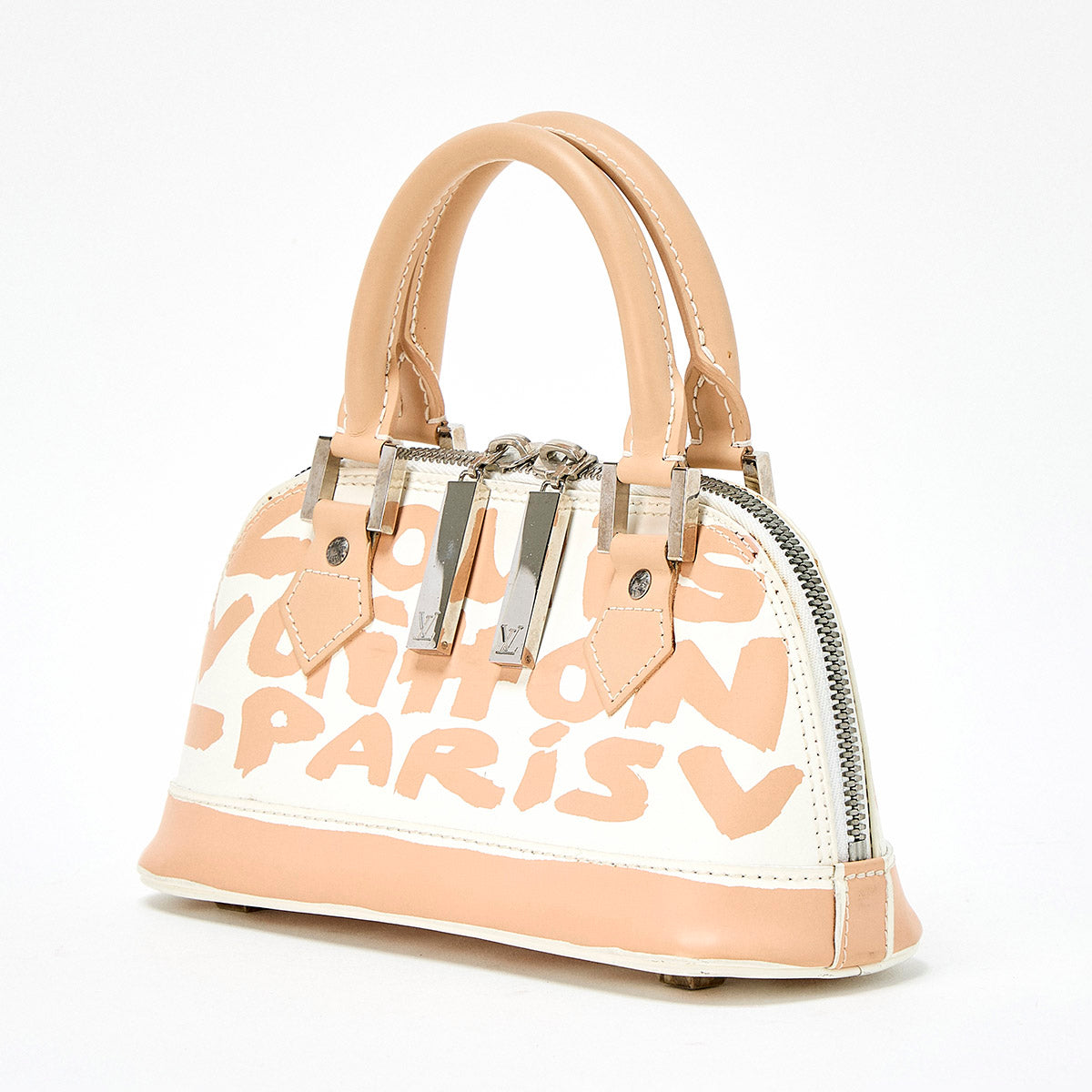 LOUIS VUITTON Alma Monogram PM Hand Bag M92178 White Beige Silver Leather Auth
