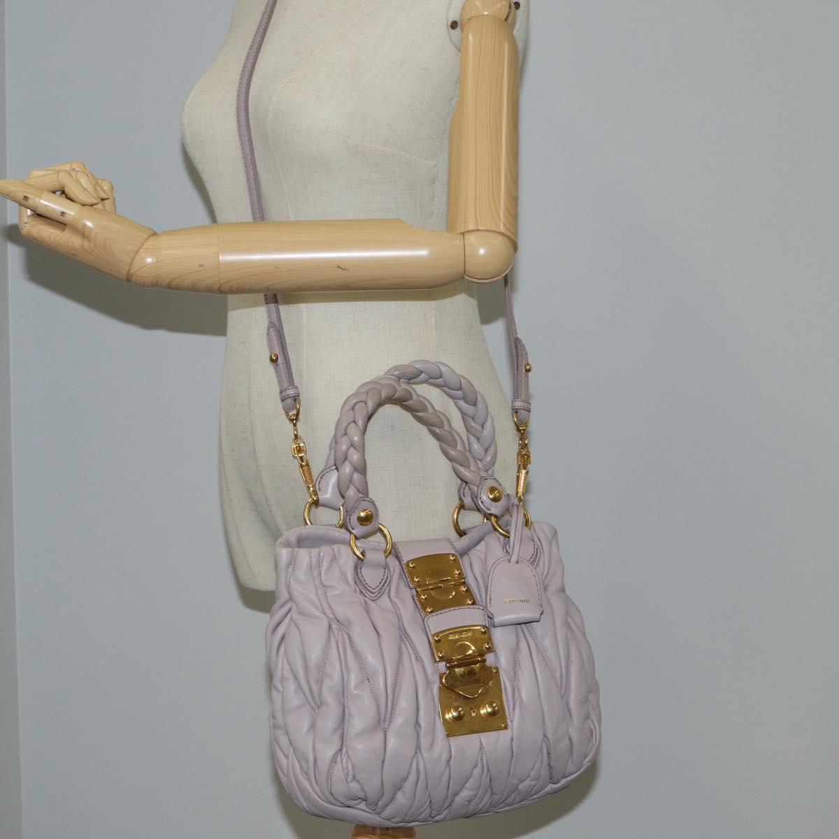 Miu Miu Matelasse Hand Bag Leather 2way Pink Gold Auth 125047V