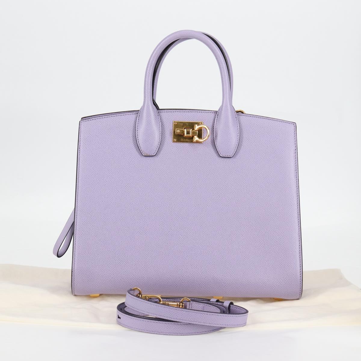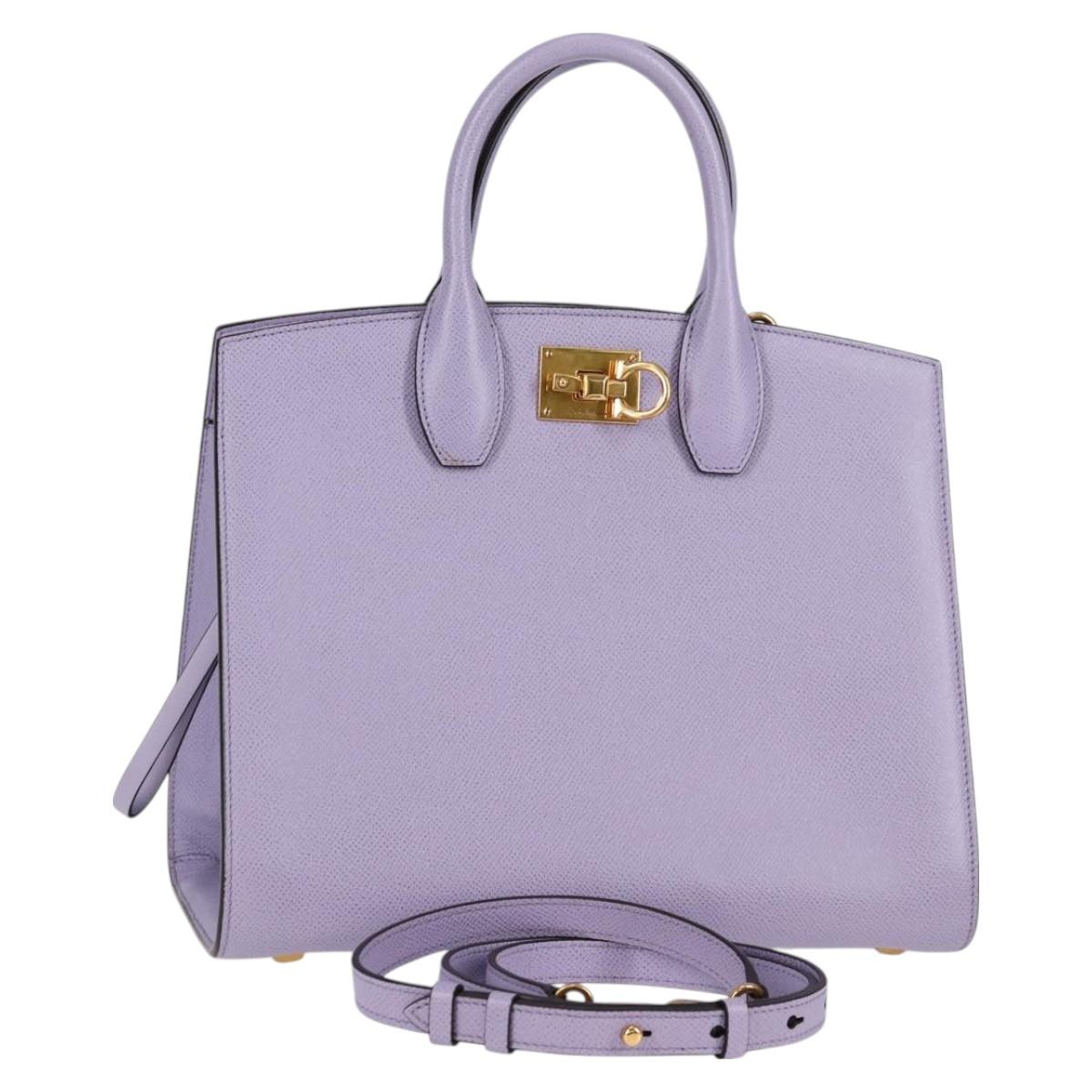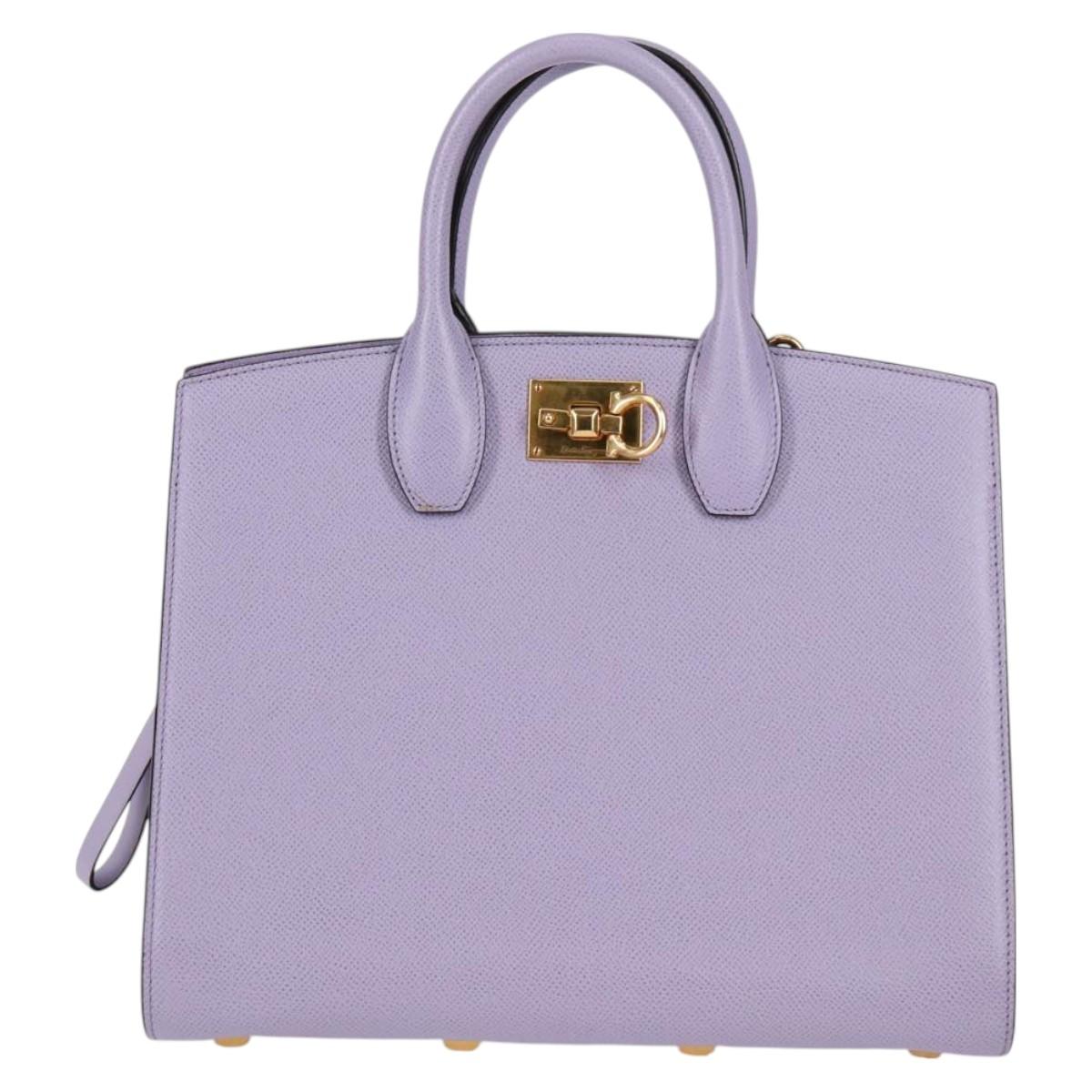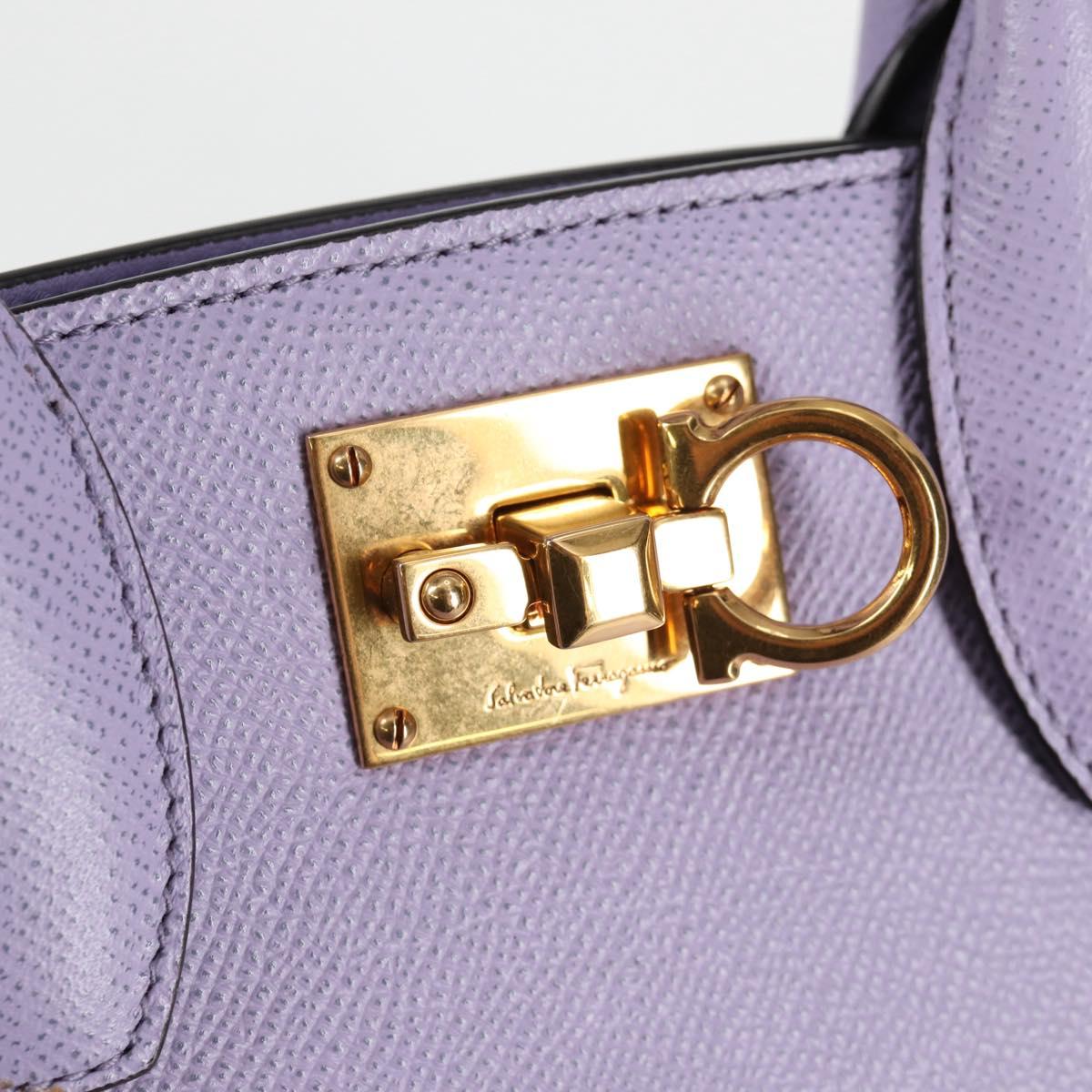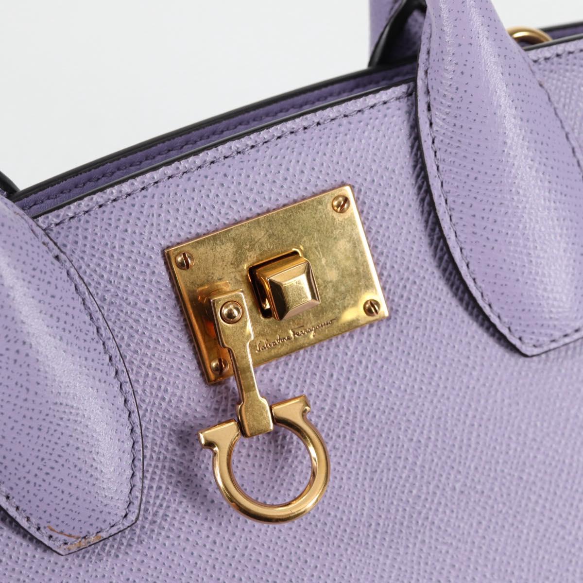 Salvatore Ferragamo Gancini Hand Bag Leather 2way Purple Gold Auth 125956V