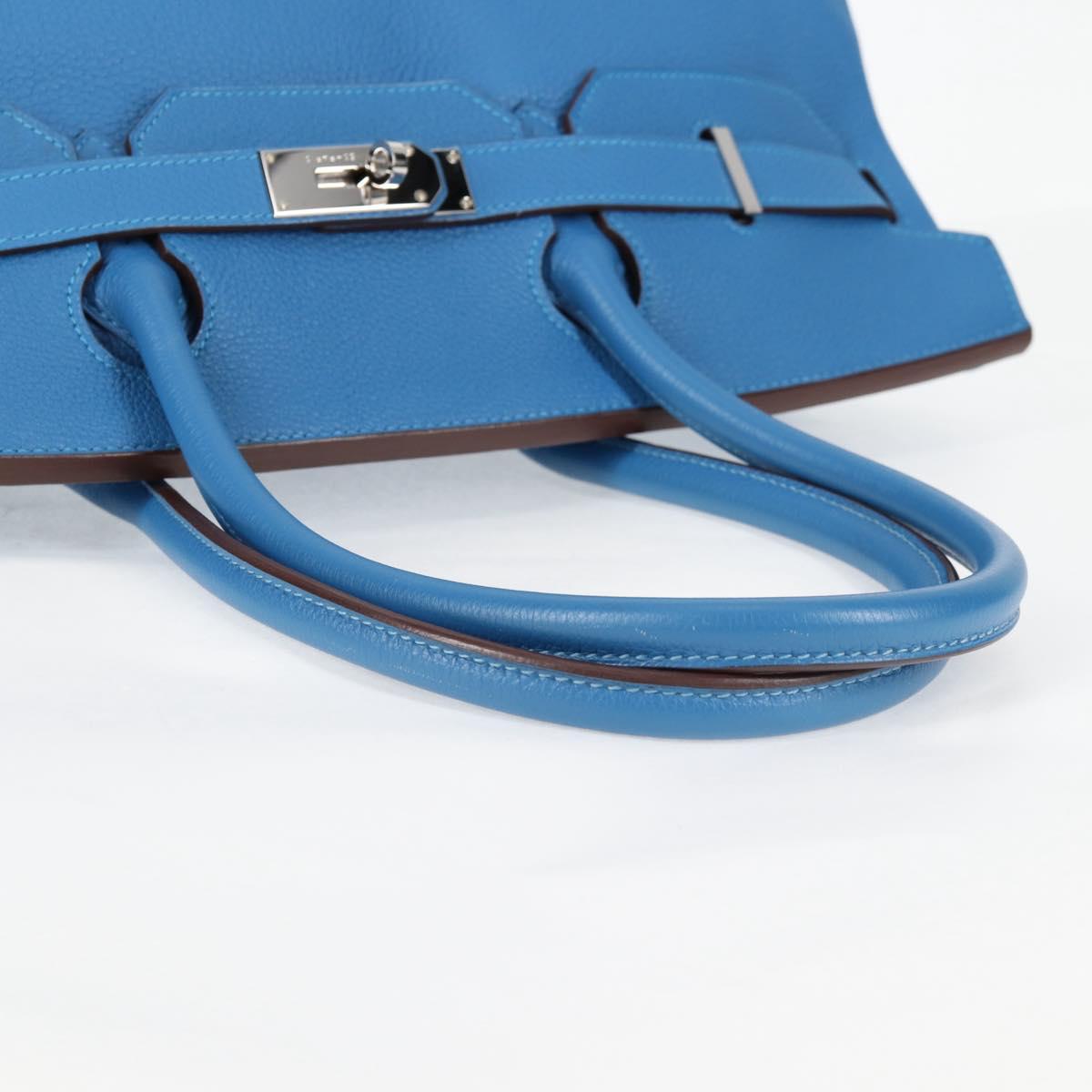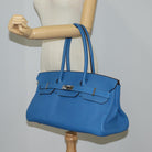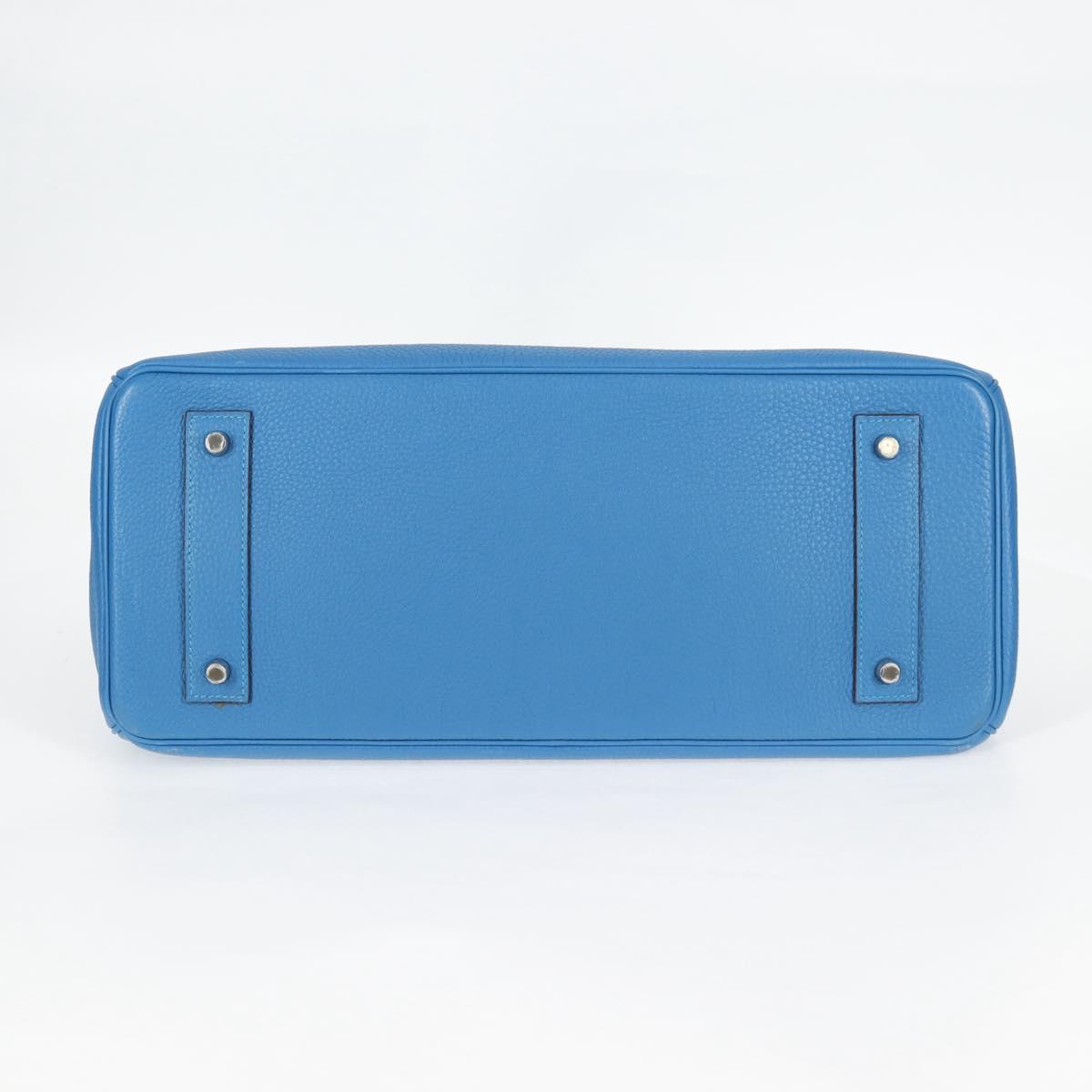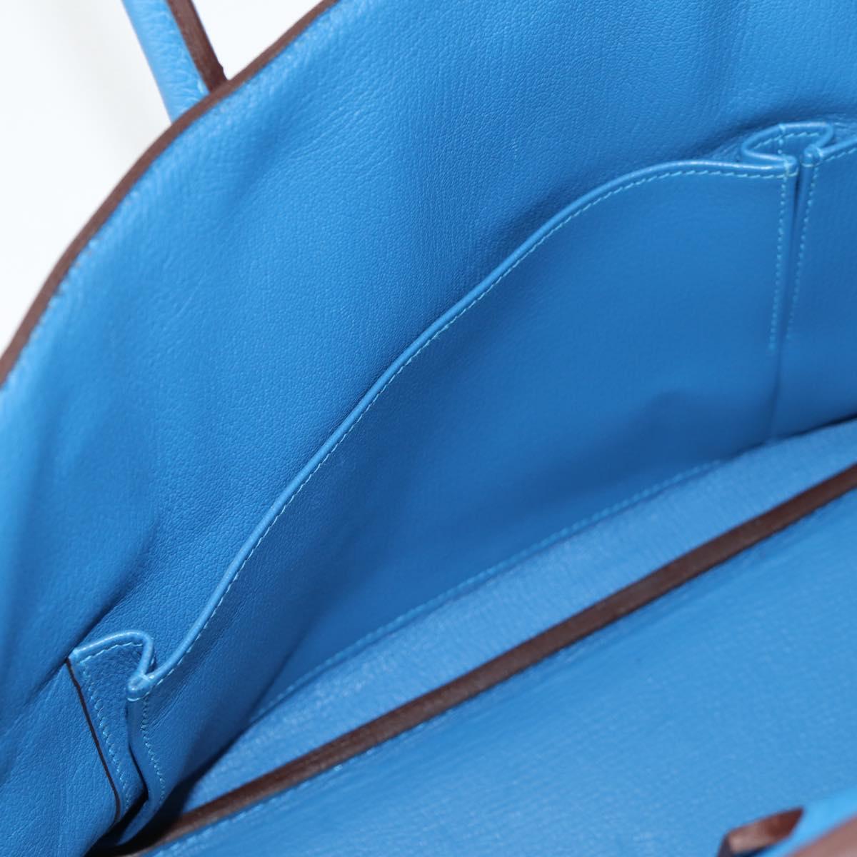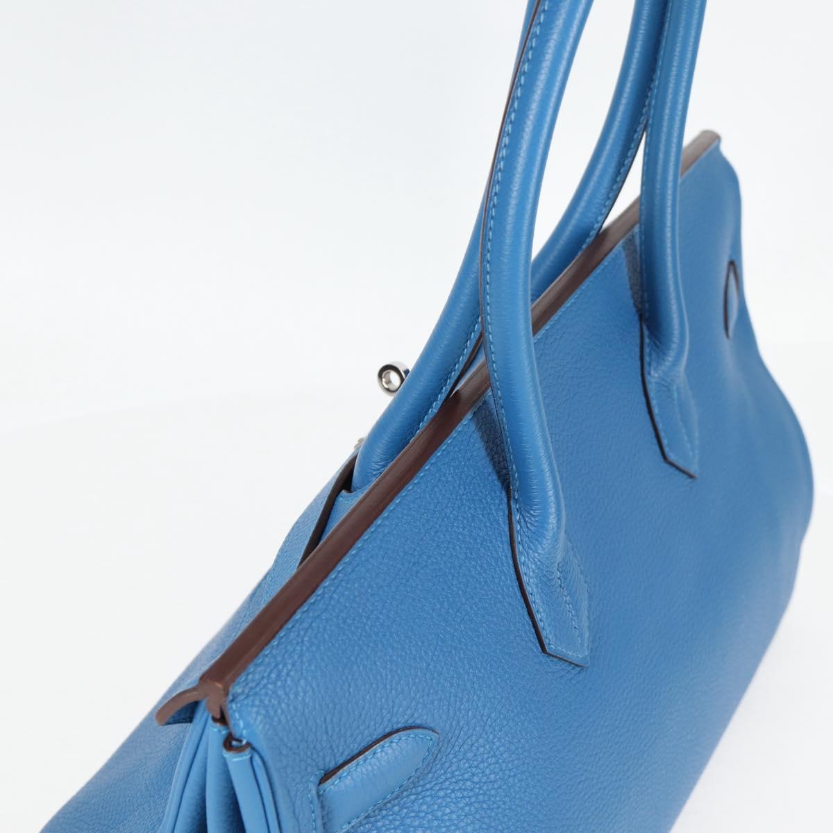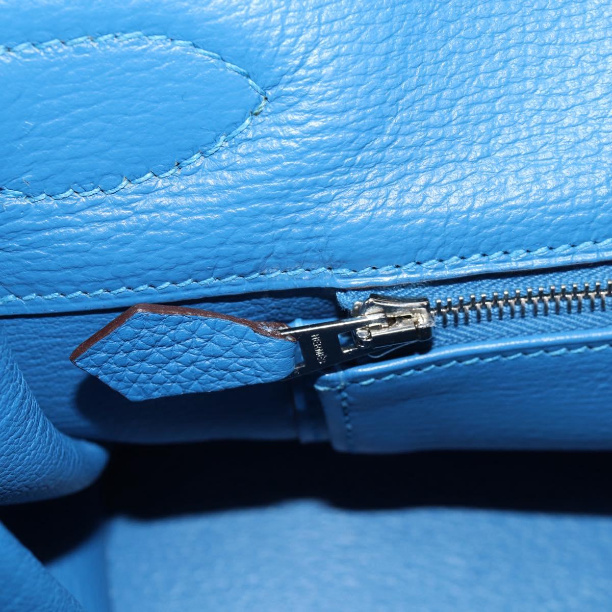 HERMES Birkin 40 Hand Bag Togo leather Blue Silver Auth nb487M