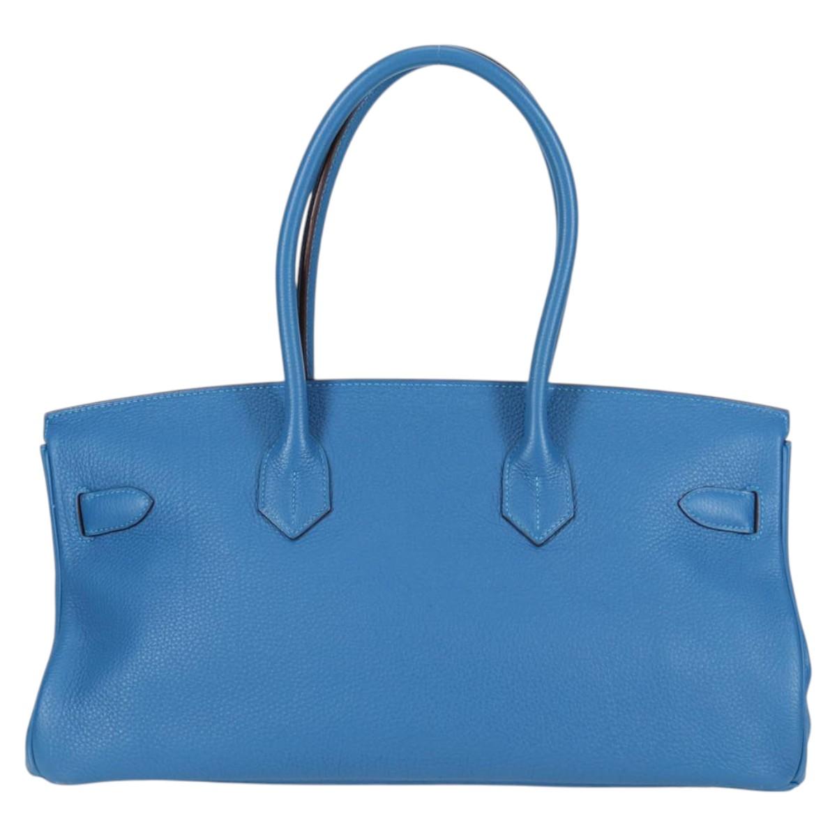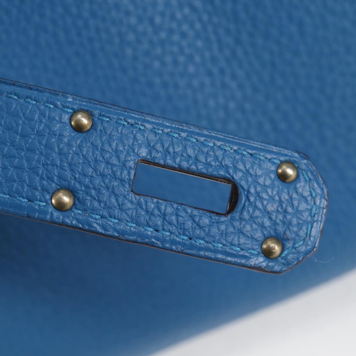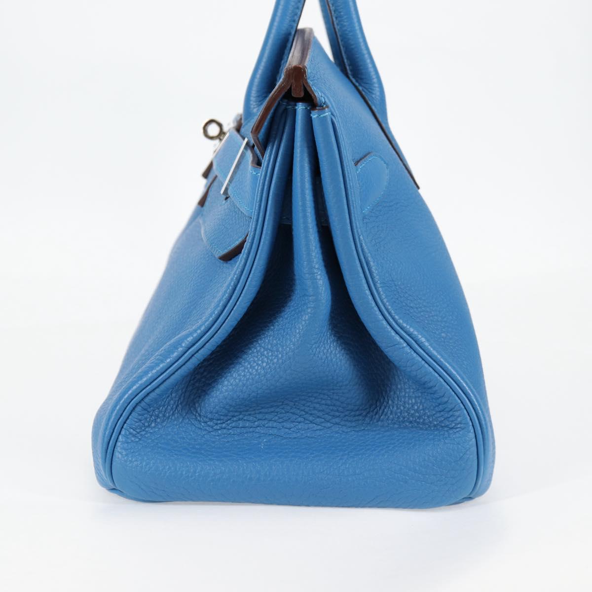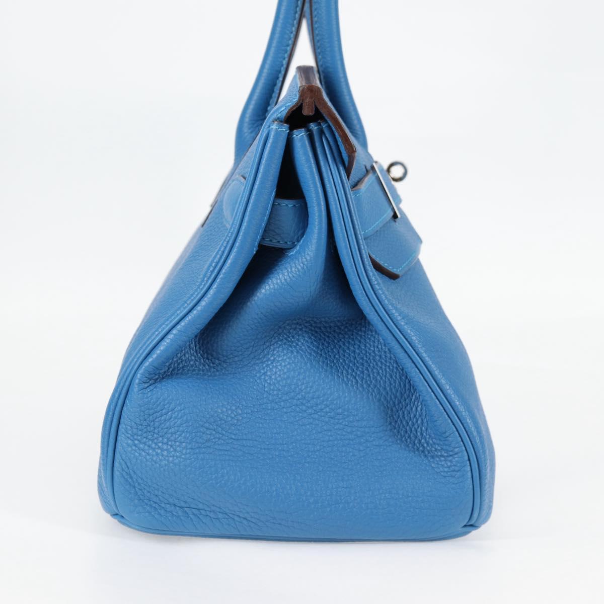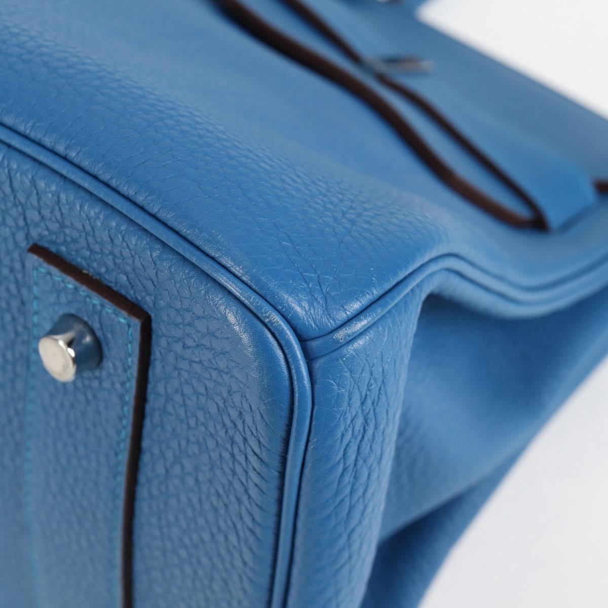 HERMES Birkin 40 Hand Bag Togo leather Blue Silver Auth nb487M