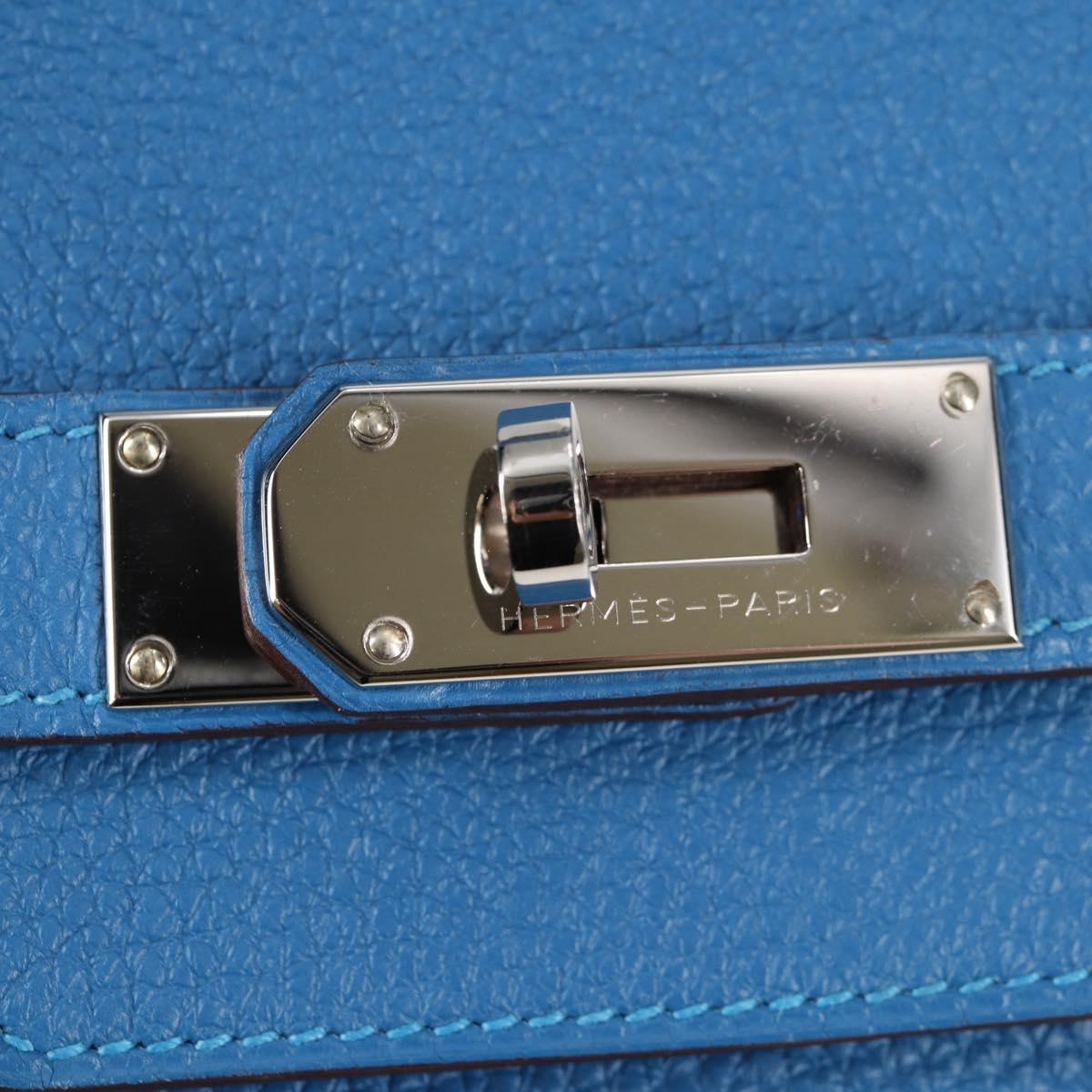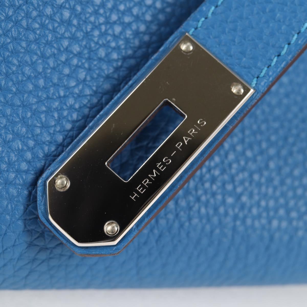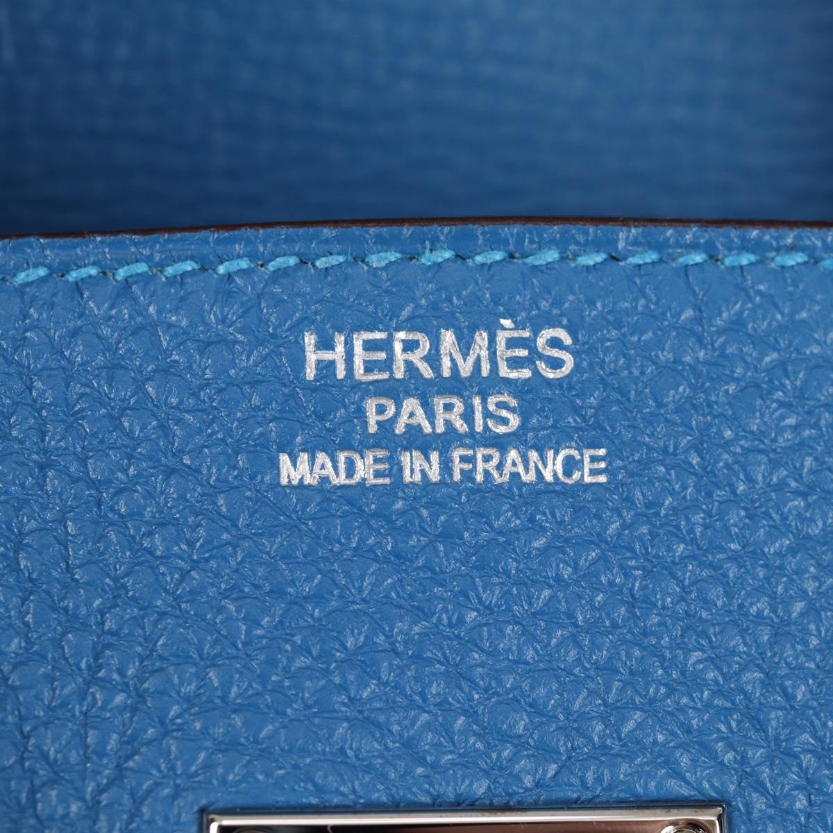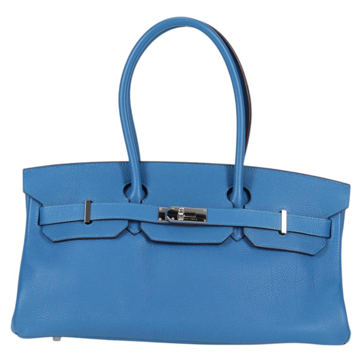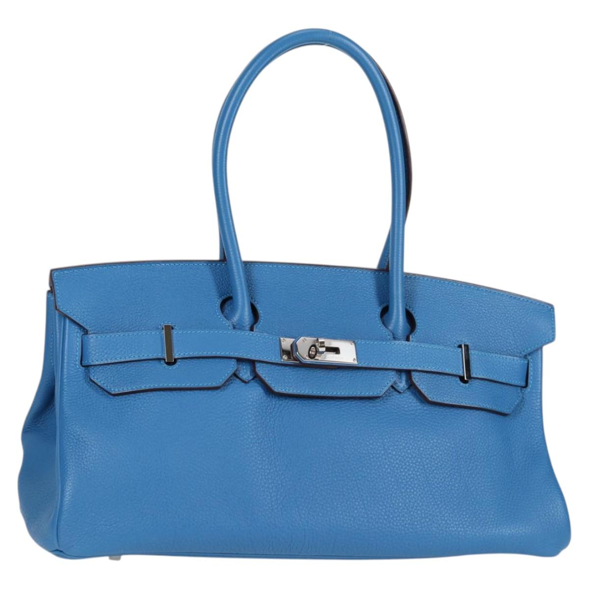 HERMES Birkin 40 Hand Bag Togo leather Blue Silver Auth nb487M