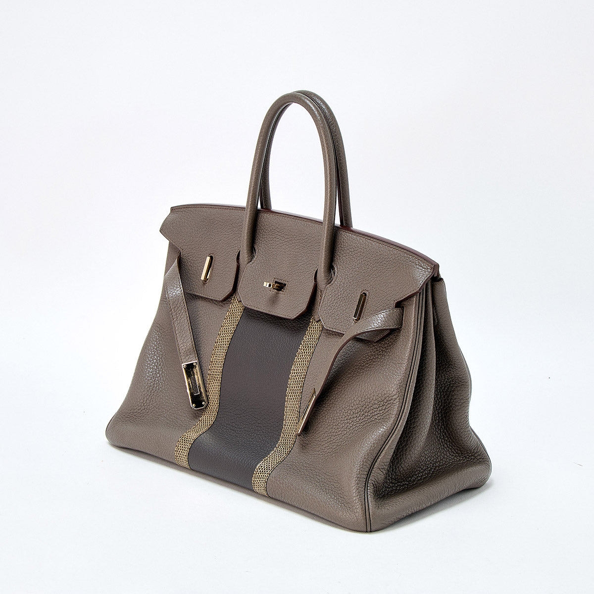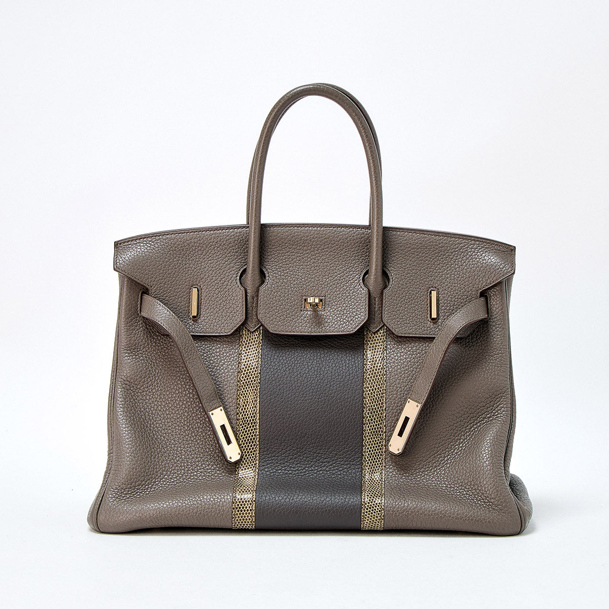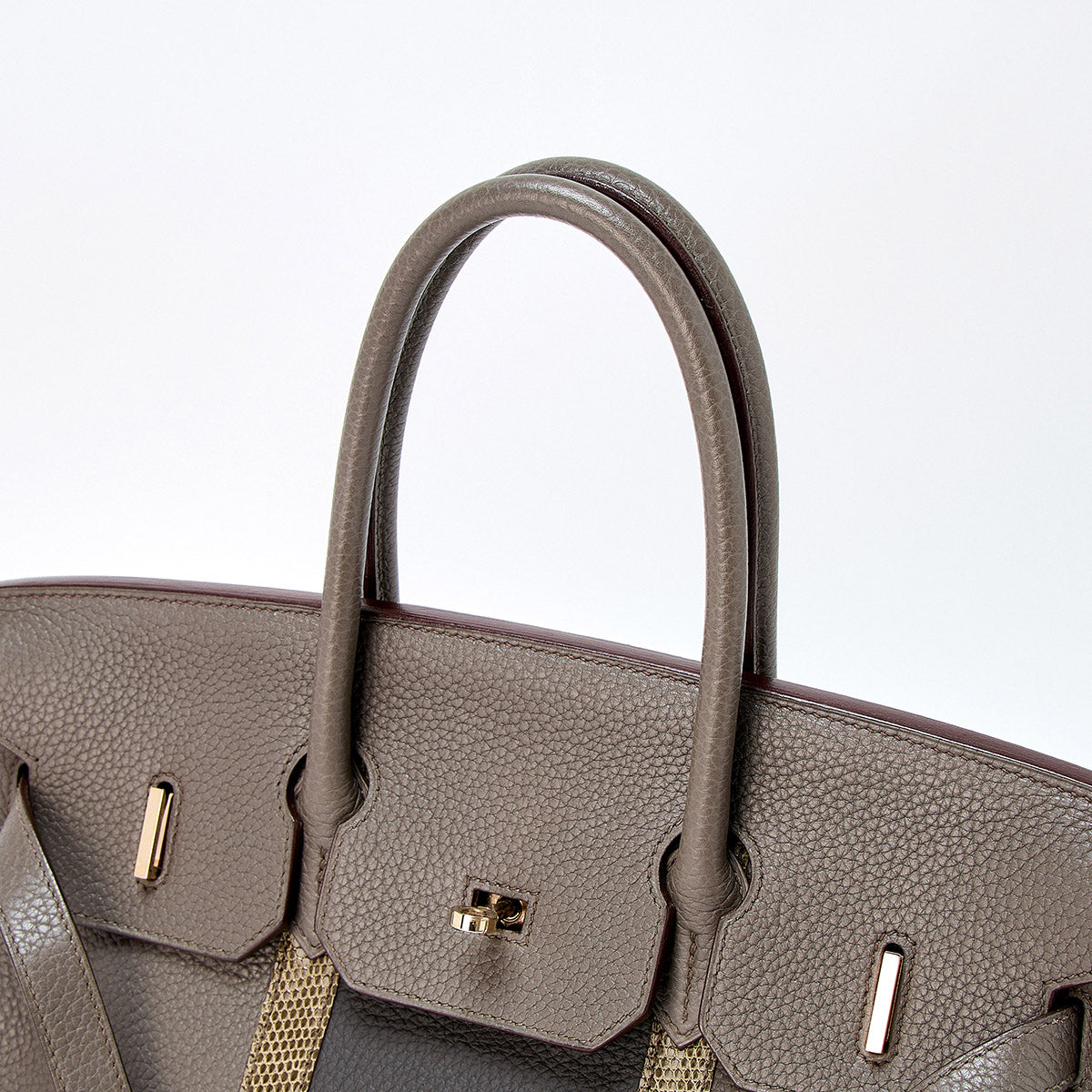 HERMES Birkin Club Hand Bag Ethan Graphite Grey Fonce Gold Taurillon Clemence Auth