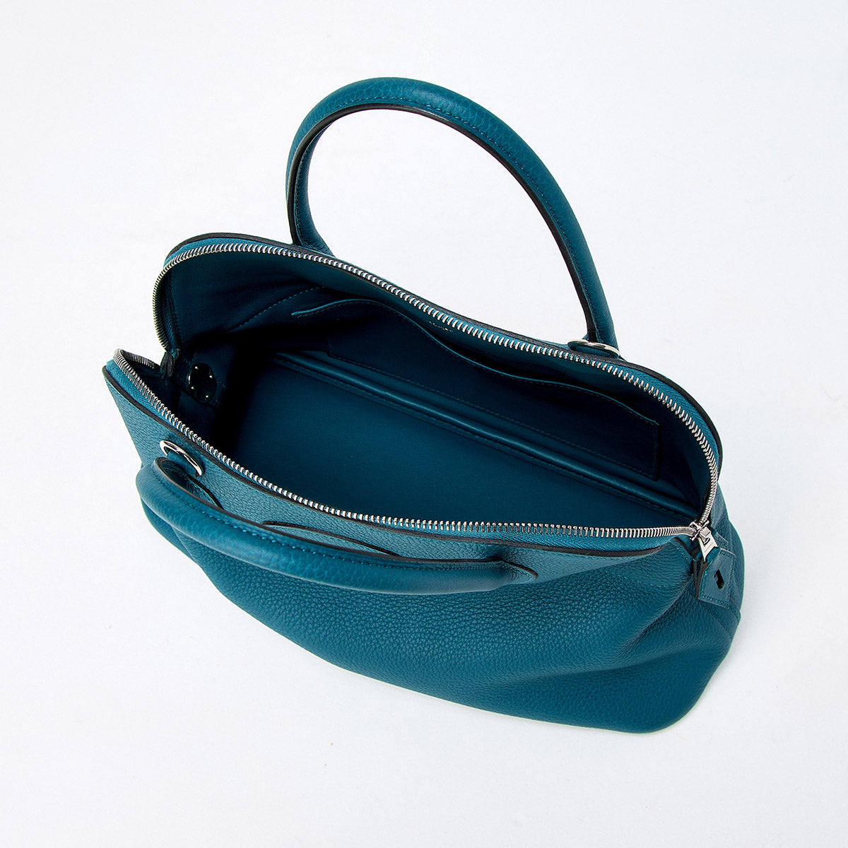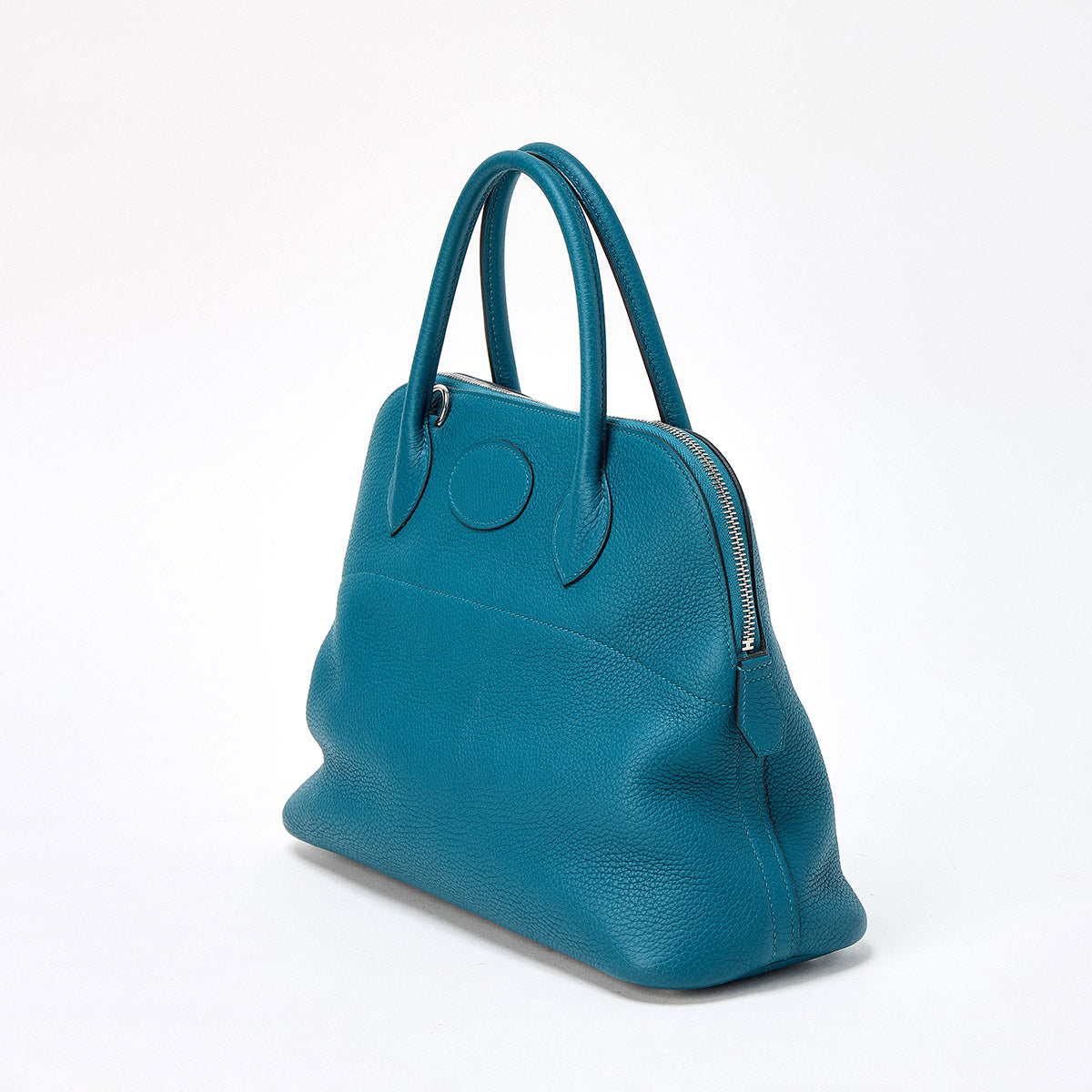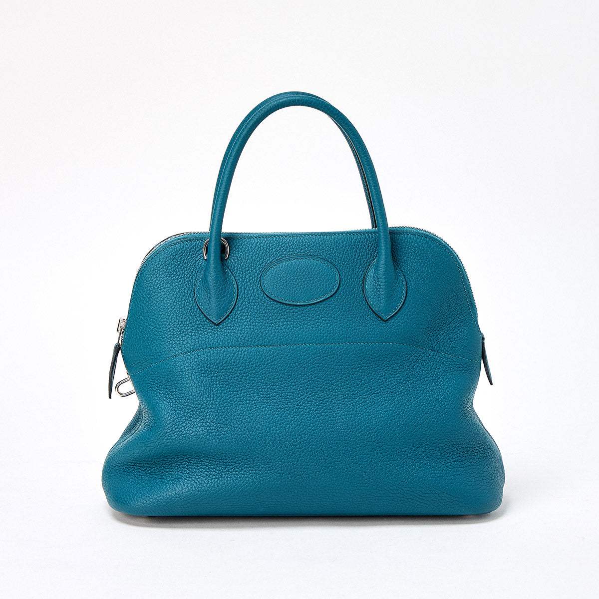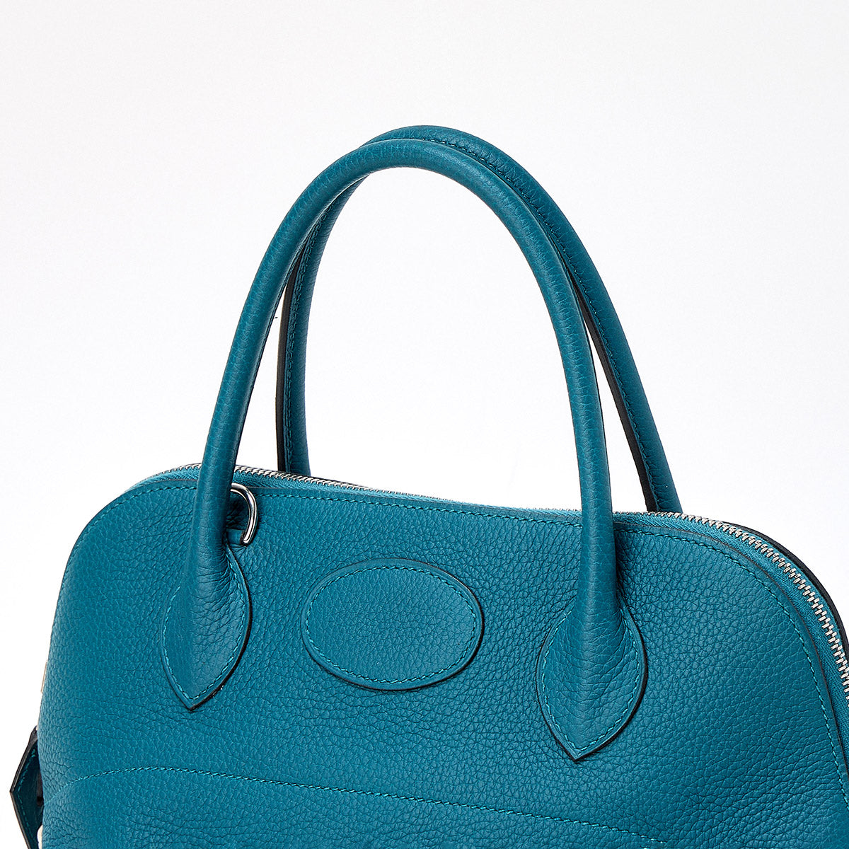 HERMES Bolide 31 2019 D Hand Bag Vert Bosphore Silver Taurillon Clemence Auth