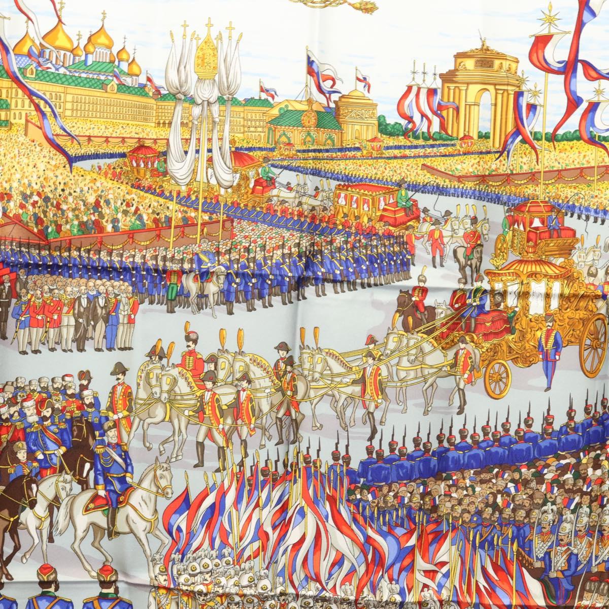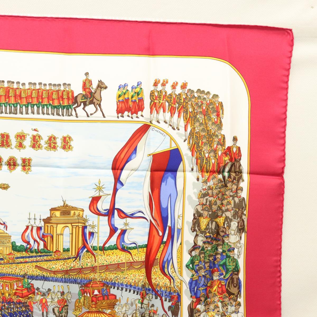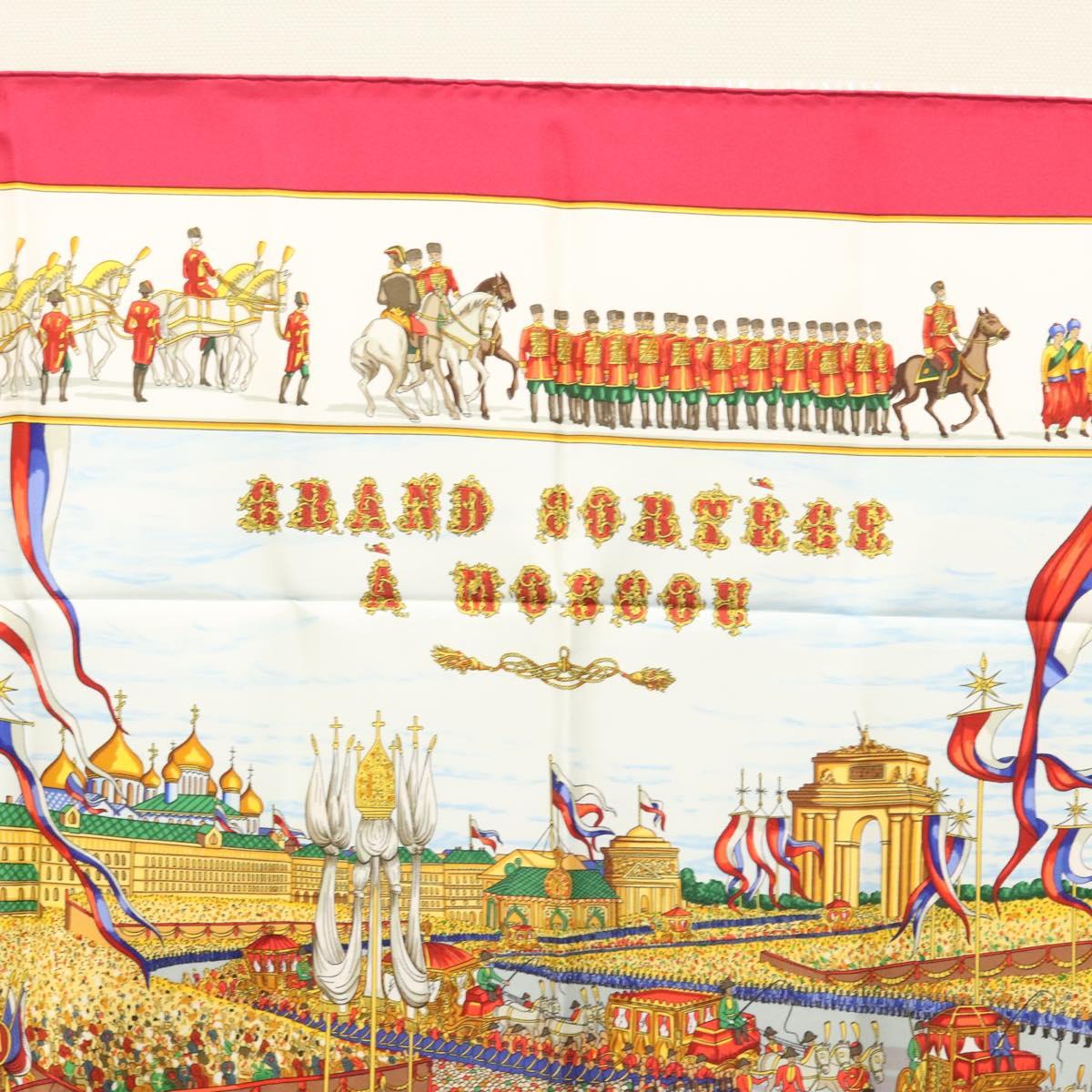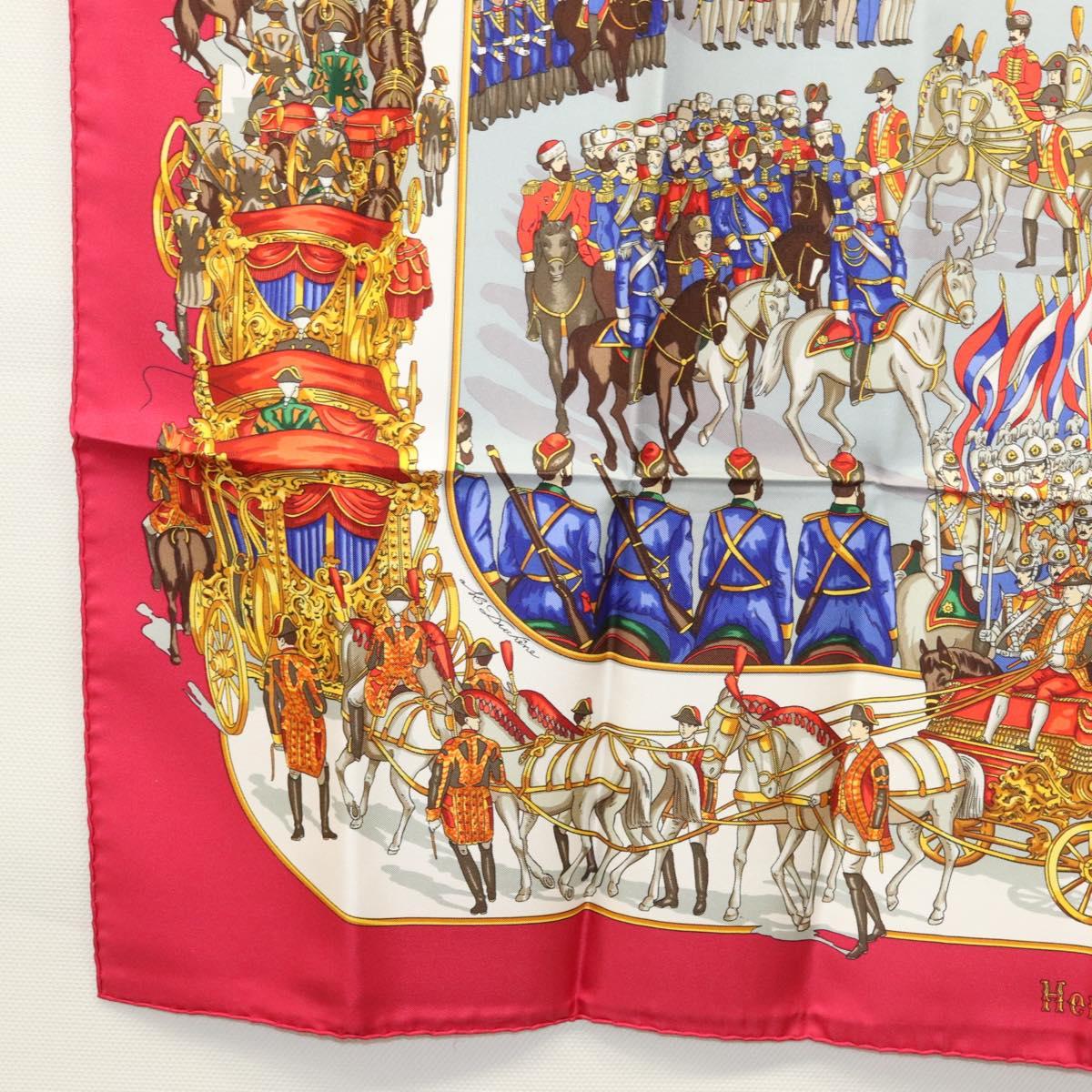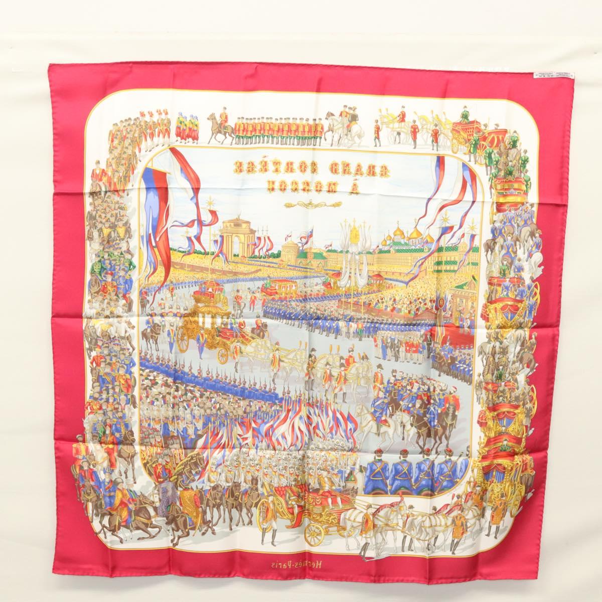 HERMES Carre 90 Scarf ""GRAND CORTEGE A MOSCOU"" Silk Red Auth hk2432