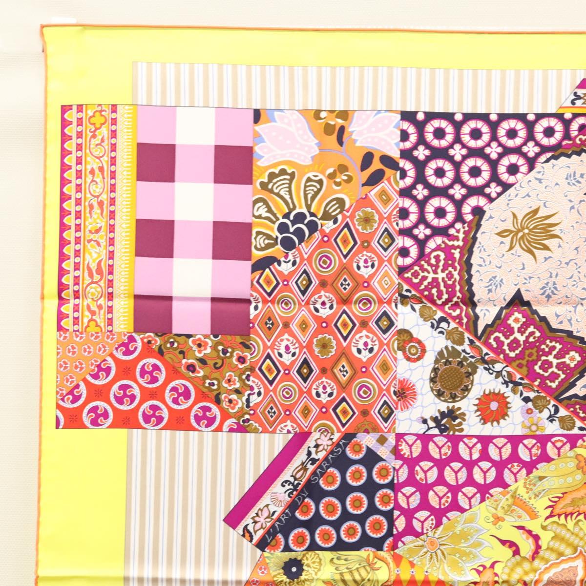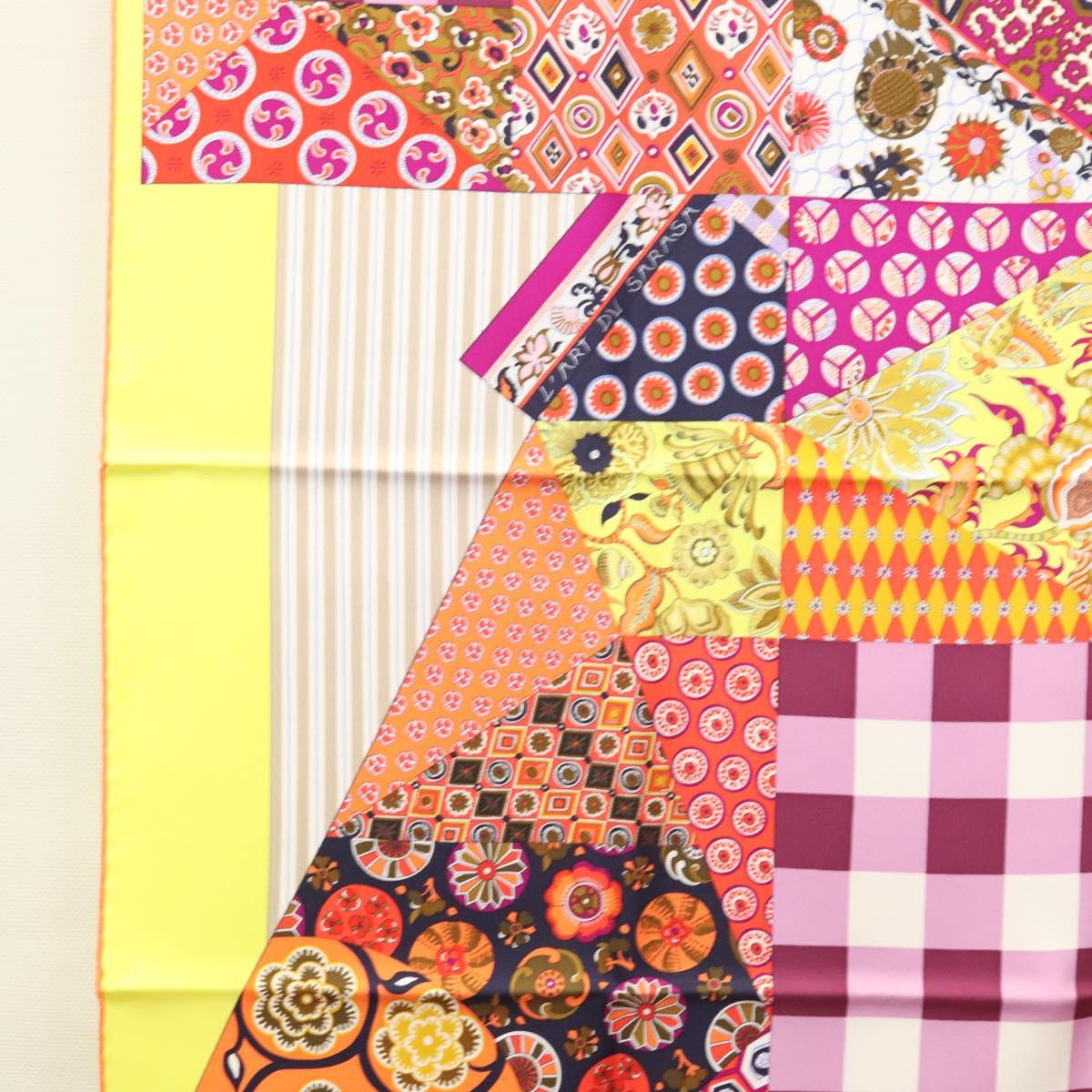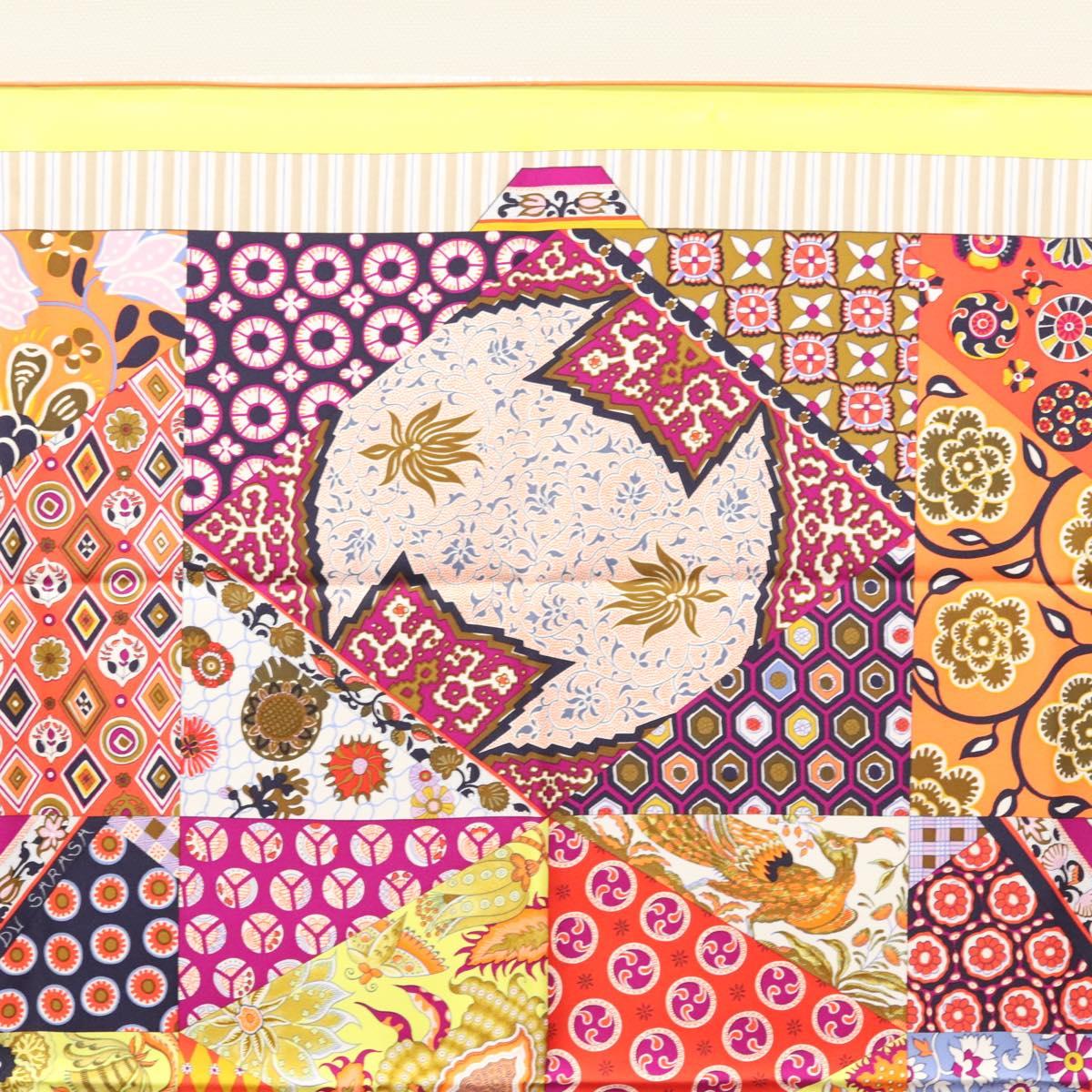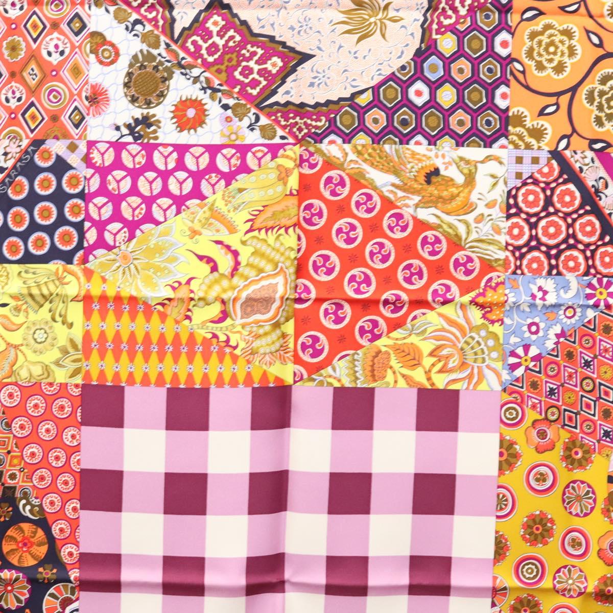 HERMES Carre 90 Scarf ""LArt du Sarasa"" Silk Purple Auth am8277