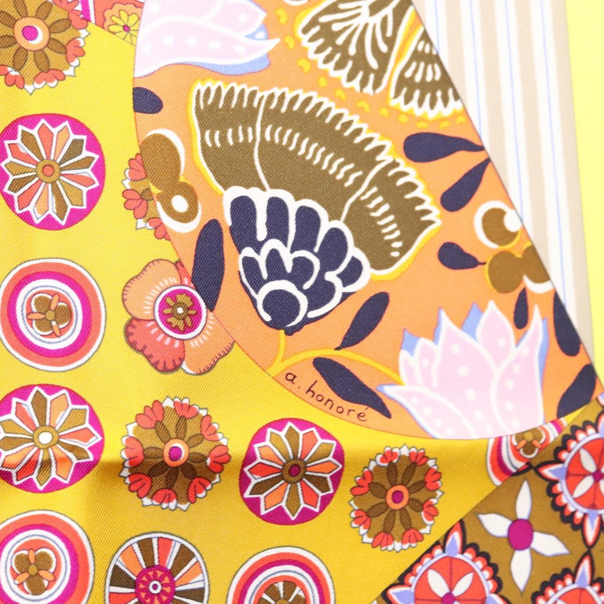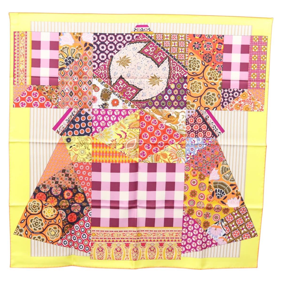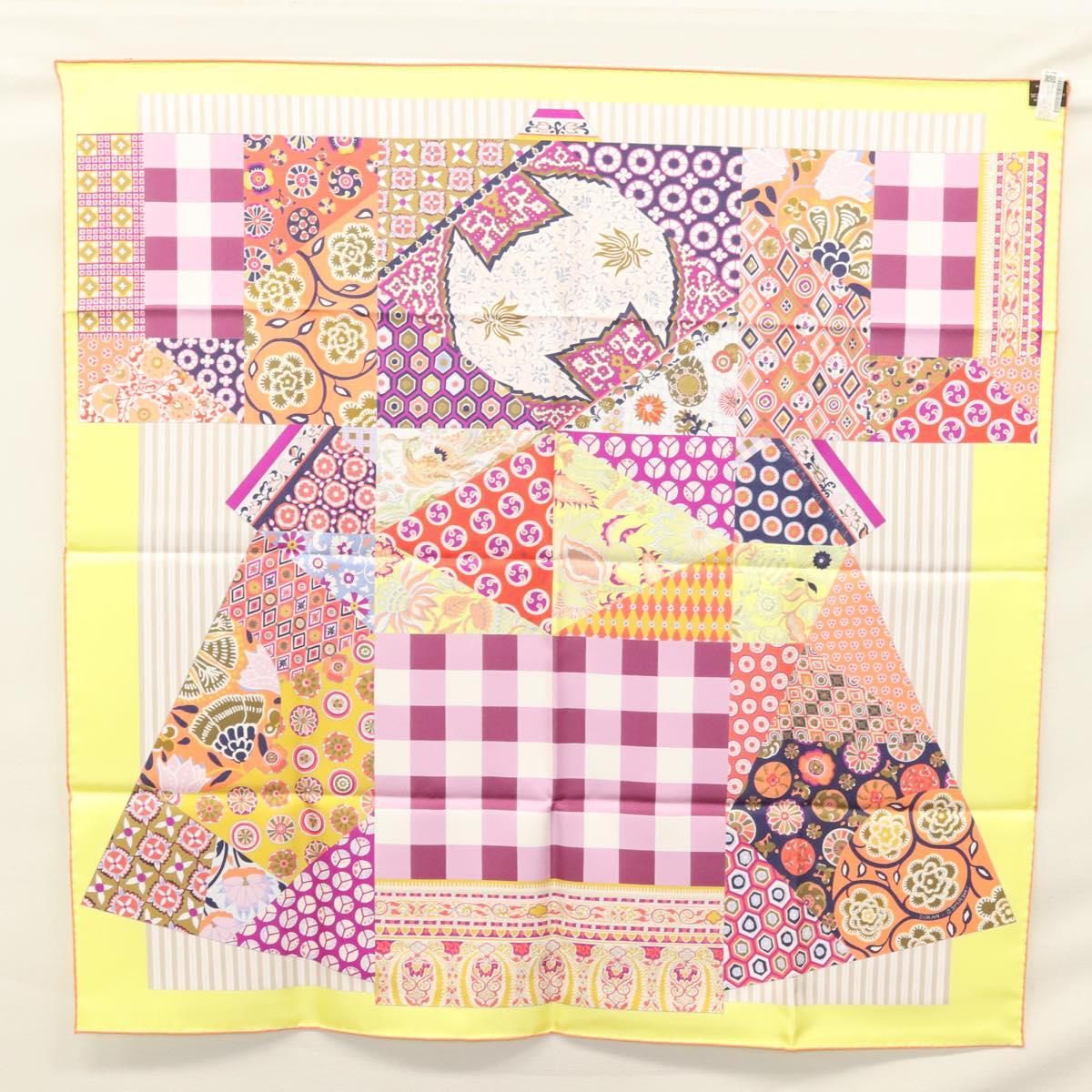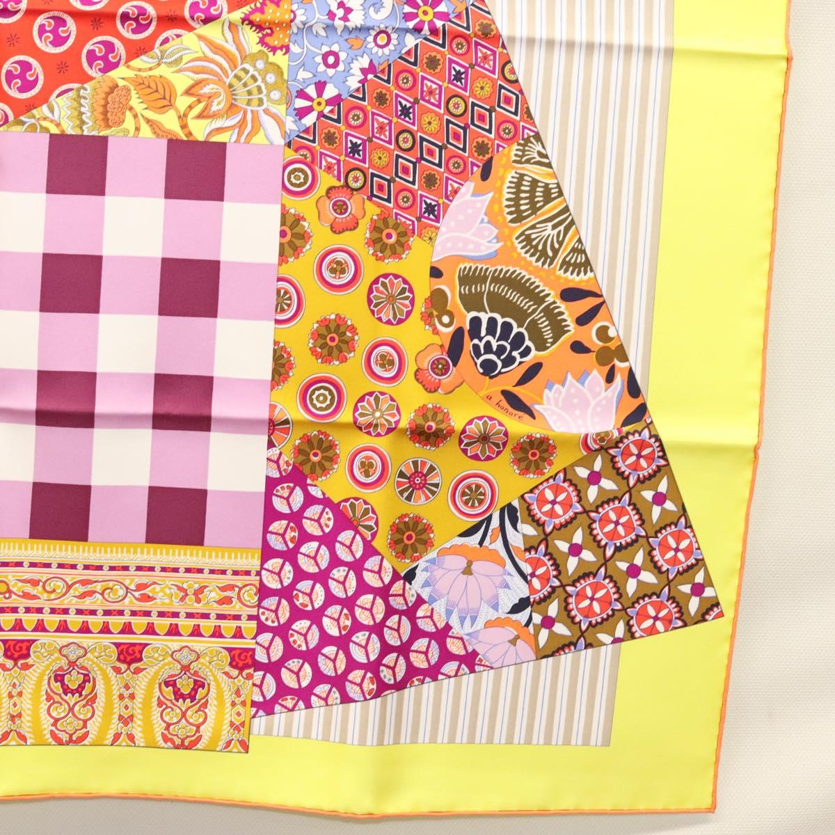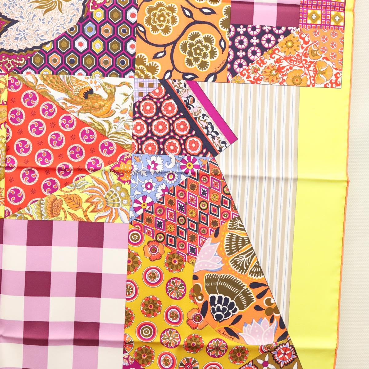 HERMES Carre 90 Scarf ""LArt du Sarasa"" Silk Purple Auth am8277