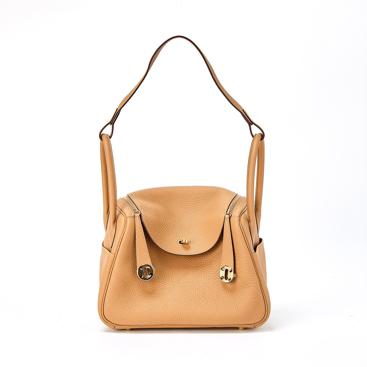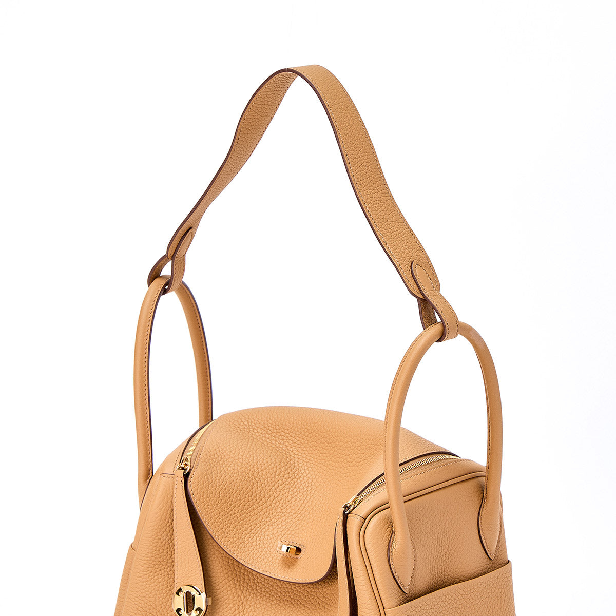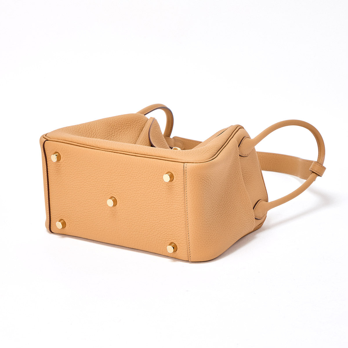 HERMES Lindy 26 2022 U Shoulder Bag Biscuit Gold Taurillon Clemence Auth