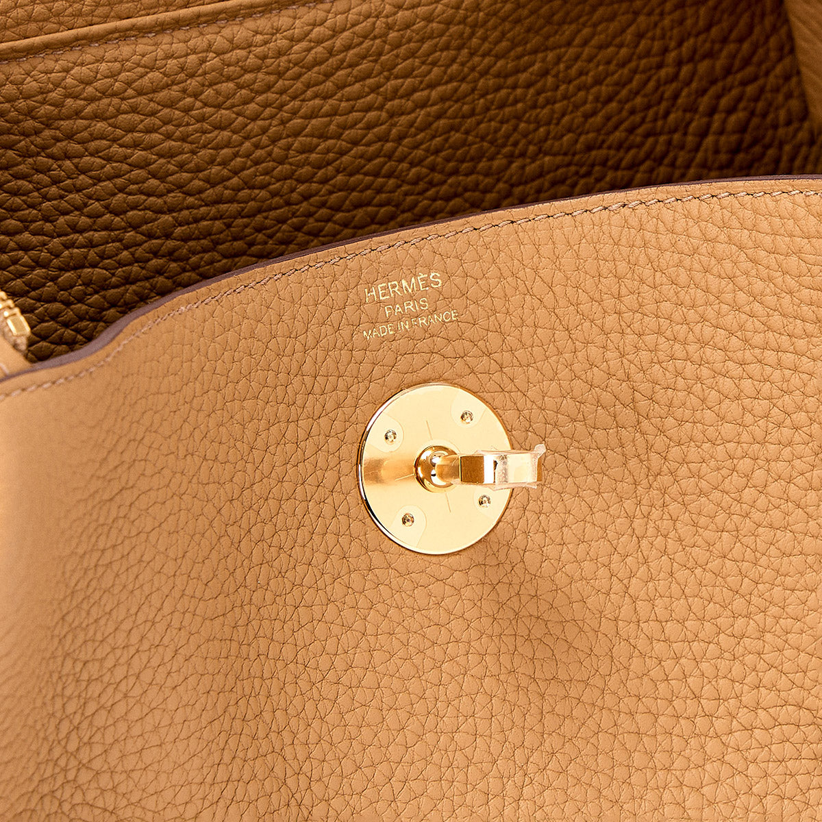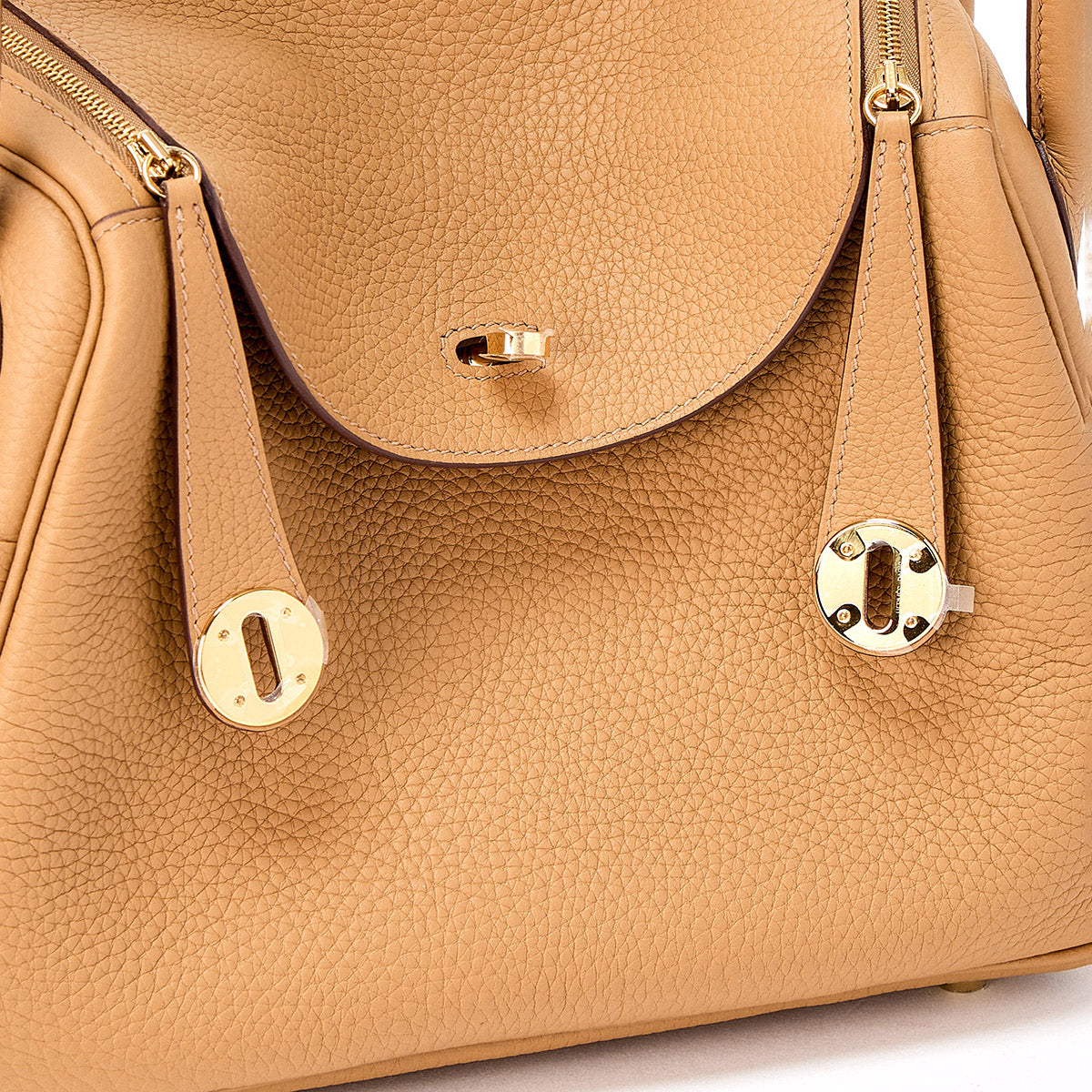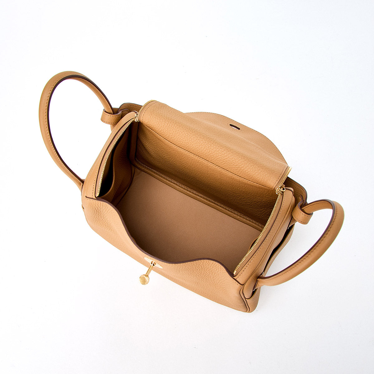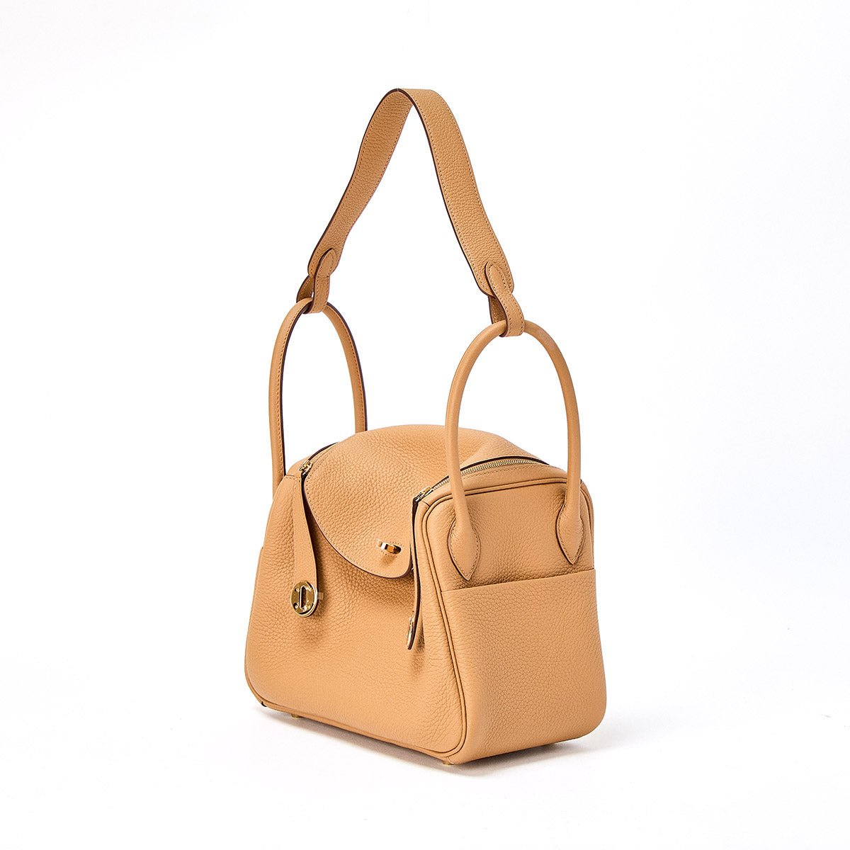 HERMES Lindy 26 2022 U Shoulder Bag Biscuit Gold Taurillon Clemence Auth