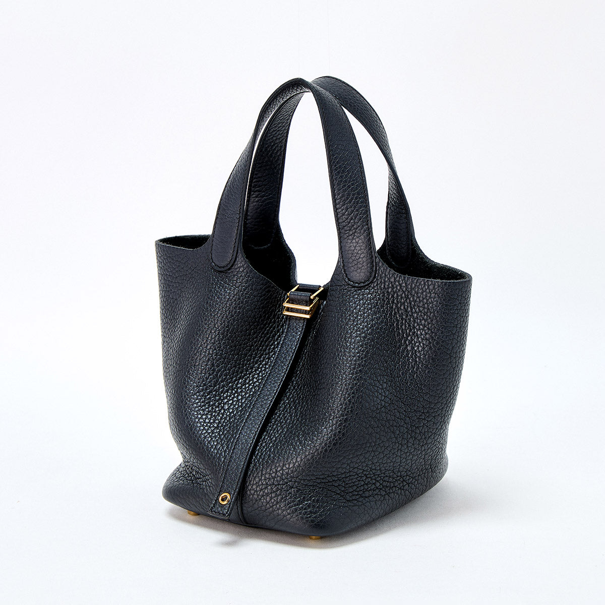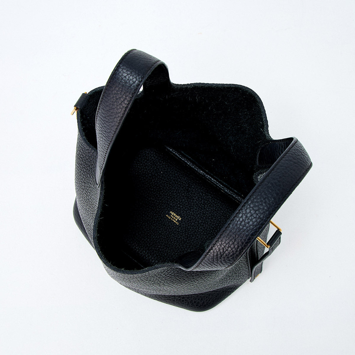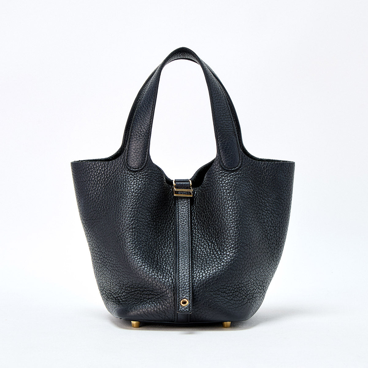 HERMES Picotin Lock PM 2022 U Hand Bag Black Gold Taurillon Clemence Auth