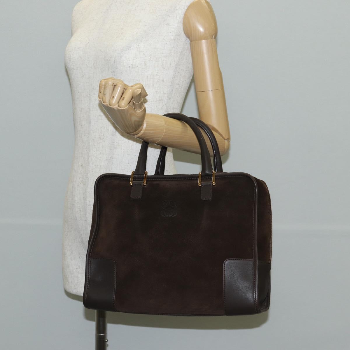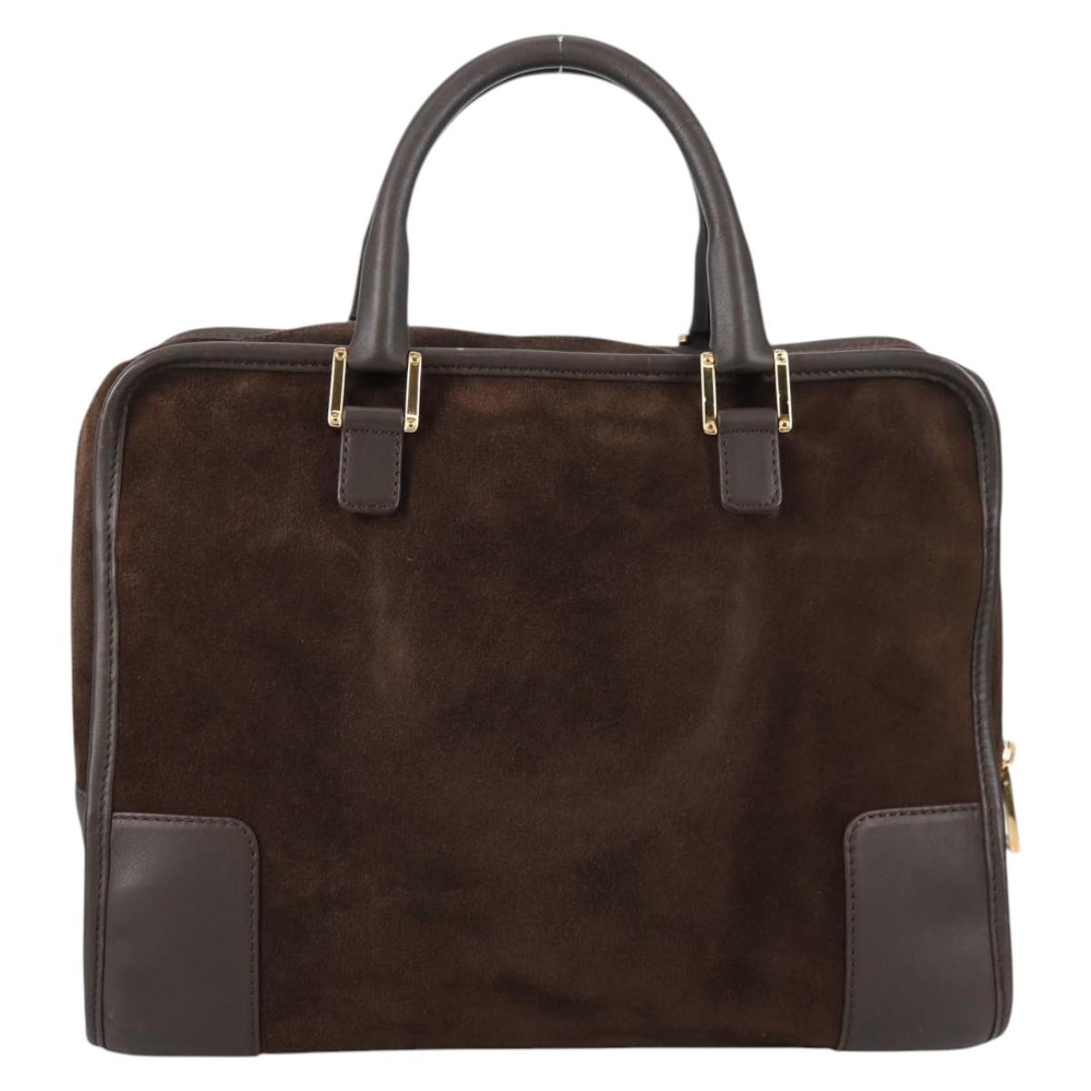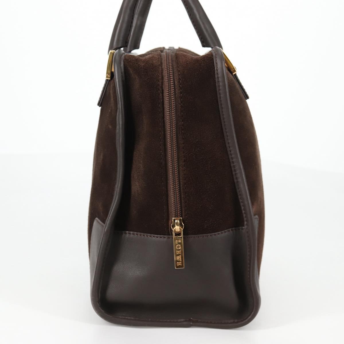 LOEWE Anagram Amazona 32 Hand Bag Suede Brown Gold Auth SW1511V