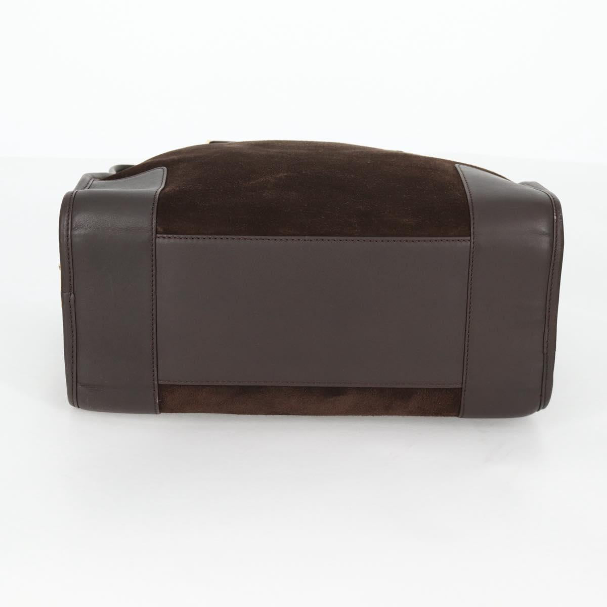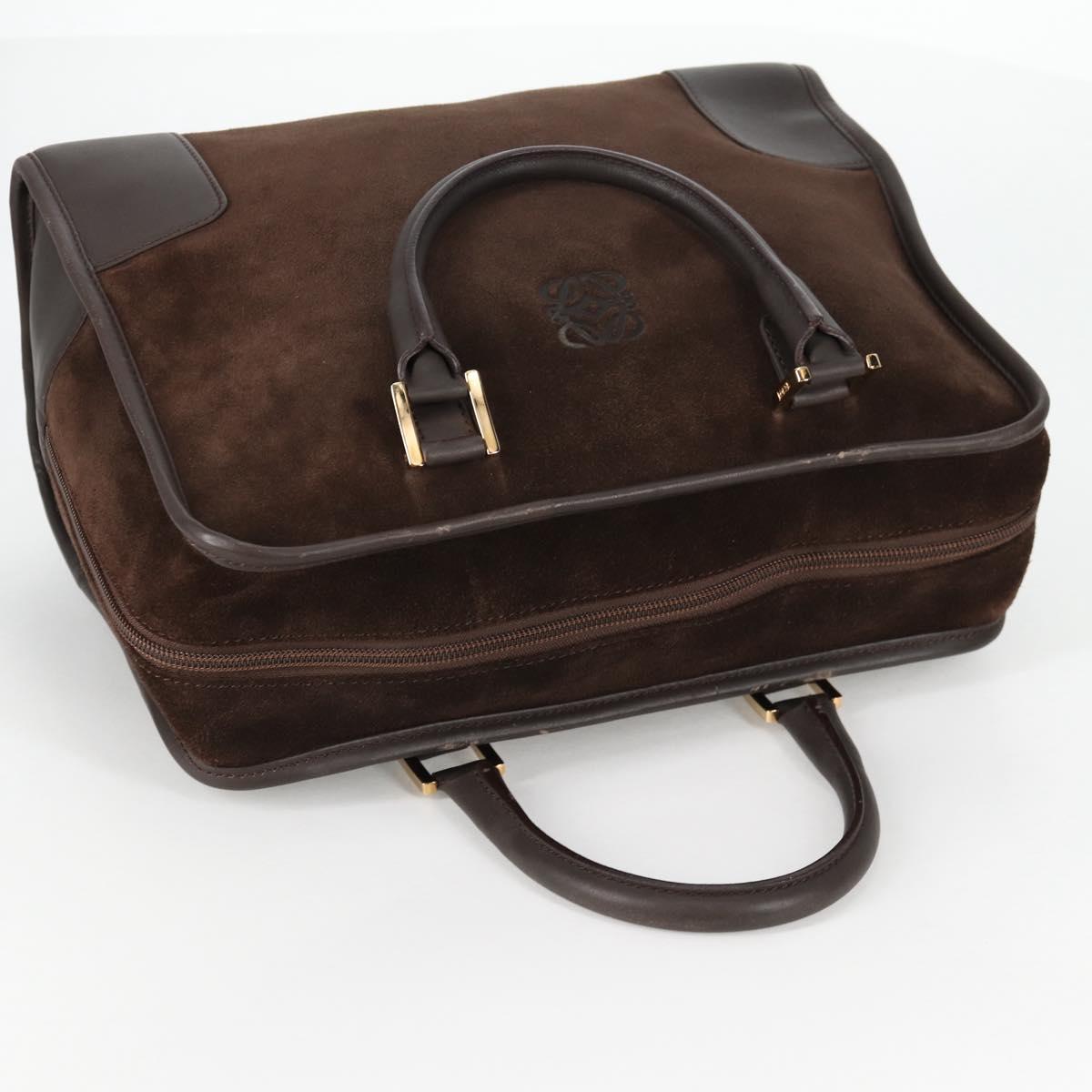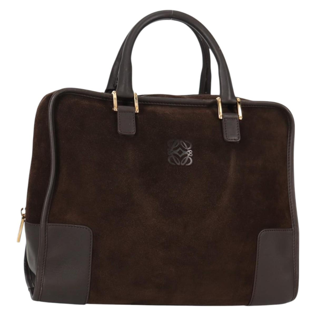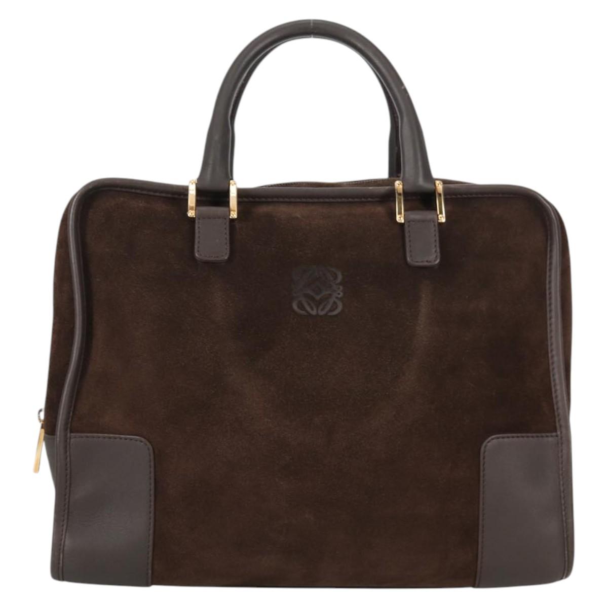 LOEWE Anagram Amazona 32 Hand Bag Suede Brown Gold Auth SW1511V