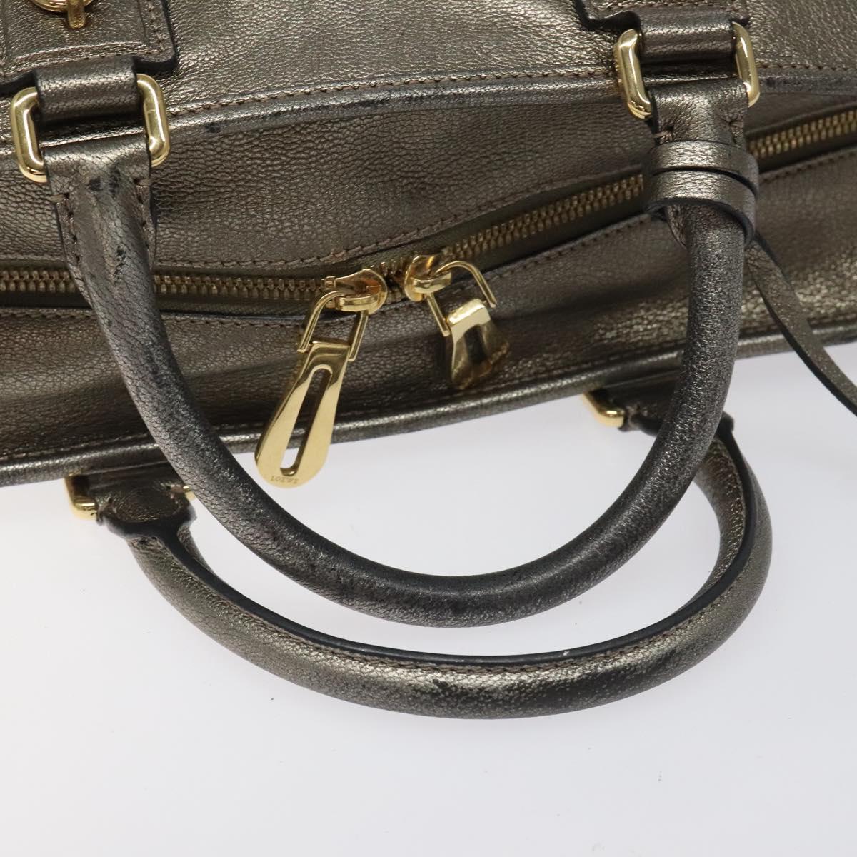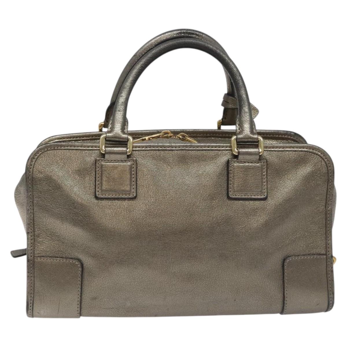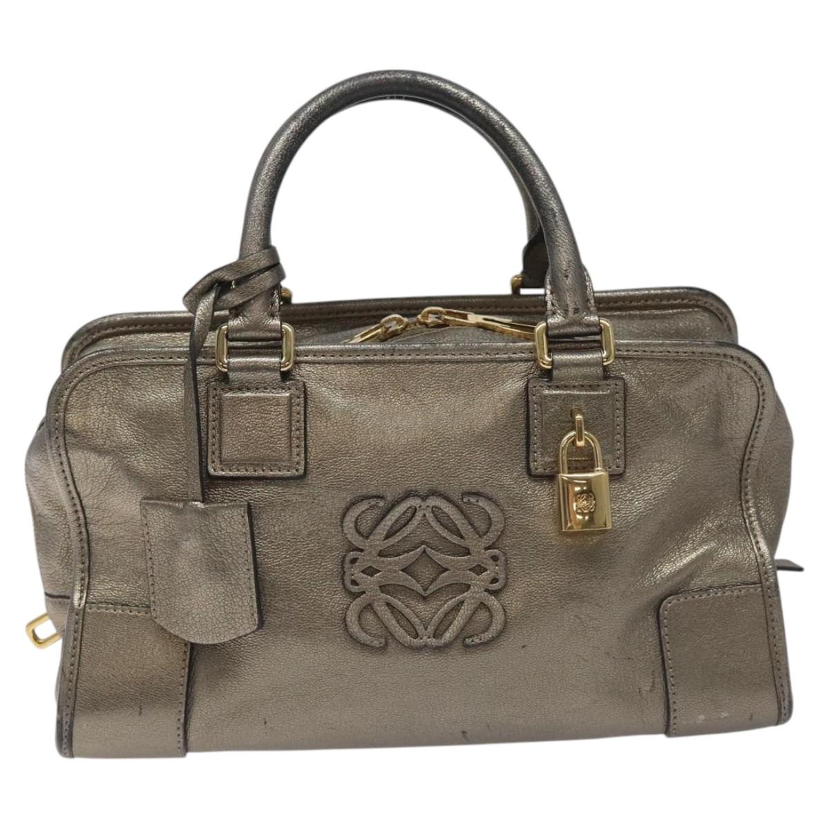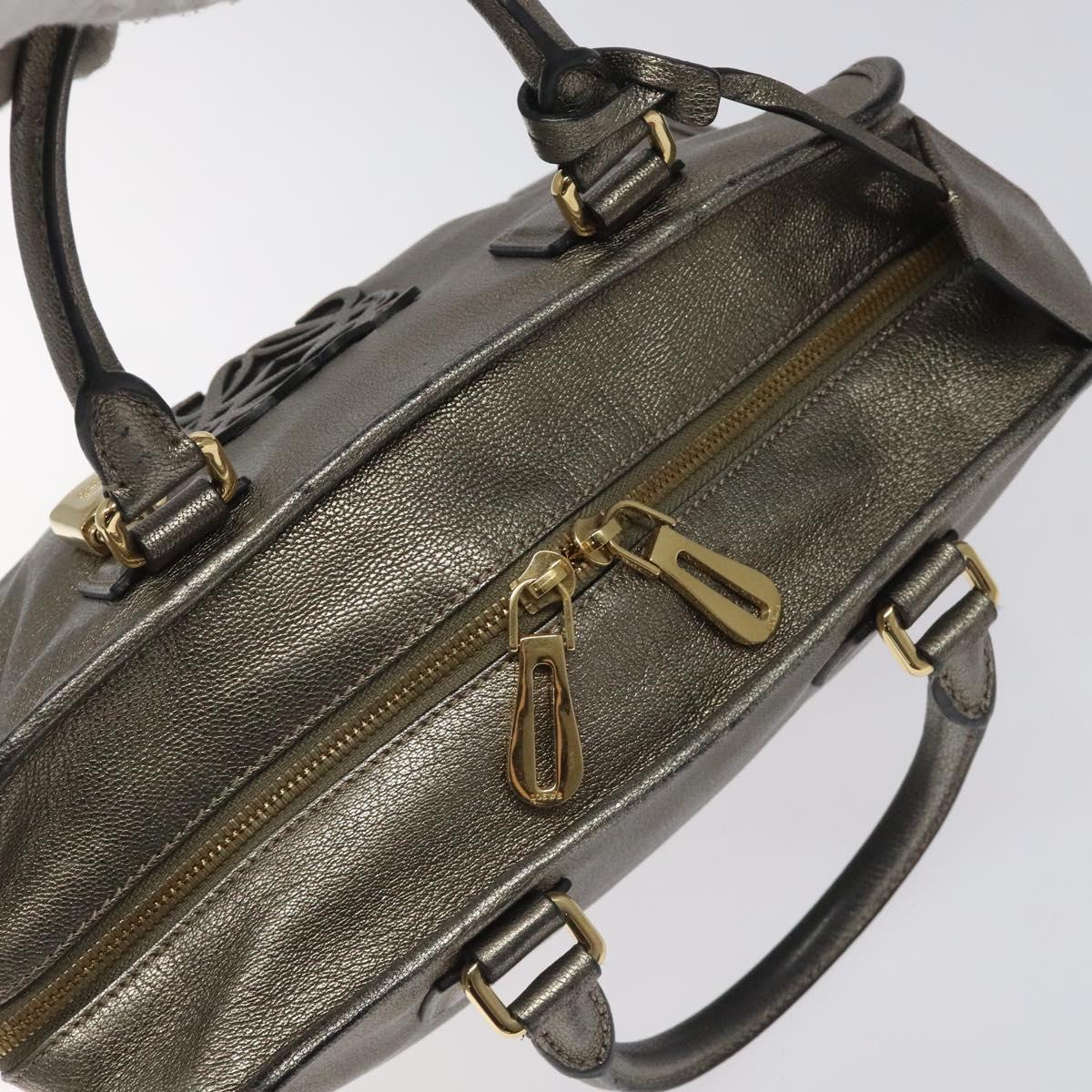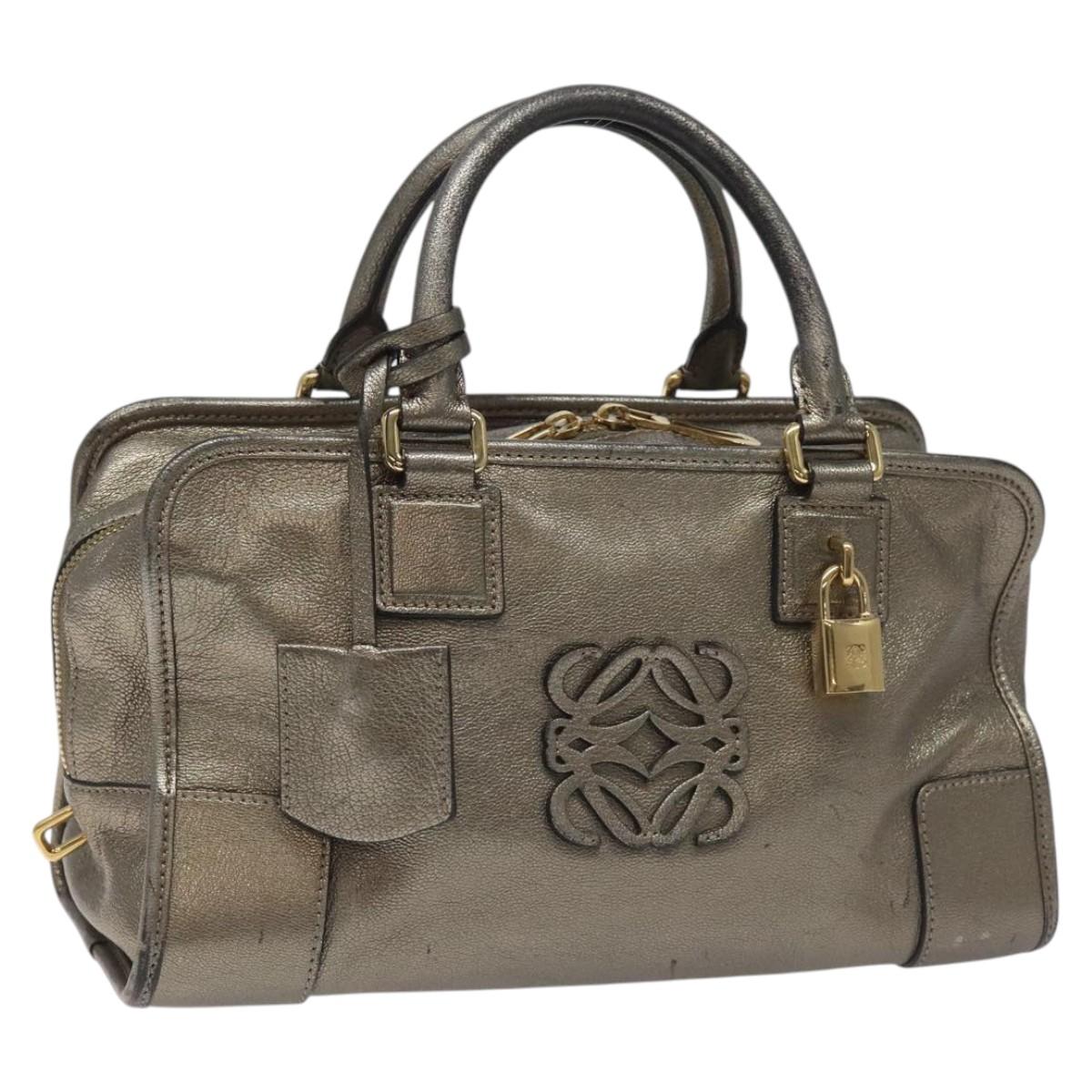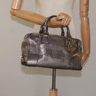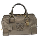 LOEWE Anagram Americana 28 Hand Bag Leather Silver Auth 114115V