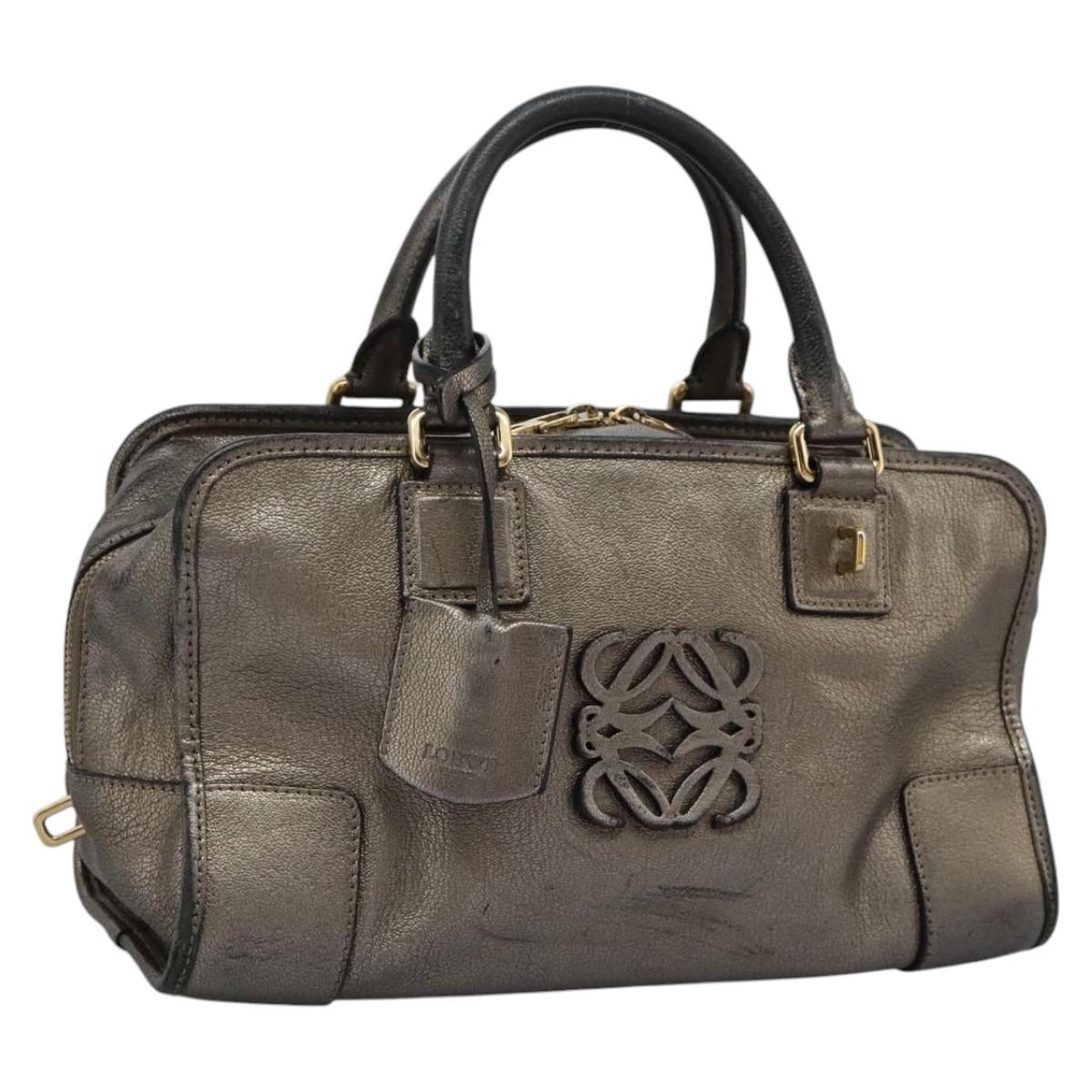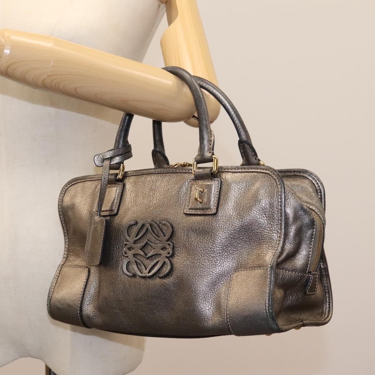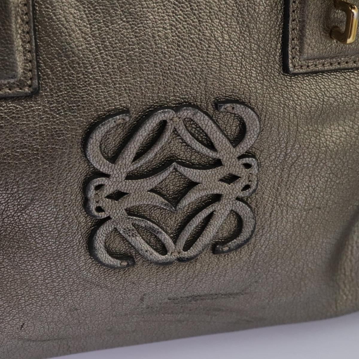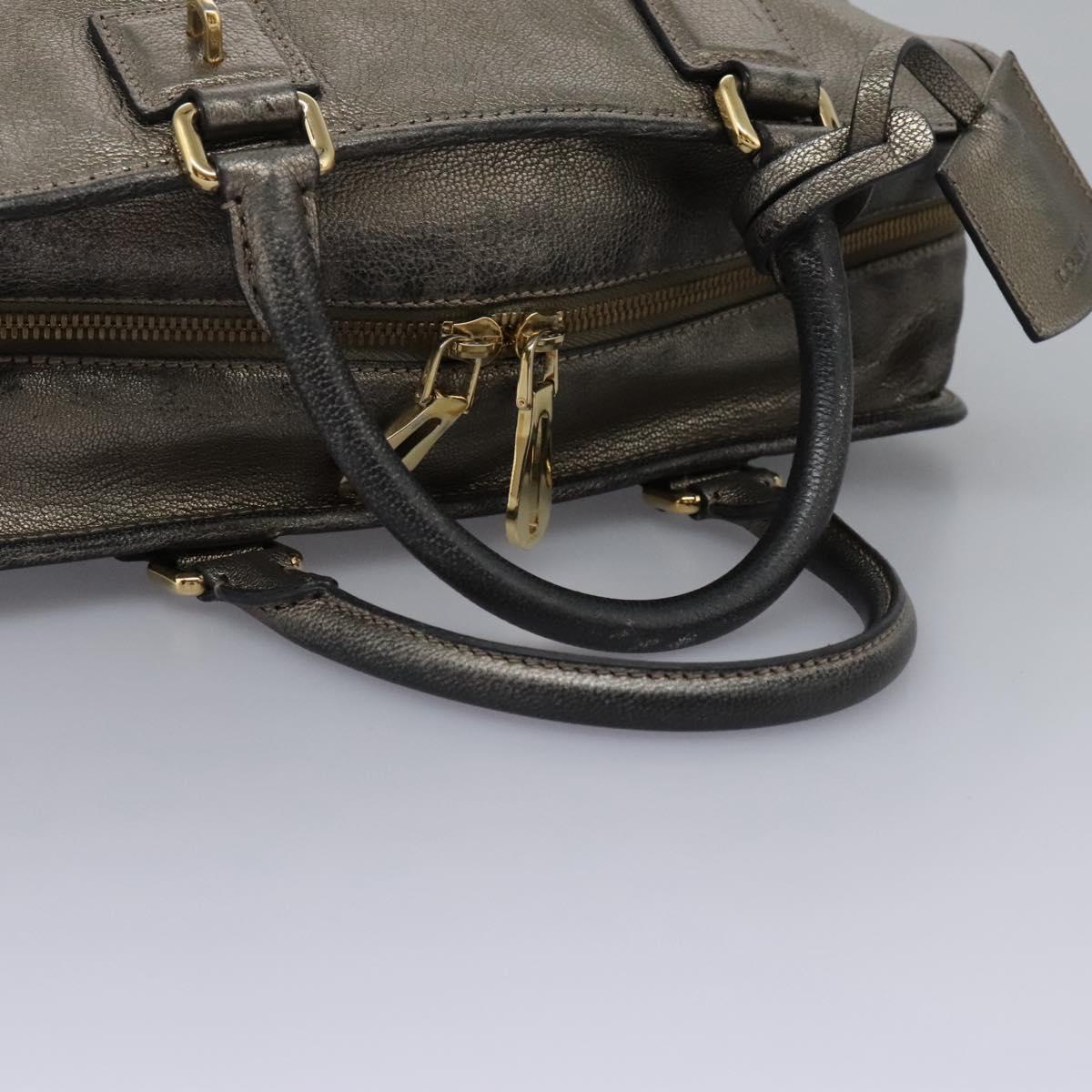 LOEWE Anagram Americana 28 Hand Bag Leather Silver Auth ep7345V
