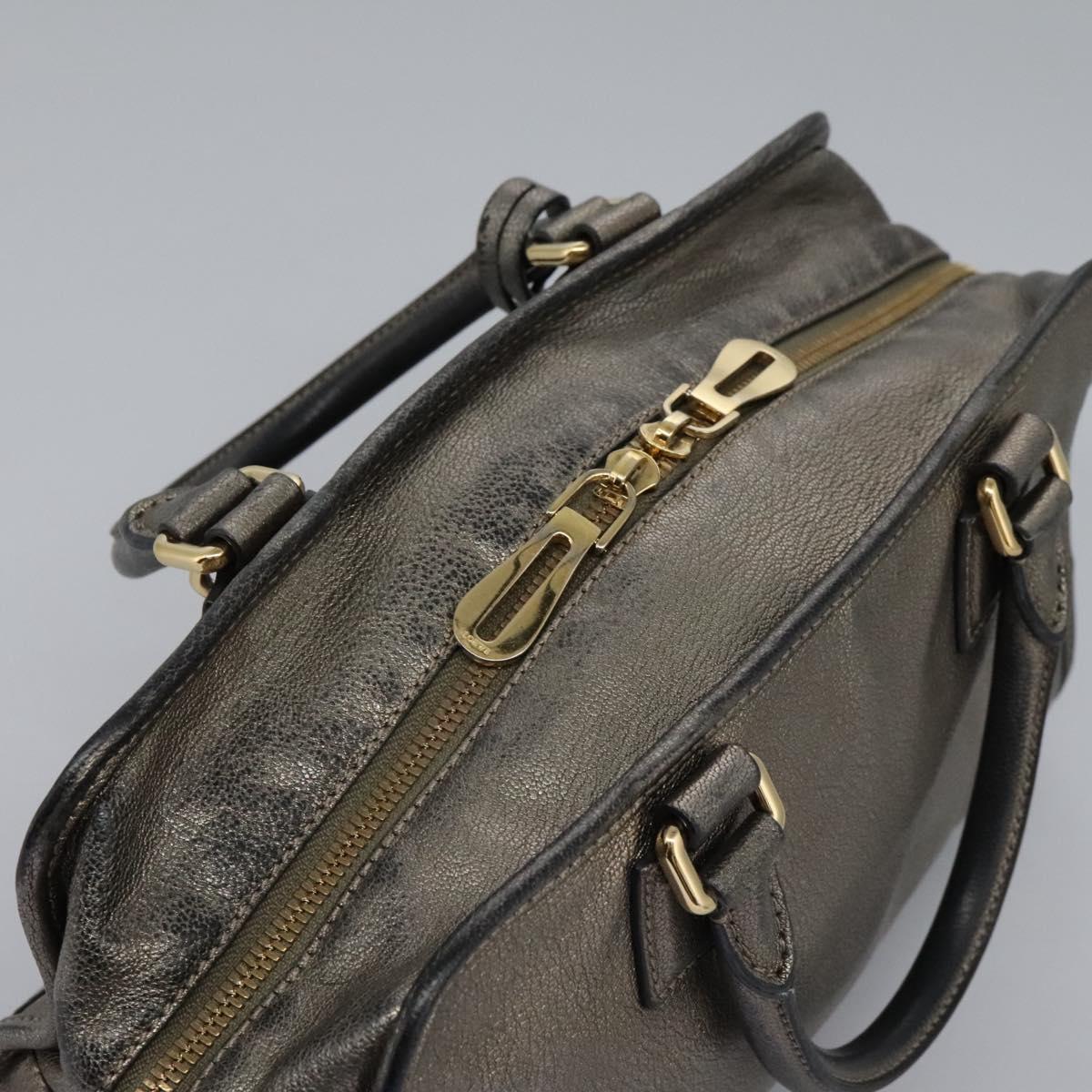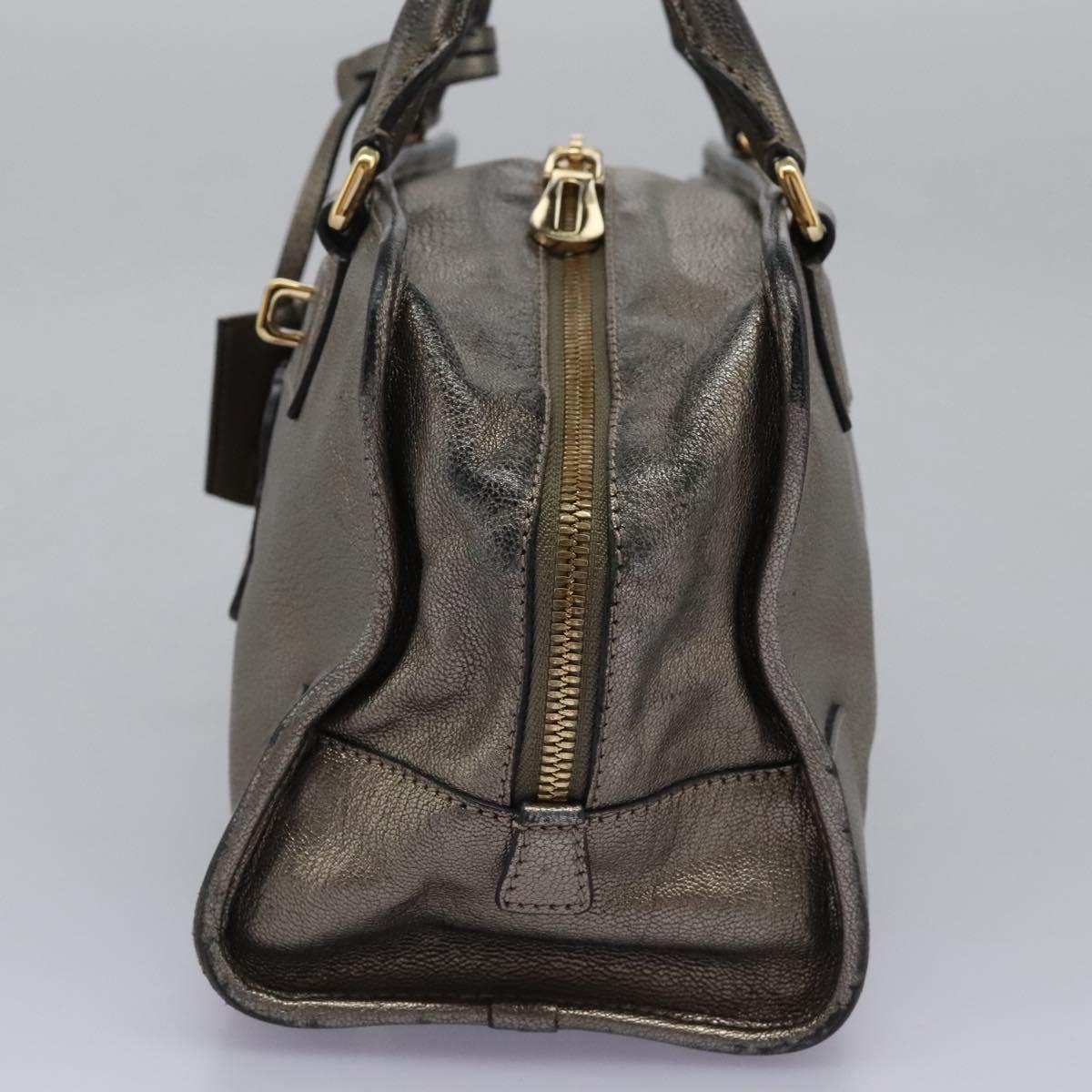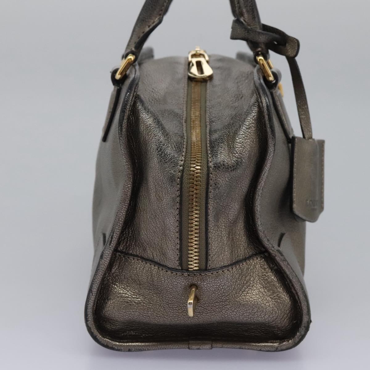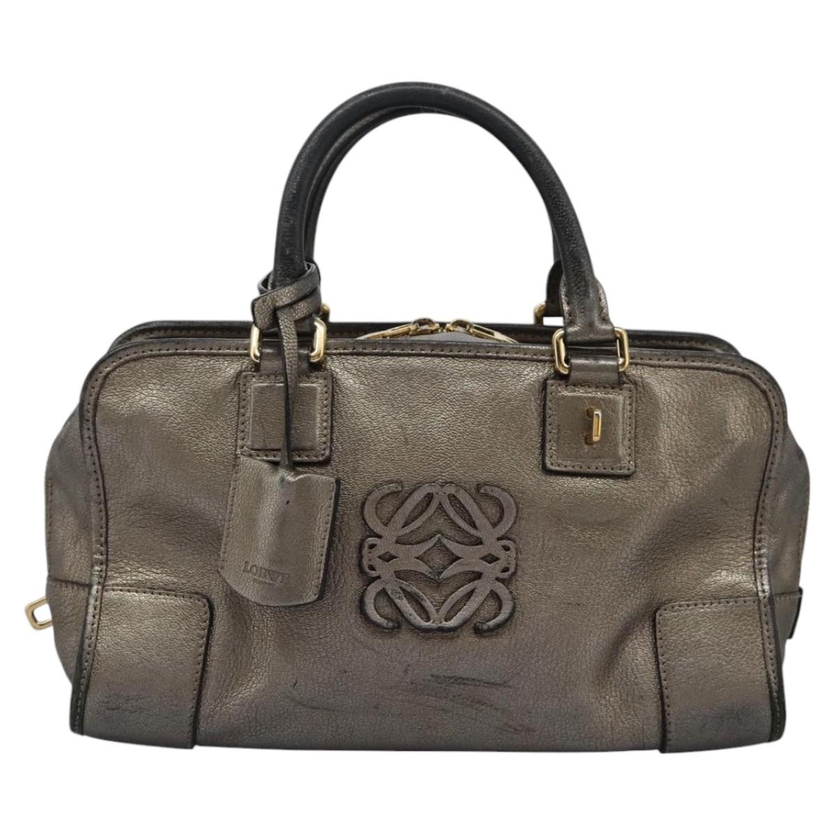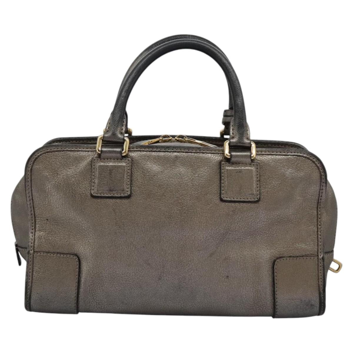 LOEWE Anagram Americana 28 Hand Bag Leather Silver Auth ep7345V