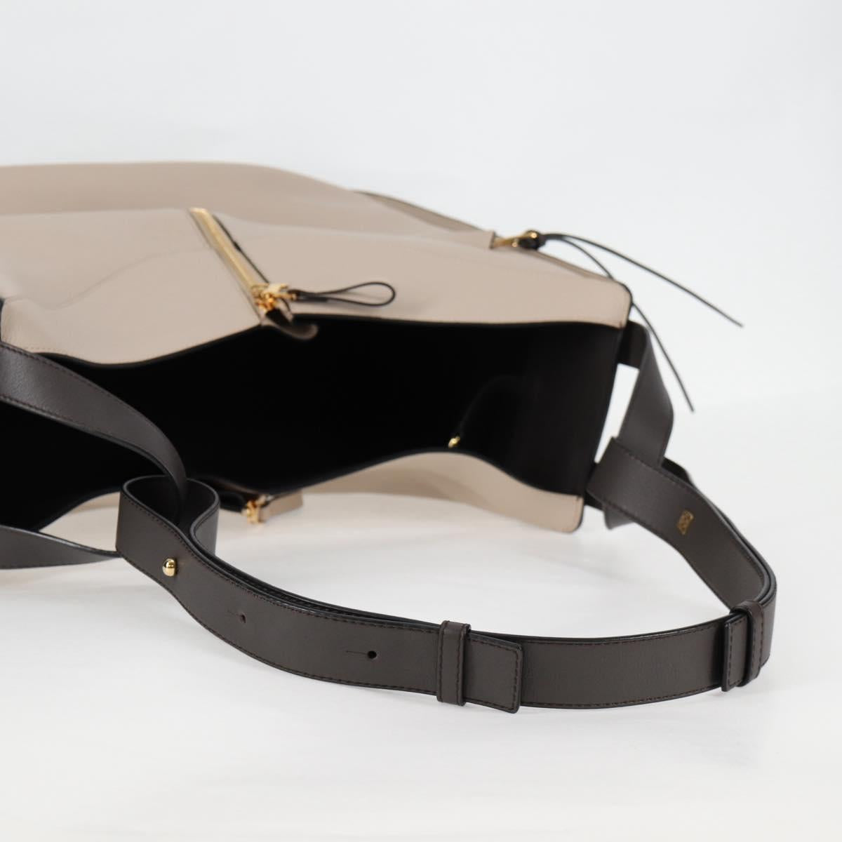 LOEWE Anagram Hammock Shoulder Bag Leather Beige Gold Auth nb477M