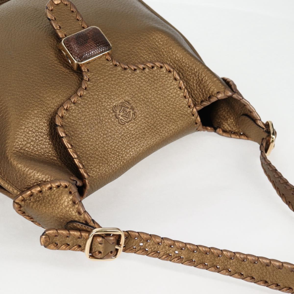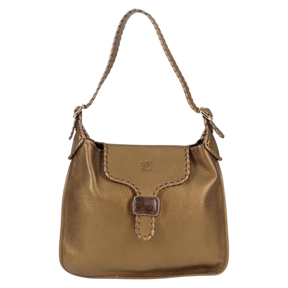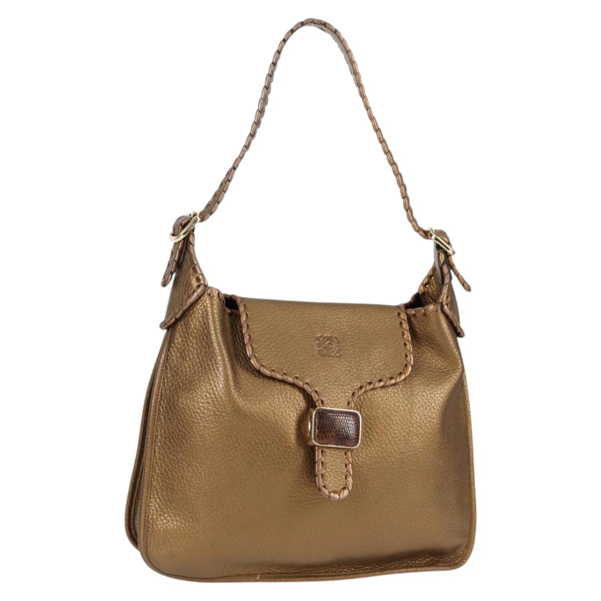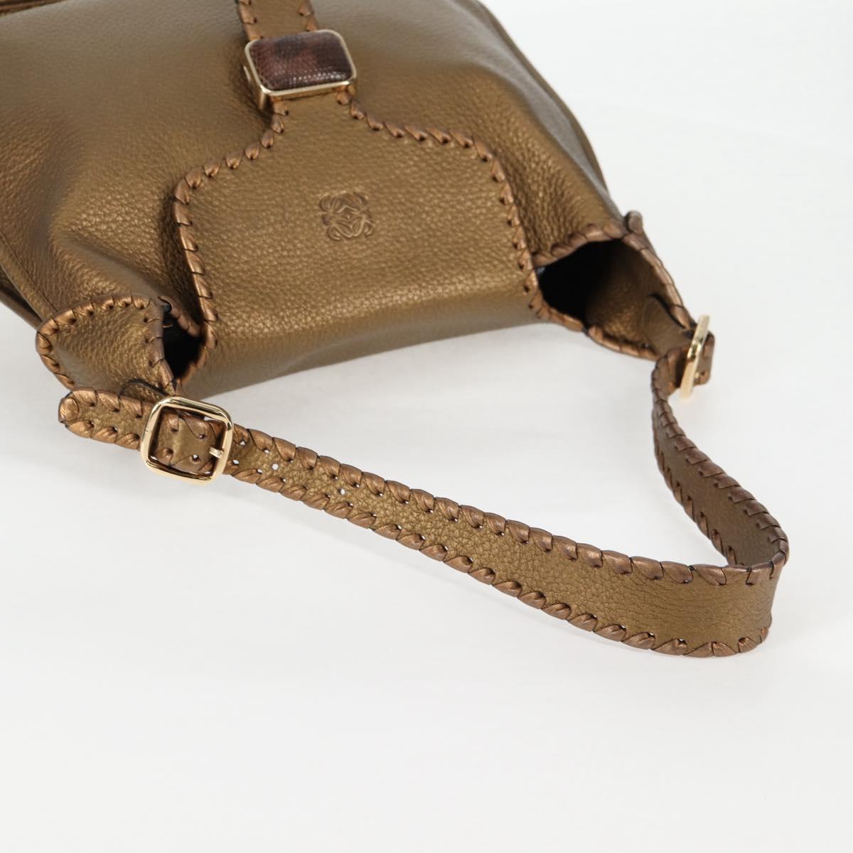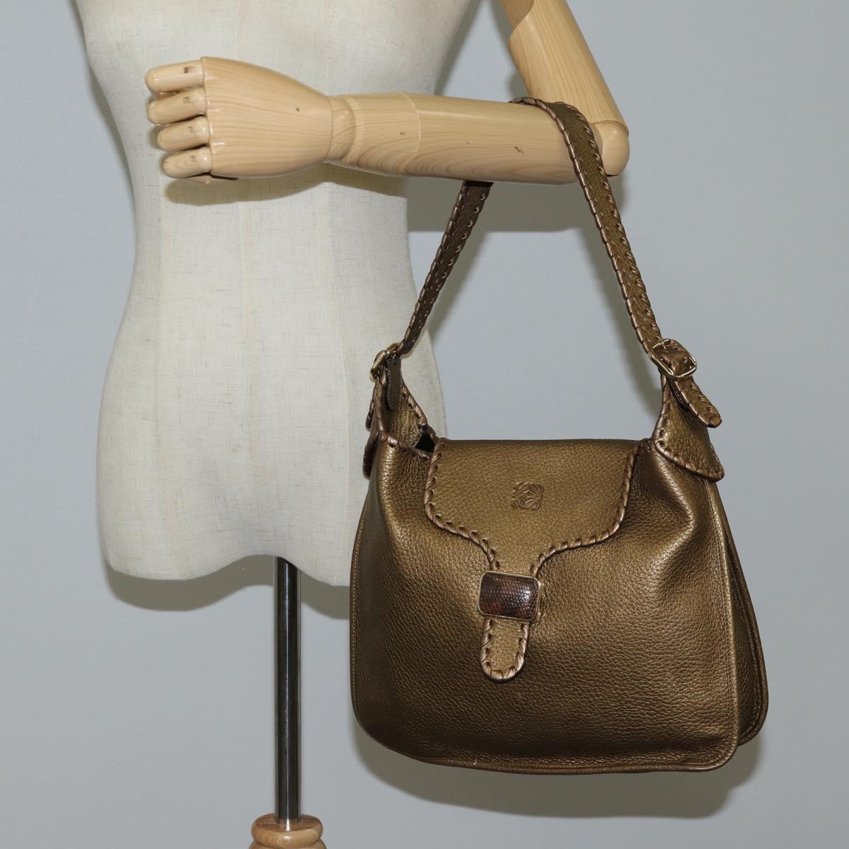 LOEWE Anagram Shoulder Bag Leather Gold Auth am8134M