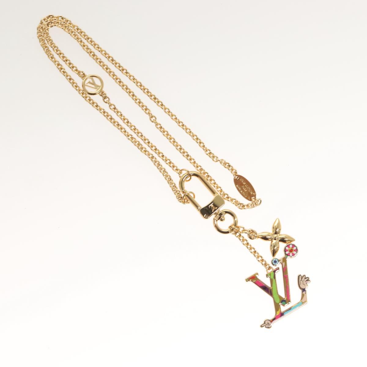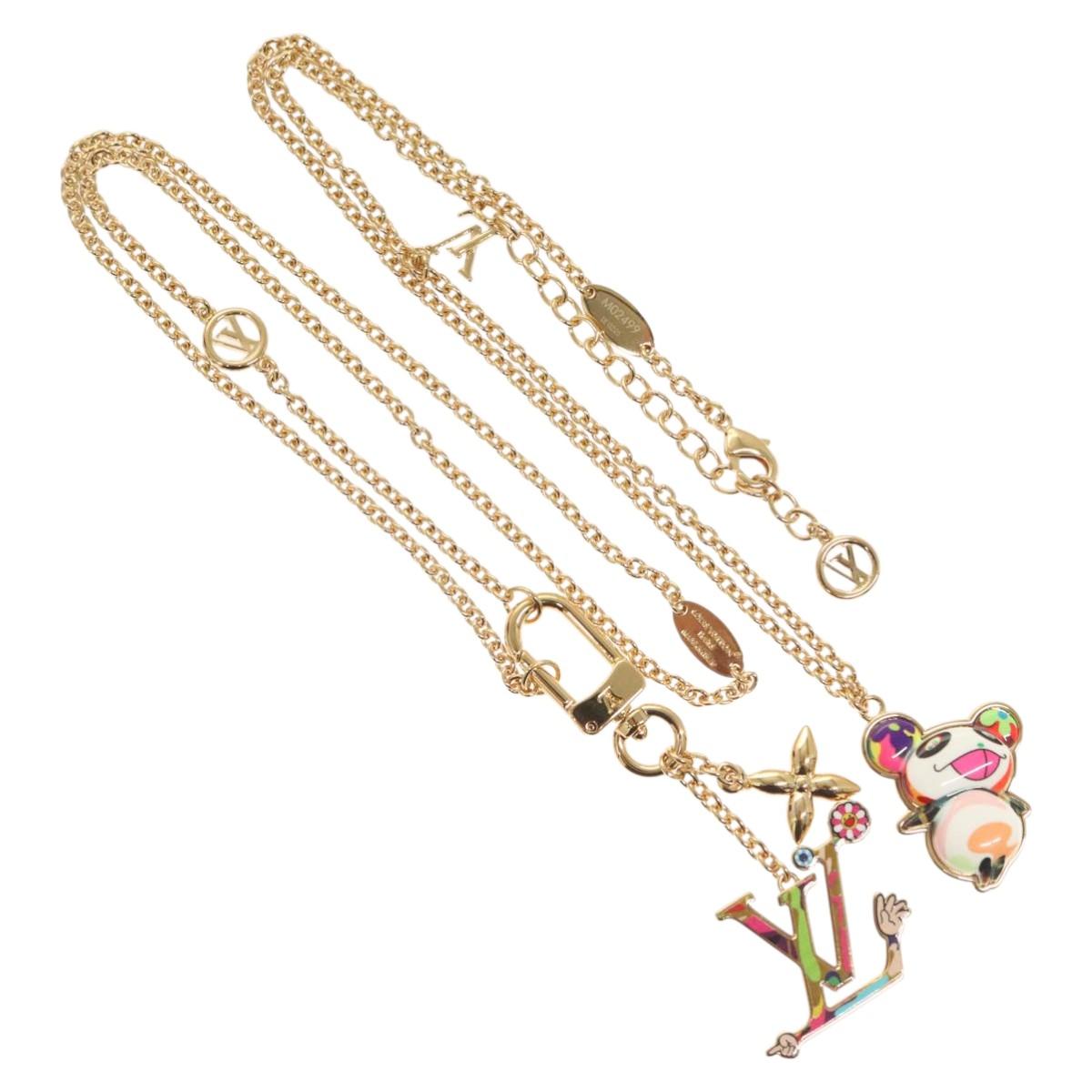 LOUIS VUITTON LVxTM 2 Necklace Super Flat metal Gold Tone M02499 LV Auth 127724M