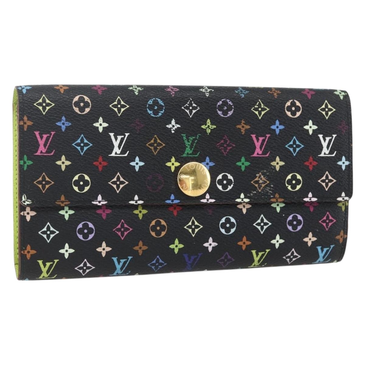 LOUIS VUITTON Multicolor Portefeuille Sarah Wallet Black M93748 LV Auth 163111