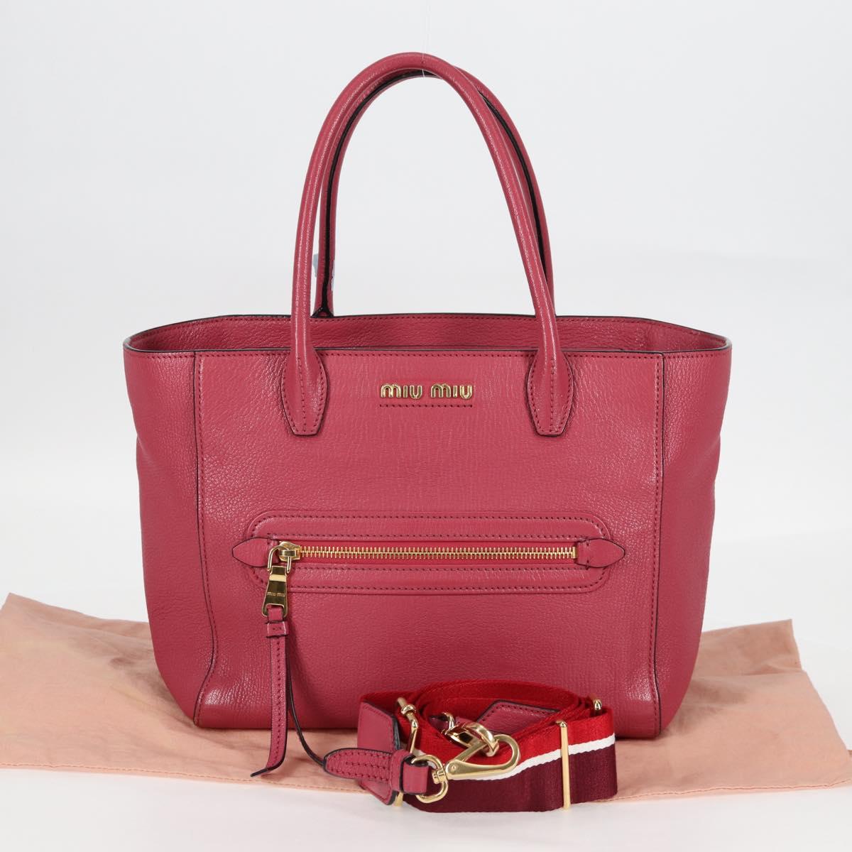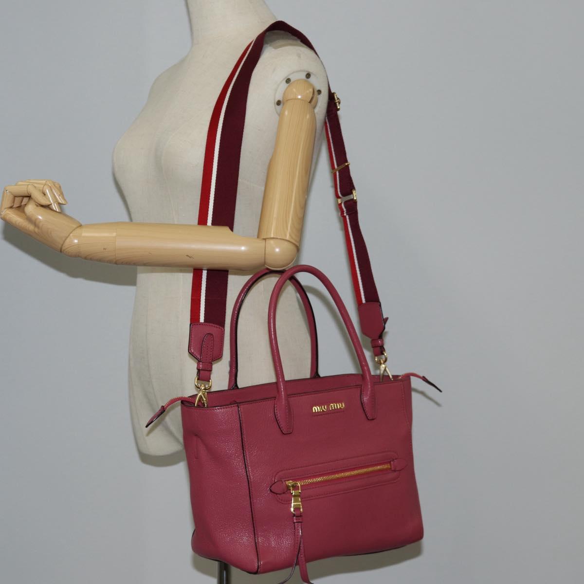 Miu Miu Hand Bag Leather 2way Pink Gold Auth yk18110M