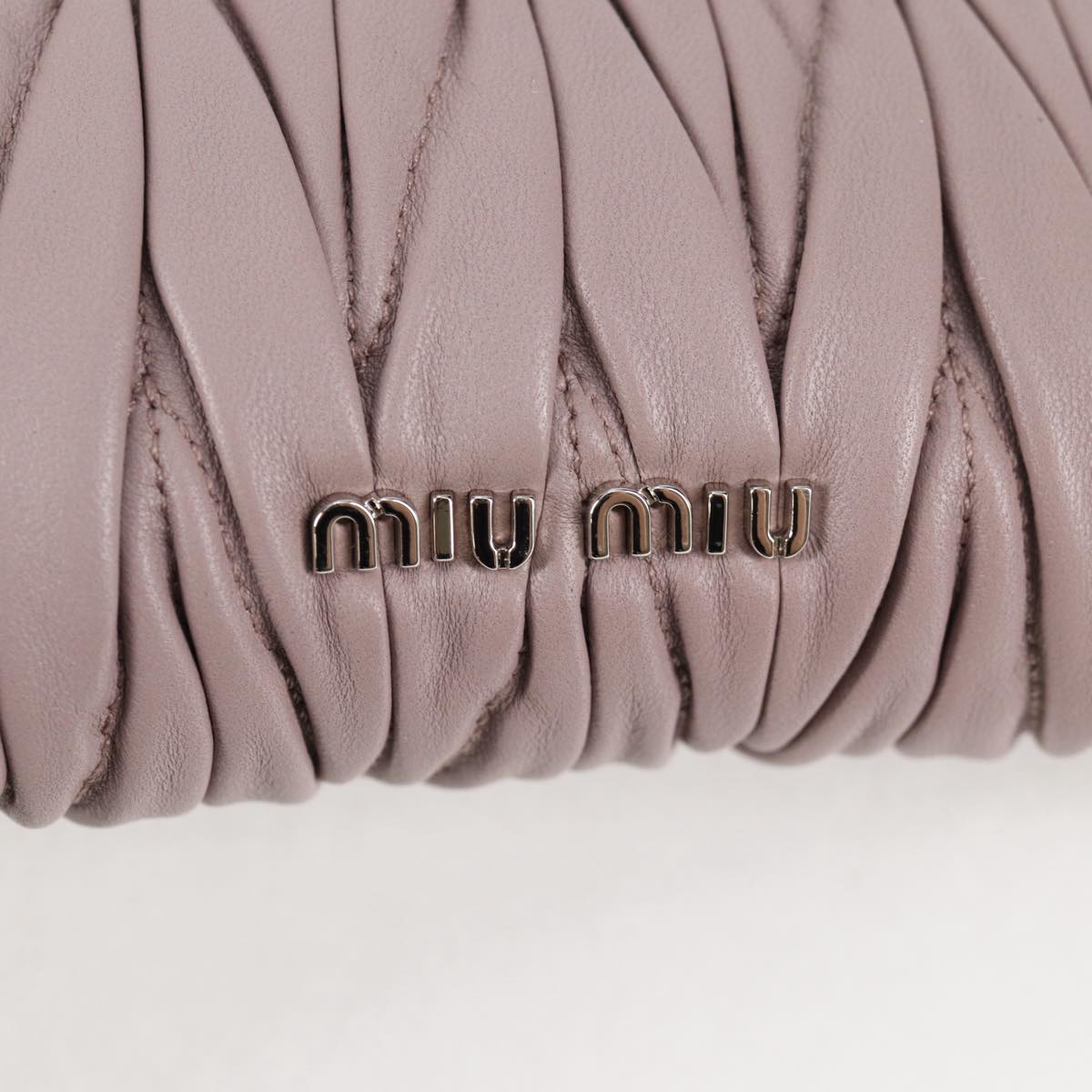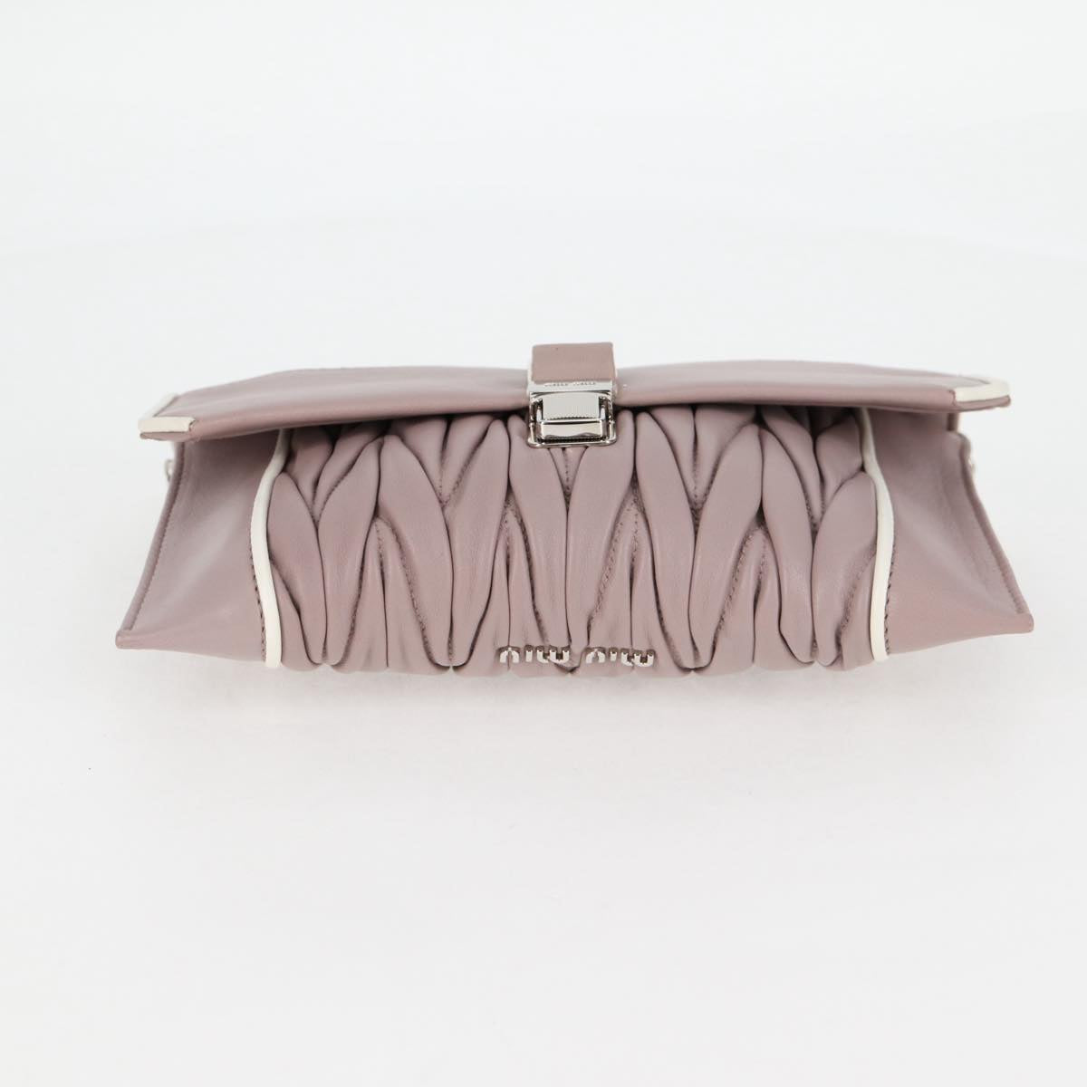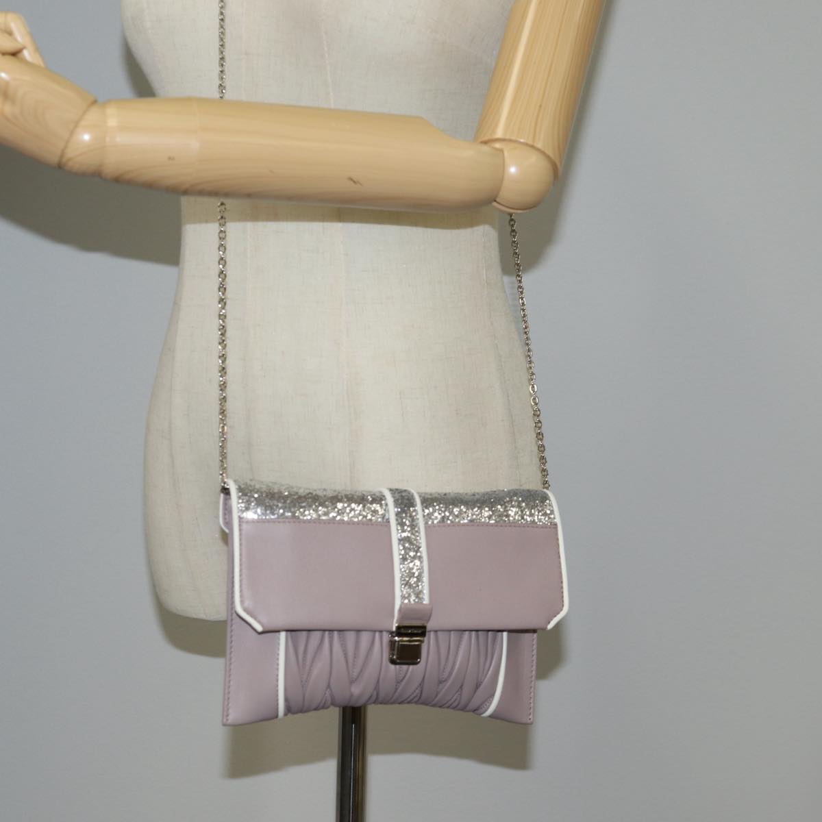Miu Miu Matelasse Chain Shoulder Bag Leather Beige Silver Auth 118553M