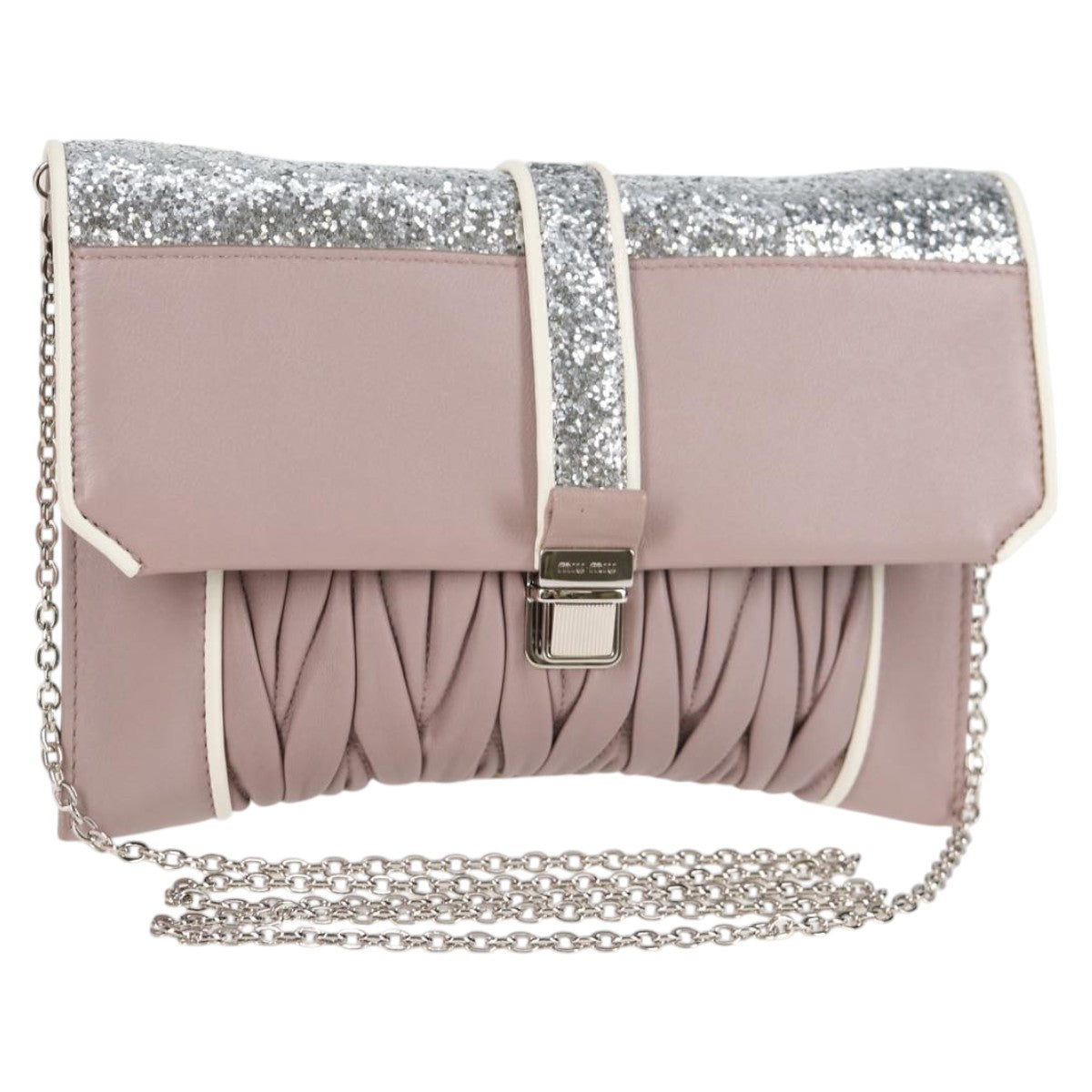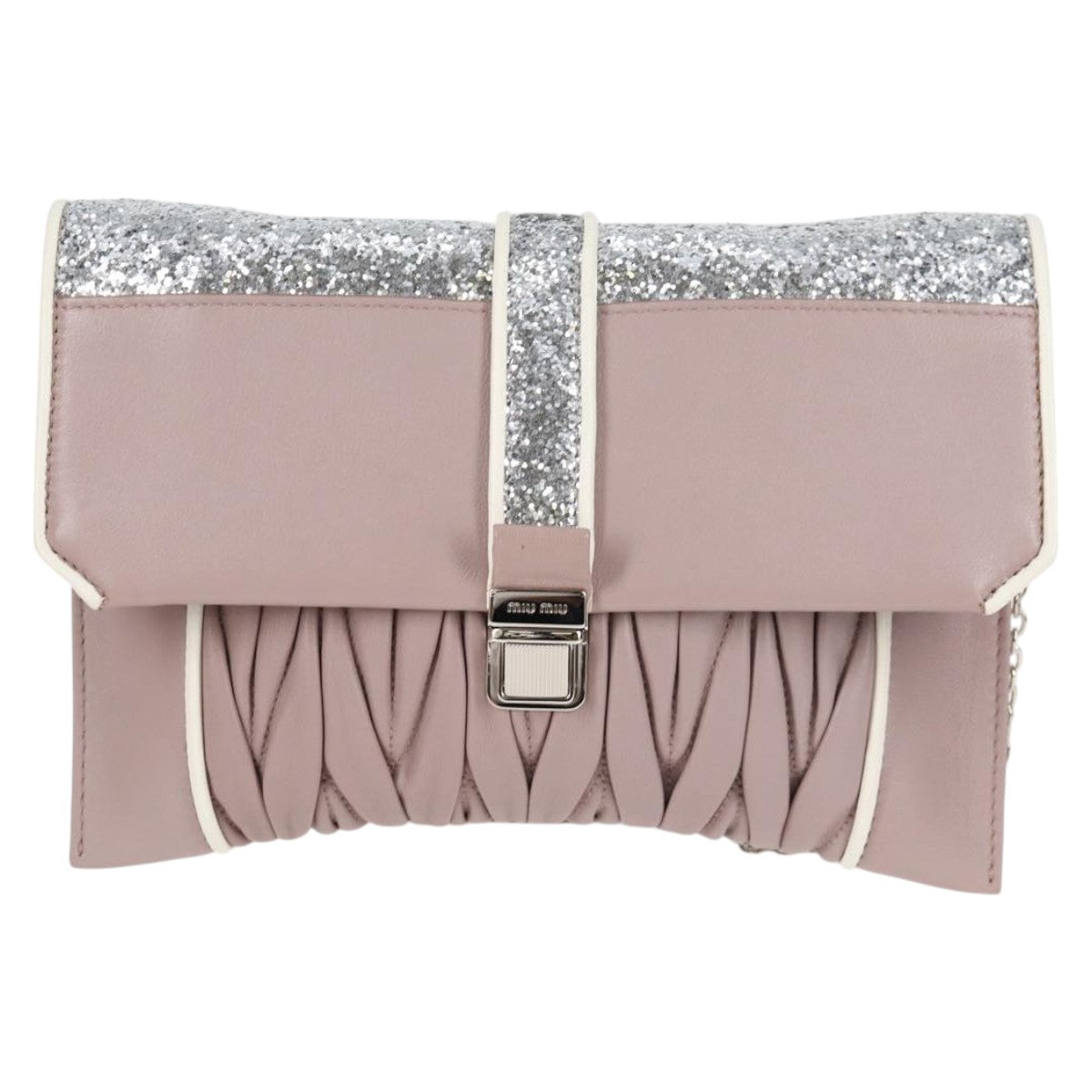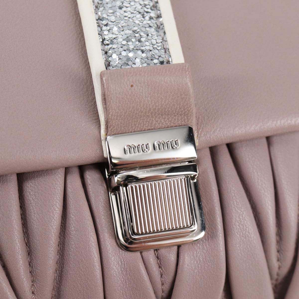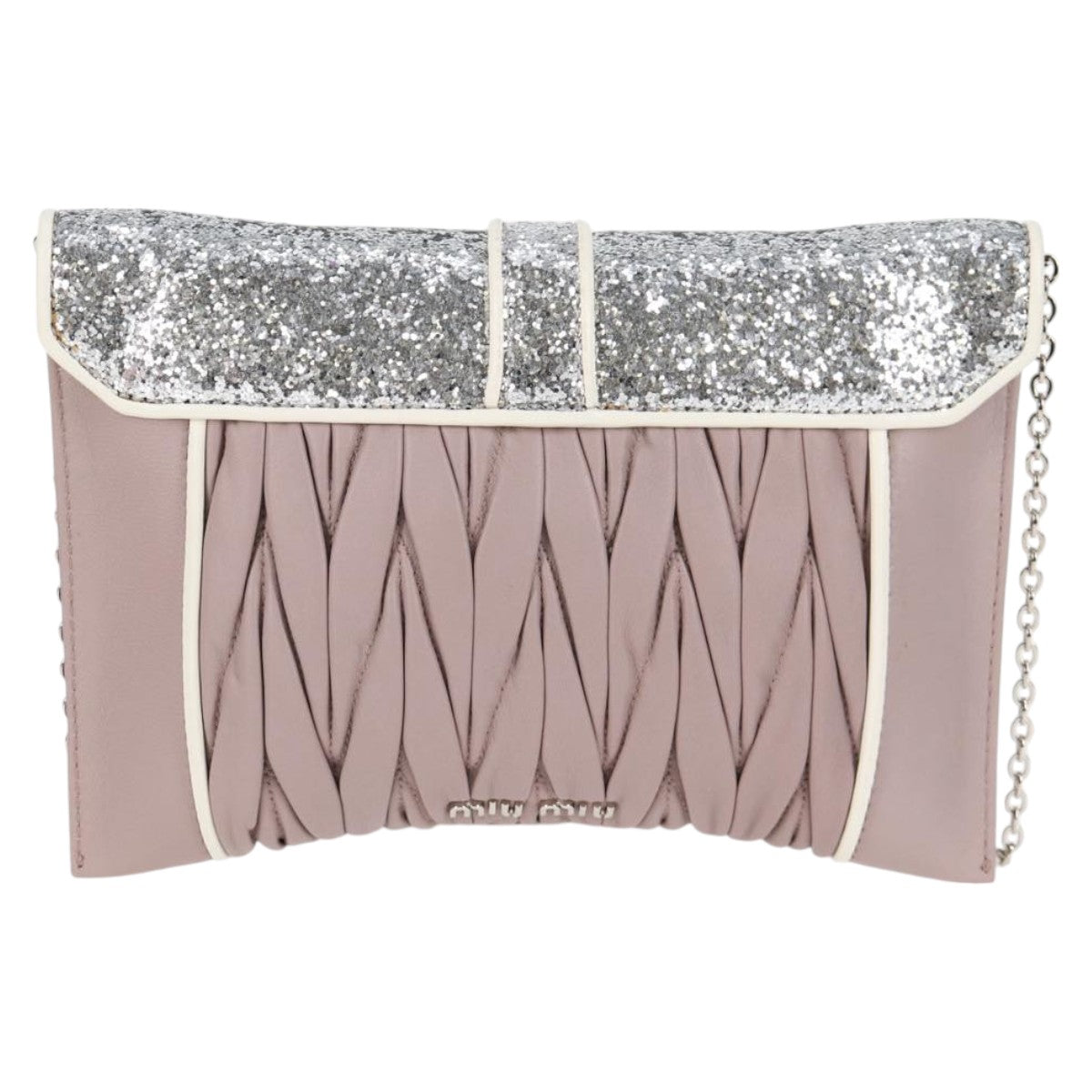 Miu Miu Matelasse Chain Shoulder Bag Leather Beige Silver Auth 118553M