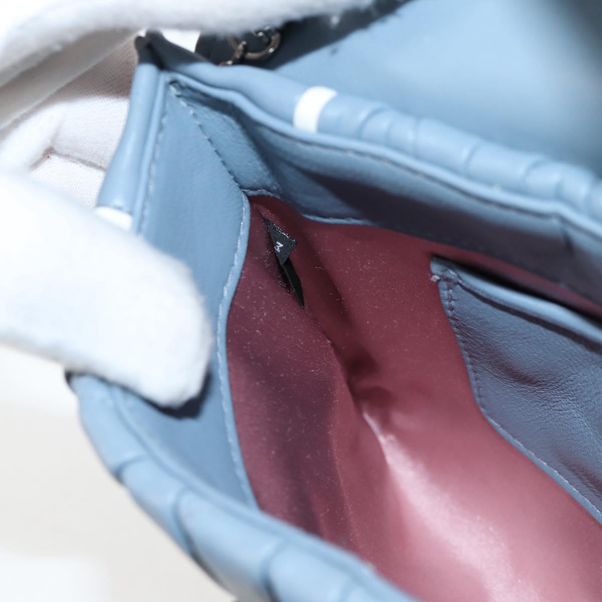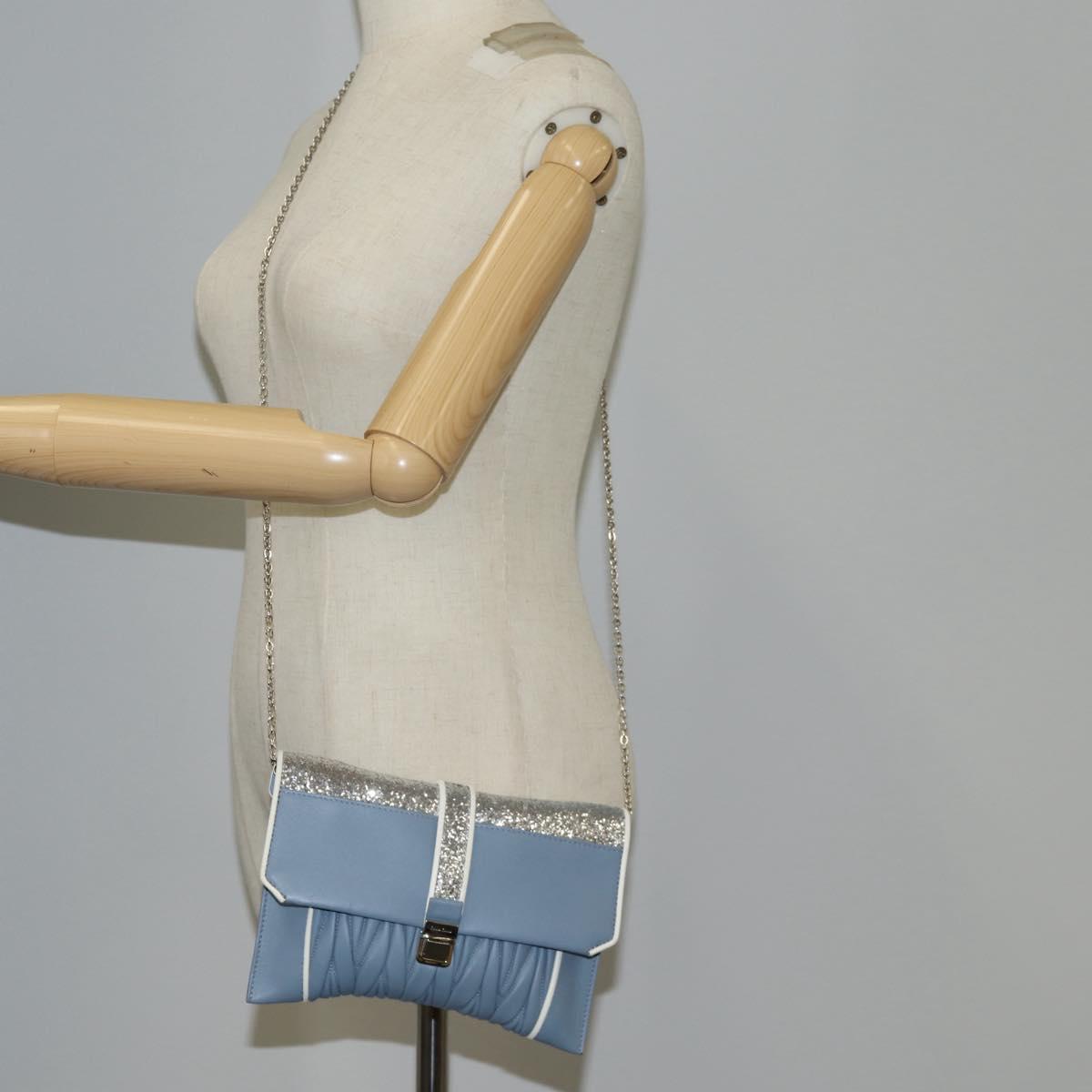 Miu Miu Matelasse Chain Shoulder Bag Leather Light Blue Silver Auth 118556M