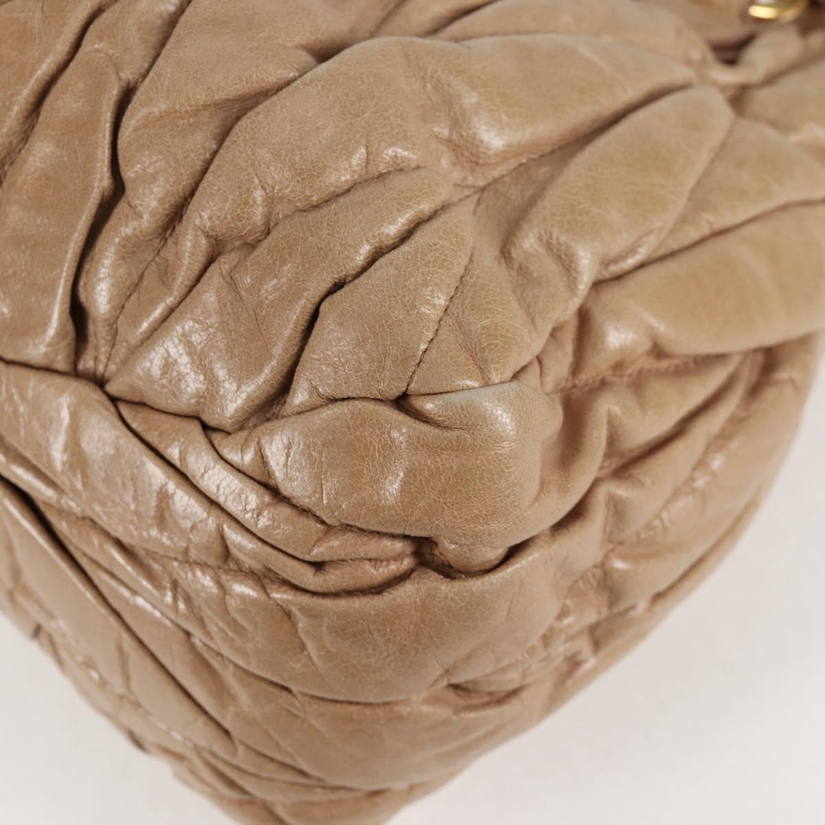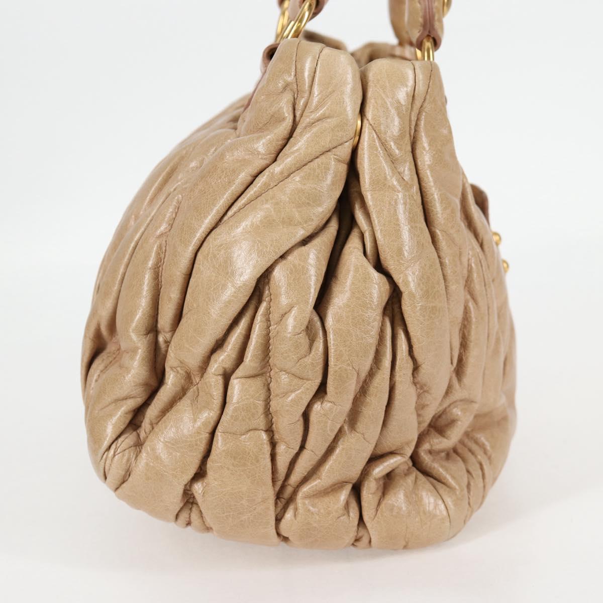 Miu Miu Matelasse Hand Bag Leather 2way Beige Gold Auth 125048V