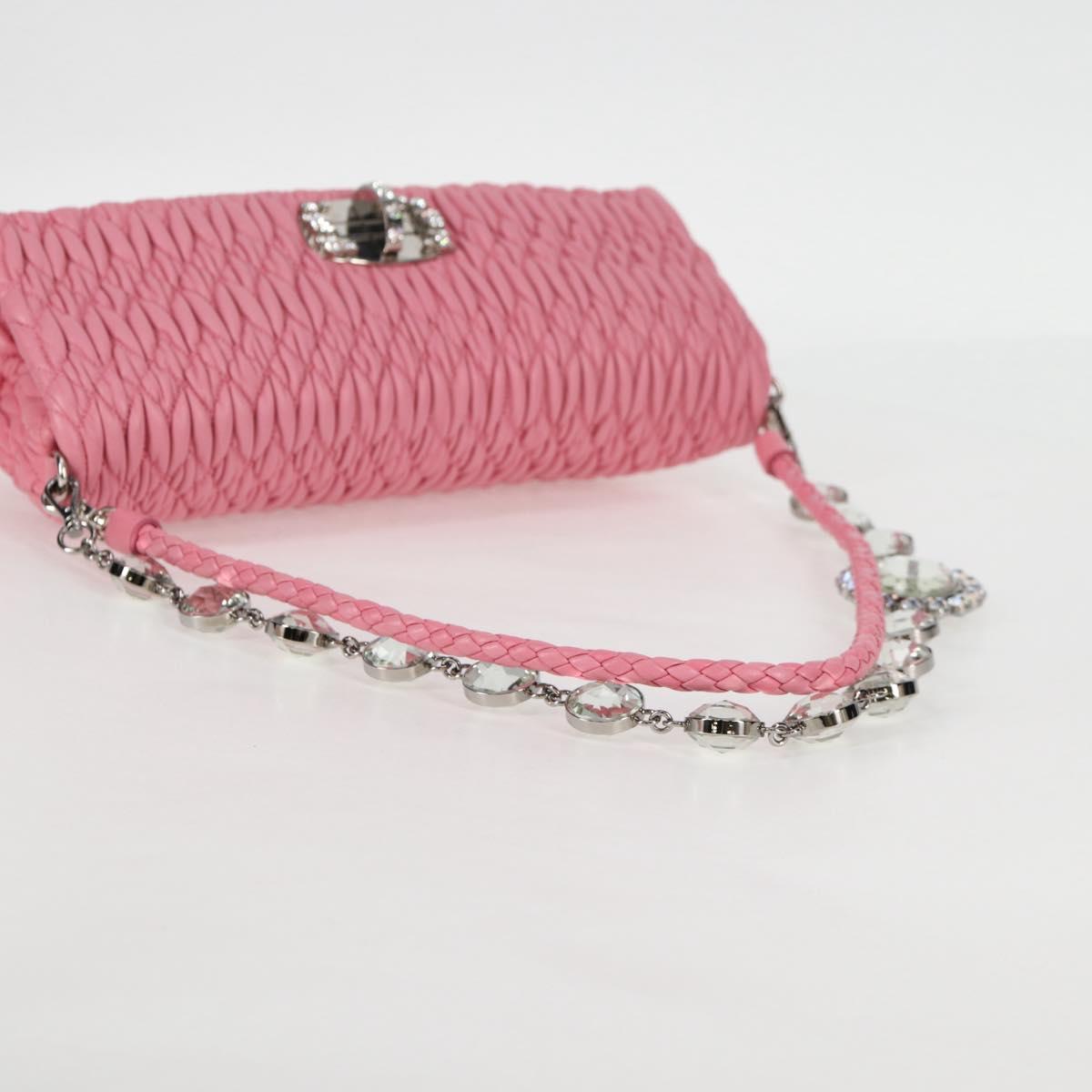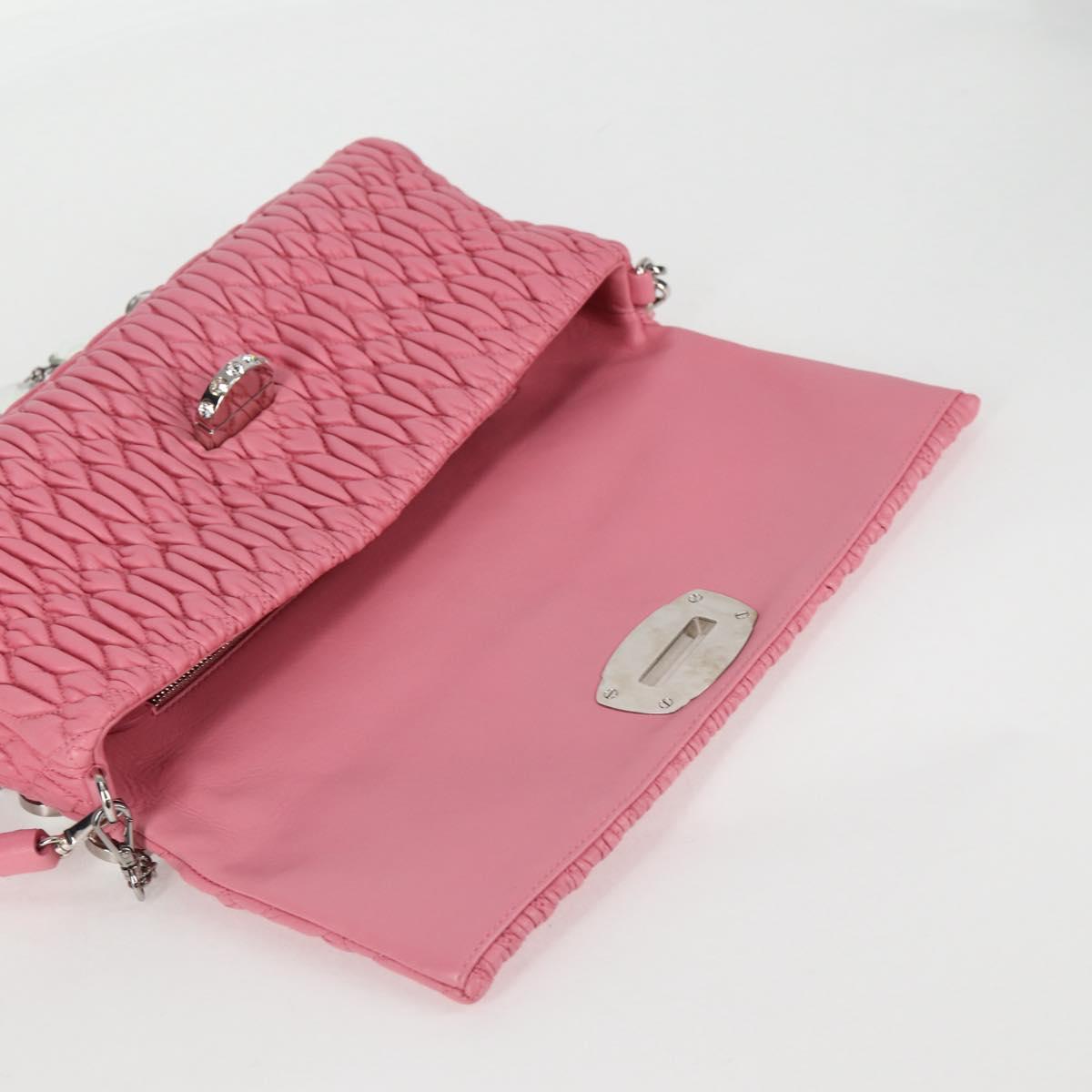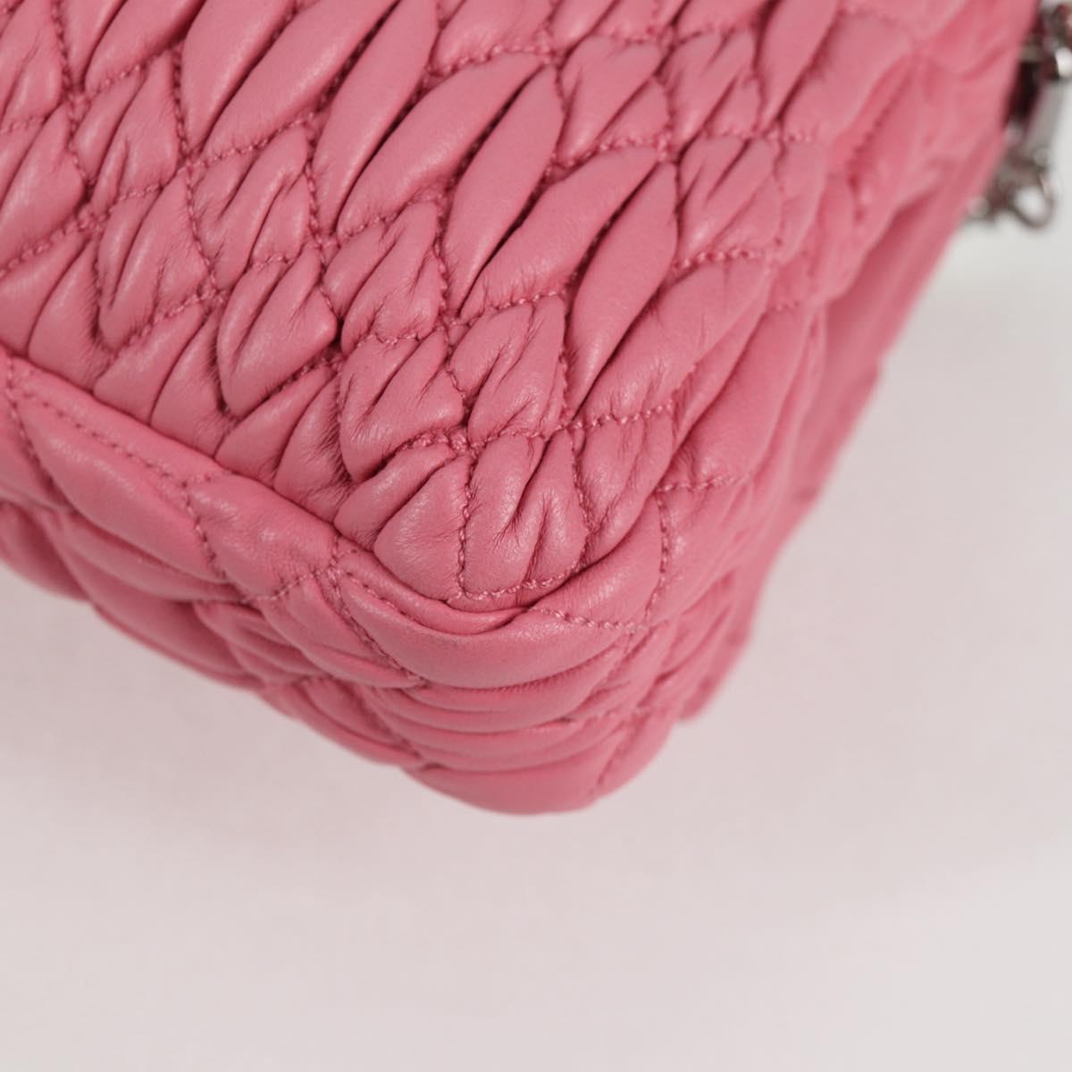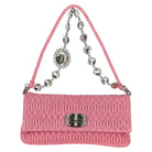 Miu Miu Matelasse Hand Bag Leather Pink Silver Auth PP611V